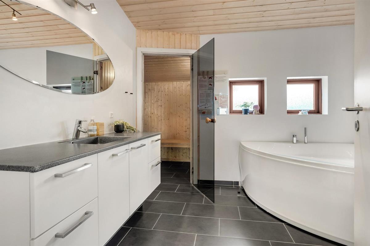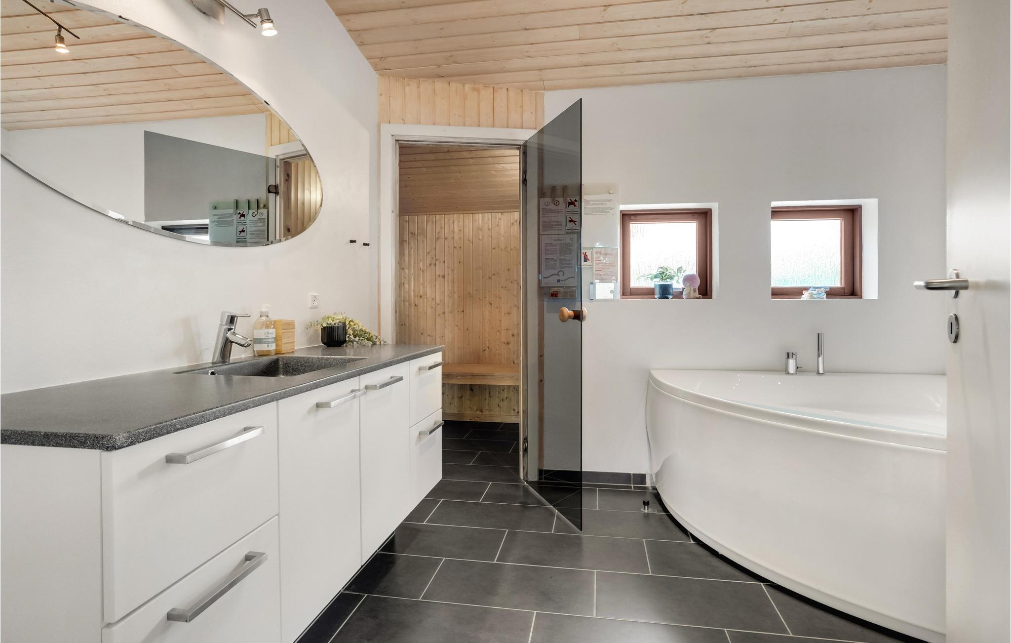 Ruim en energiezuinig vakantiehuis in Nr. Lyngby nabij strand en natuur met sauna, bubbelbad en moderne voorzieningen.