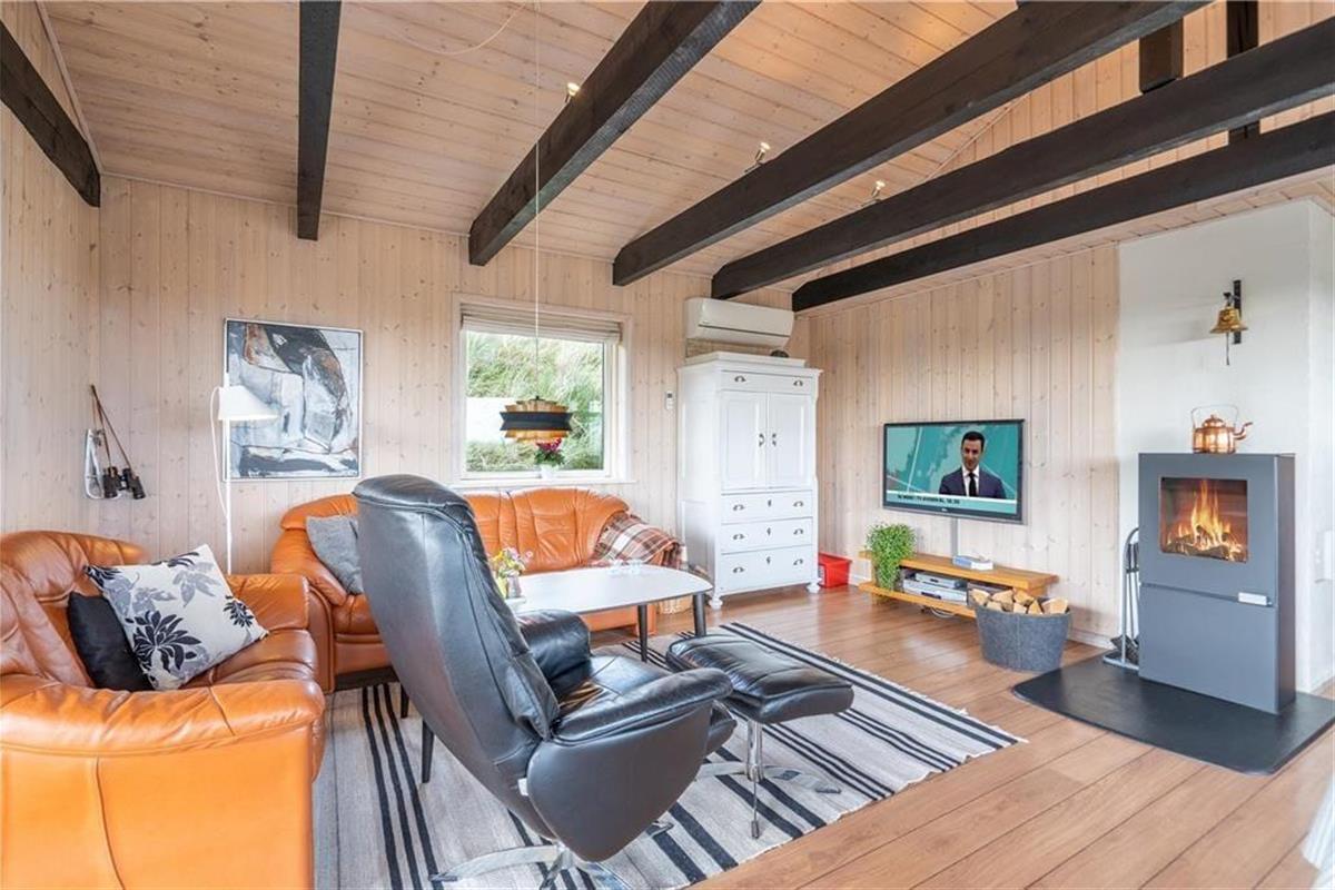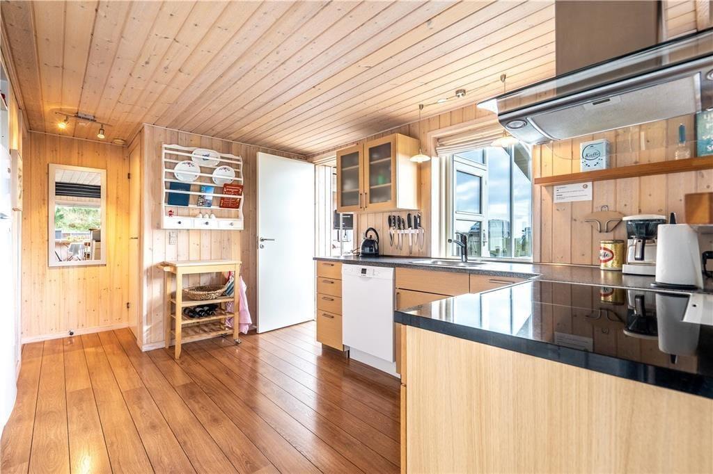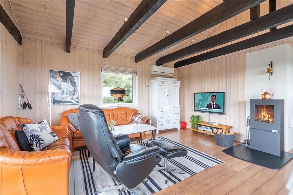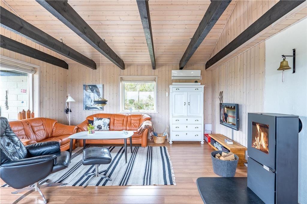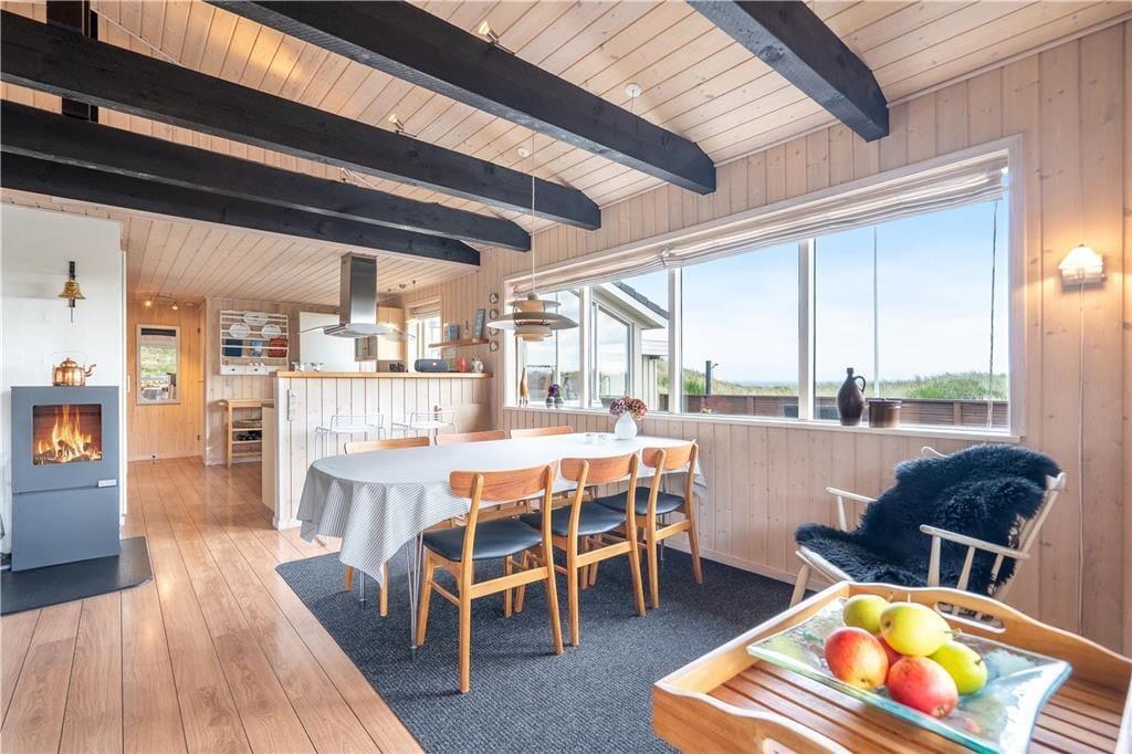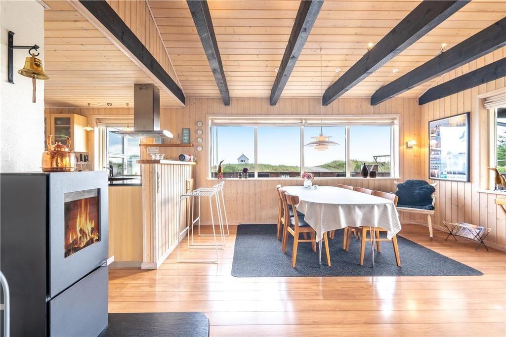 Die Räumlichkeiten bestechen mit klassischem Charme. Sie dürfen sich auf ein Urlaubsdomizil freuen, in dem große Fensterpartien einen natürlichen Tageslichteinfall und einen Ausblick auf attraktive Natur gewähren. Am schönsten geht es im Aufenthaltsbereich zu, der die Küche und den Wohnraum offen in sich vereint. In der geräumigen Küche können Sie zusammen die Mahlzeiten zubereiten. Den Abwasch übernimmt anschließend der Geschirrspüler. Das fertige Essen servieren Sie im Essbereich, in dem der Kaminofen und die freiliegenden Deckenbalken eine gemütliche Atmosphäre zaubern. Der Wohnraum umfasst eine gemütliche Polstersitzgruppe und verwöhnt mit einem Ausblick auf den Kirchturm der Kirche von Lyngvig und auf den Fjord. Während Ihres Frühstücks beobachten Sie spektakuläre Sonnenaufgänge über dem Fjord. Auf den Sofas schauen Sie in gemütlicher Runde einen Film im Fernsehen an oder lesen spannende Bücher. Der andere Bereich des Wohnraums eignet sich hervorragend für Brettspiele und andere Urlaubsaktivitäten. Die sechs vorhanden Schlafplätze verteilen sich auf drei Schlafzimmer. Beide Badezimmer sind neu aus dem Jahr 2023 und sind mit WC, Duschkabine und Waschbecken ausgestattet, das andere hat eine Dusche und ein WC.