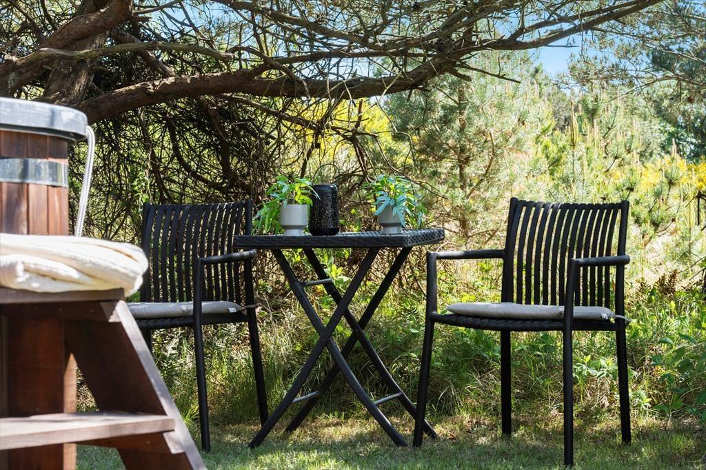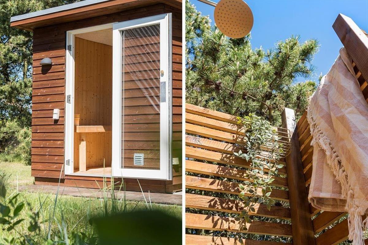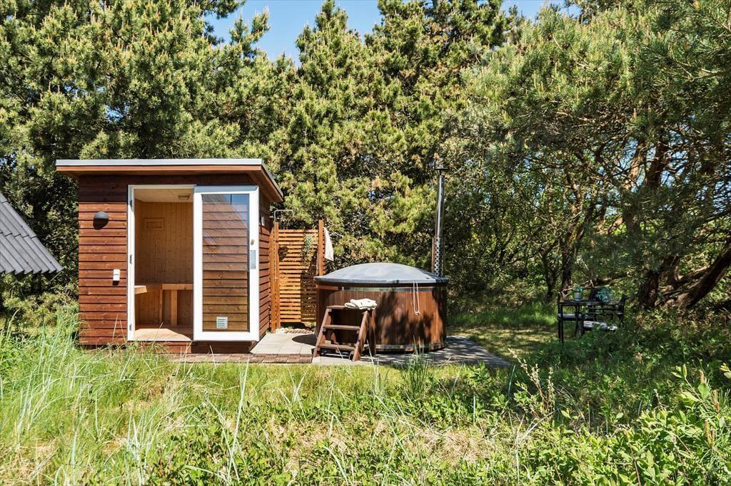 Die südliche Terrasse, ist der Ort, an dem Sie Ihre Mahlzeiten unter freiem Himmel an sonnigem Tagen genießen können. Hinter dem Haus befindet sich ebenfalls eine Terrasse mit guten Möglichkeiten morgens und abends die ersten und letzten Sonnenstrahlen abzubekommen. Darüber hinaus befindet sich hier der Außenspabereich - dort steht Ihnen eine Sauna und ein Fass-Whirlpool zur Verfügung - welcher sich für entspannte Momente unter dem Sternenhimmel anbietet. Auf dem 1200 qm großen Grundstück ist im übrigen genügend Platz für Spiel und Spaß.