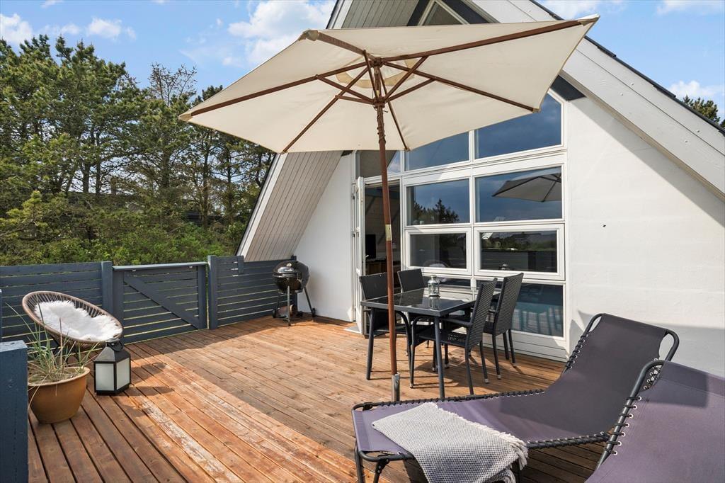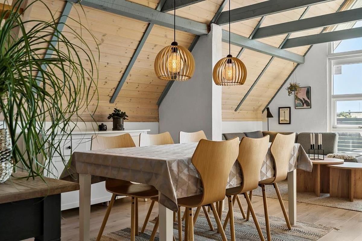 Das Ferienhaus liegt in einem friedlichen Ferienhausgebiet in Nr. Lyngvig zwischen dem Ringkøbing Fjord und der Nordsee. Hier können Sie ihre Urlaubstage mit langen Spaziergängen inmitten der Dünenlandschaft verbringen und sollten Sie Fahrräder dabei haben, bieten sich genügend Fahrradwege für Ausflüge an. Lyngvig Havn ist mit seiner einladenden, maritimen Atmosphäre jederzeit einen Besuch wert, und ca. 1300 Meter von Ihrer Adresse entfernt, wartet der Strand der Nordsee und Lyngvig Fyr auf Sie. In Søndervig befindet sich ein tropisches Badeland und eine Golfbahn, während Hvide Sande spannende Butiken, gute Restaurants und feine Fischhändler mit Leckereien aus dem nahegelegenen Meer bietet. Hobbyfischer können ebenfalls ihr Glück versuchen und die Rute in den umliegenden Seen oder in der Schleuse von Hvide Sande auswerfen. Die Gegend ist auch bei Wind- und Kitesurfern beliebt, und es gibt mehrere Surfspots sowohl am Fjord als auch am Meer.