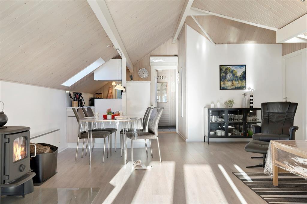 Das Ferienhaus präsentiert sich einladend mit heller Einrichtung und bequemen Möbeln, die angenehme eine Atmosphäre verbreiten. Die offene Galerie im Wohnraum gibt ein schönes Gefühl von Geräumigkeit, während der Kamin für Wärme und Gemütlichkeit an kühlen Abenden sorgen wird. Der angrenzende Wintergarten lädt zu ruhigen Momenten mit einem guten Buch oder einer Tasse Kaffee ein, von hier kannst du auch die Aussicht auf das grüne Naturgrundstück genießen. Die helle Küche ist offen mit dem Wohnraum verbunden - gemeinsames Kochen und gemütliche Mahlzeiten genießen ist leicht gemacht. Mit zwei schönen Schlafzimmern bietet das Haus Platz für Groß und Klein, also allen die Lust haben dieses authentische Ferienhausflair zu erleben.
