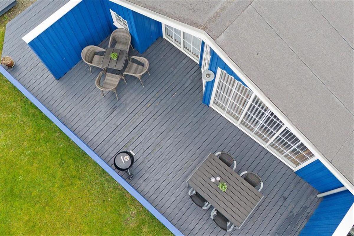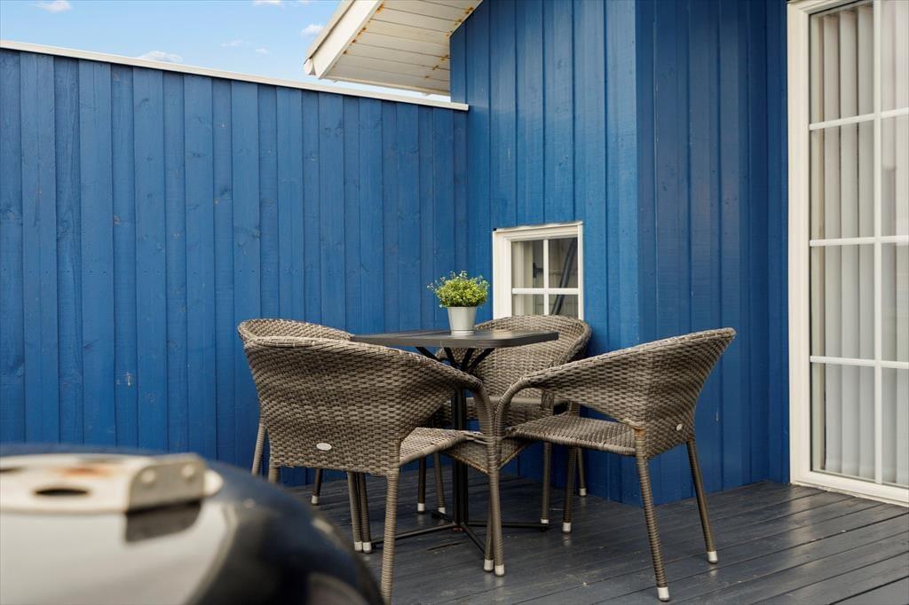 Vom Wohnzimmer haben Sie direkten Zugang zu einer großen und sonnigen Terrasse; diese ist perfekt für einen ruhigen Nachmittag und lädt am Abend zum Grillen ein. Das Ferienhaus ist Teil einer kleinen Siedlung von Doppelhaushälften, die von Rasenflächen umgeben sind. Auf der einen Seite gibt es gute Parkmöglichkeiten und auf der anderen Seite einen Gemeinschaftsbereich mit Spielgeräten, einem Boule-Platz und einem Fußballplatz, auf dem nicht nur die Kinder, sondern die ganze Familie spielen können.