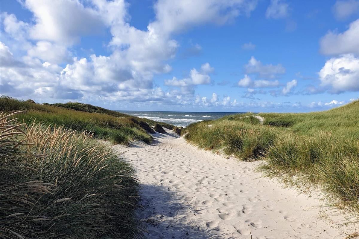 Ferienhaus im alten Fischerdorf Nr. Lyngvig, zwischen Nordsee und dem Ringkøbing Fjord, nahe des alten Leuchtturms gelegen. Das Haus ist für sechs Personen eingerichtet. Die Schlafplätze verteilen sich auf drei Schlafzimmer und einen Hems, auf dem man auch DVDs sehen kann. Das Bad verfügt über Dusche, Whirlpool und angenehme Fußbodenheizung. Der helle Wohnraum ist mit der Küche kombiniert und geschmackvoll eingerichtet. Ein Holzofen und eine klimafreundliche Wärmepumpe liefern bei Bedarf angenehme Wärme.