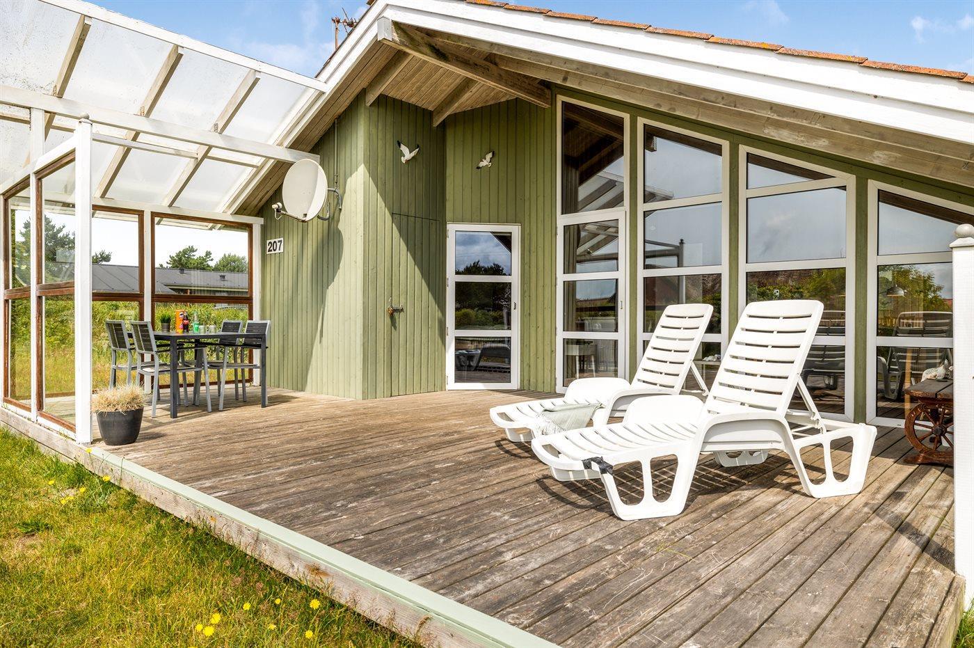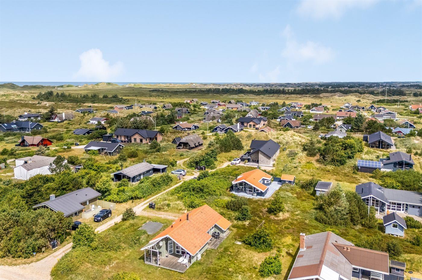De vakantiewoning is gelegen op een 1250 m² groot Duingrond. natuural grond. Afstand tot de zee 700 m. Dichtstbijzijnde winkel 3000 m. Bij de vakantiewoning hoort 30 m² terras. Daarnaast is er een 23 m² groot overdekt terras. Gereedschapsruimte. Schommel. Zandbak. Parkeerplaats bij het huis.