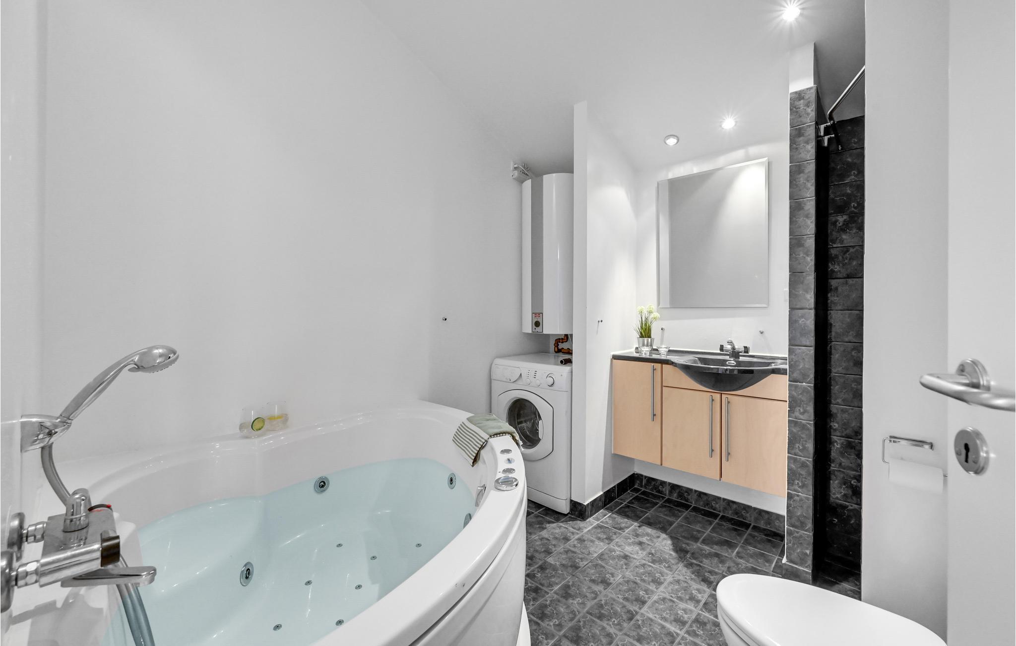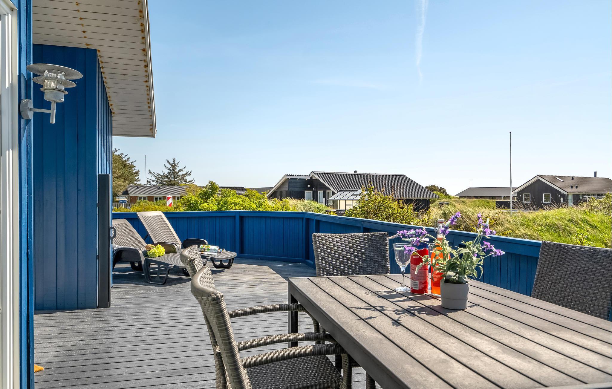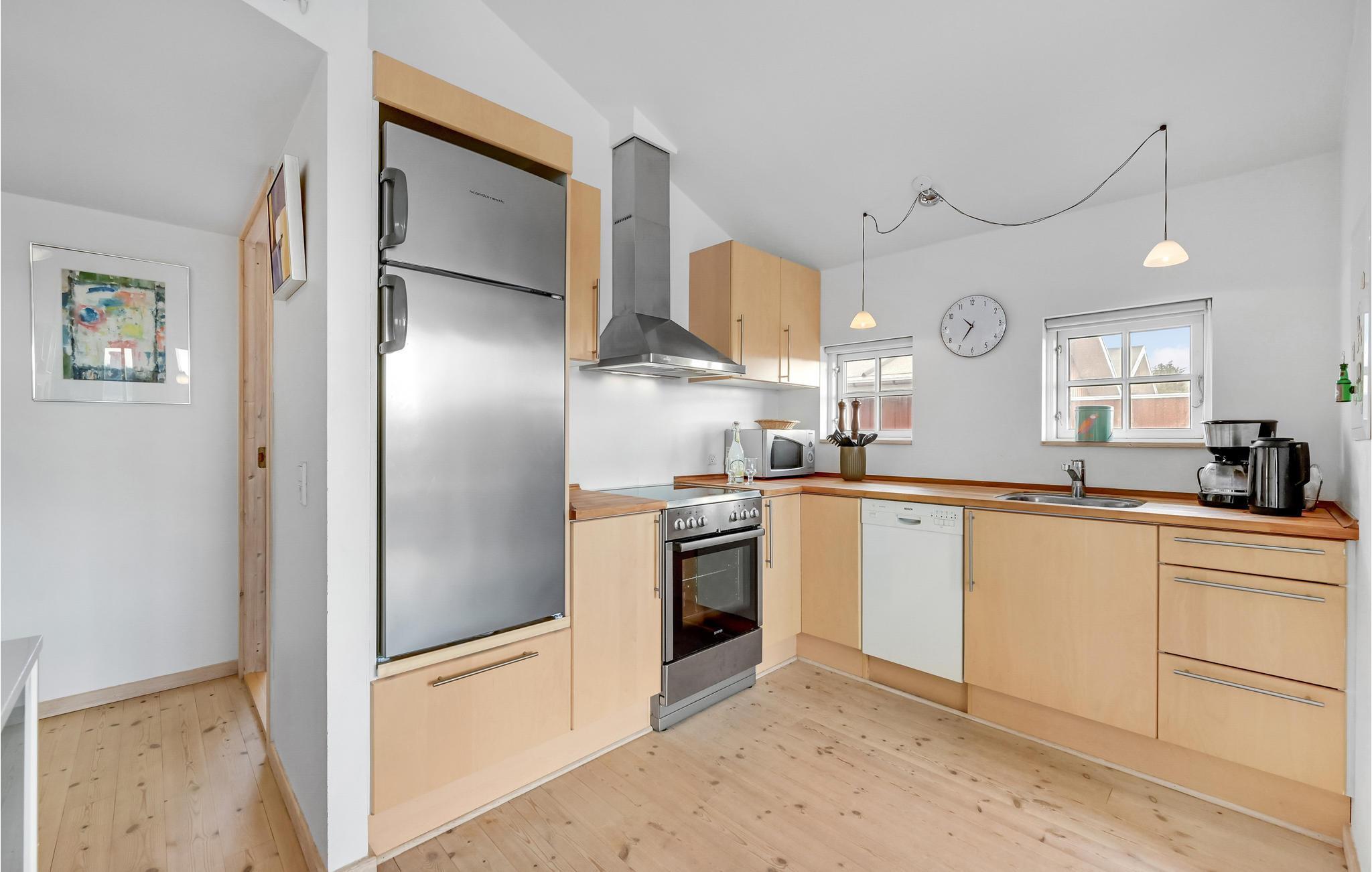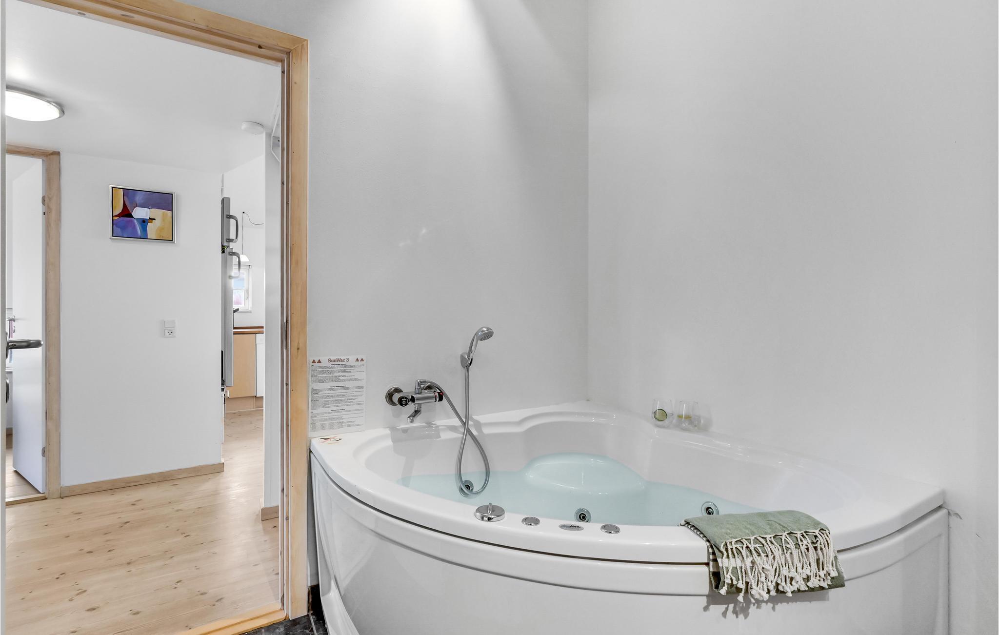 De glazen puien overspoelen de kamer met licht, wat de natuurlijke sfeer van het hele huis versterkt. Bovendien nodigt deze decoratieve inrichting u uit om u helemaal thuis te voelen in dit vakantiehuis bij Ringkøbing Fjord. Het hele woongedeelte is met elkaar verbonden, wat het voor u heel gemakkelijk maakt om u vrij te bewegen en te ontvouwen. Stelt u zich voor dat u een heerlijk ontbijt met verse koffie in deze gezellige keuken bereidt en vervolgens binnen of buiten op uw veranda aan tafel afspreekt om samen de dag aan te pakken. Verder is er ook een bubbelbad waar u volledig kunt ontspannen.