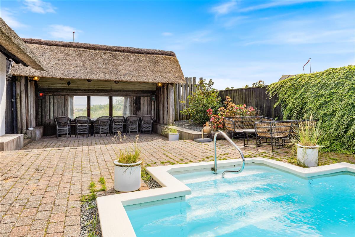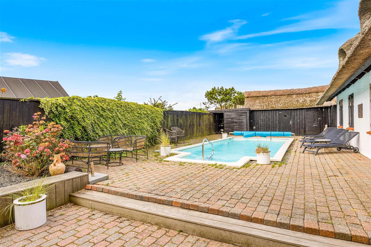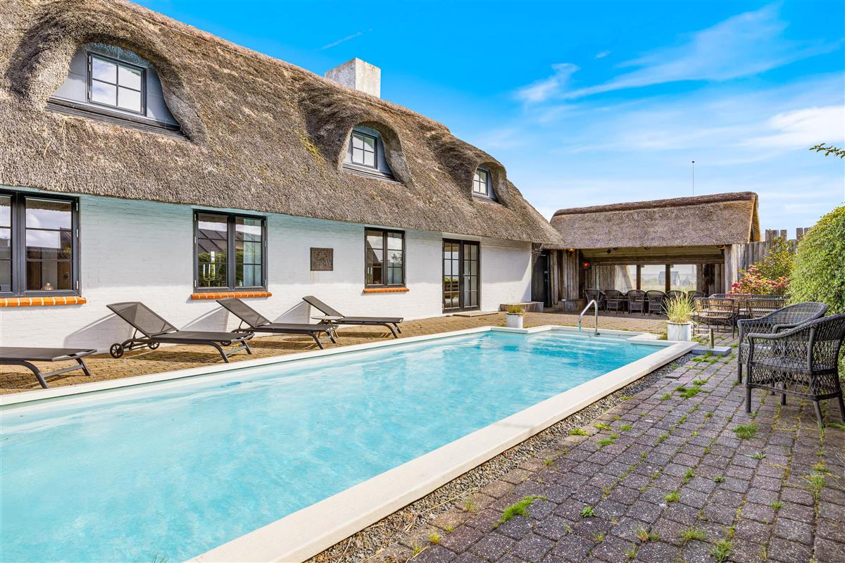 Just a stone's throw from the picturesque Lyngvig harbour, with views over Ringkøbing Fjord, sits this thatched holiday home accommodating up to 16 people, complete with outdoor pool. Fully renovated in 2019, the holiday home combines modern interiors with classic farmhouse style, creating a wonderful atmosphere that makes for a truly special holiday experience.