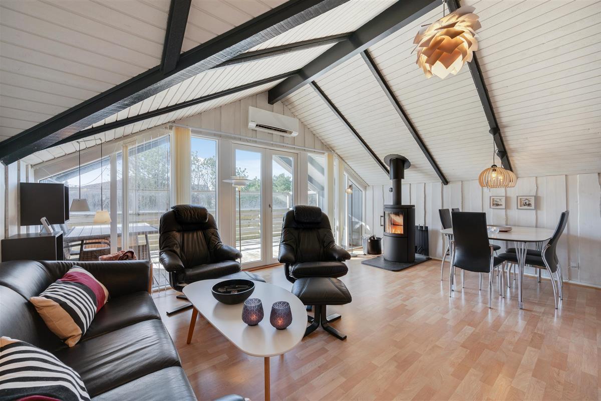 This cosy wooden holiday home is located at Fyrmarken 76, Nr. Lyngvig - perfect for a small family and two dogs. The wood-burning stove, various terraces and natural surroundings provide a beautiful setting for relaxing holiday days with your family. The Nr. Lyngvig Fyr lighthouse is also nearby, offering a lovely combined walk to the beach.