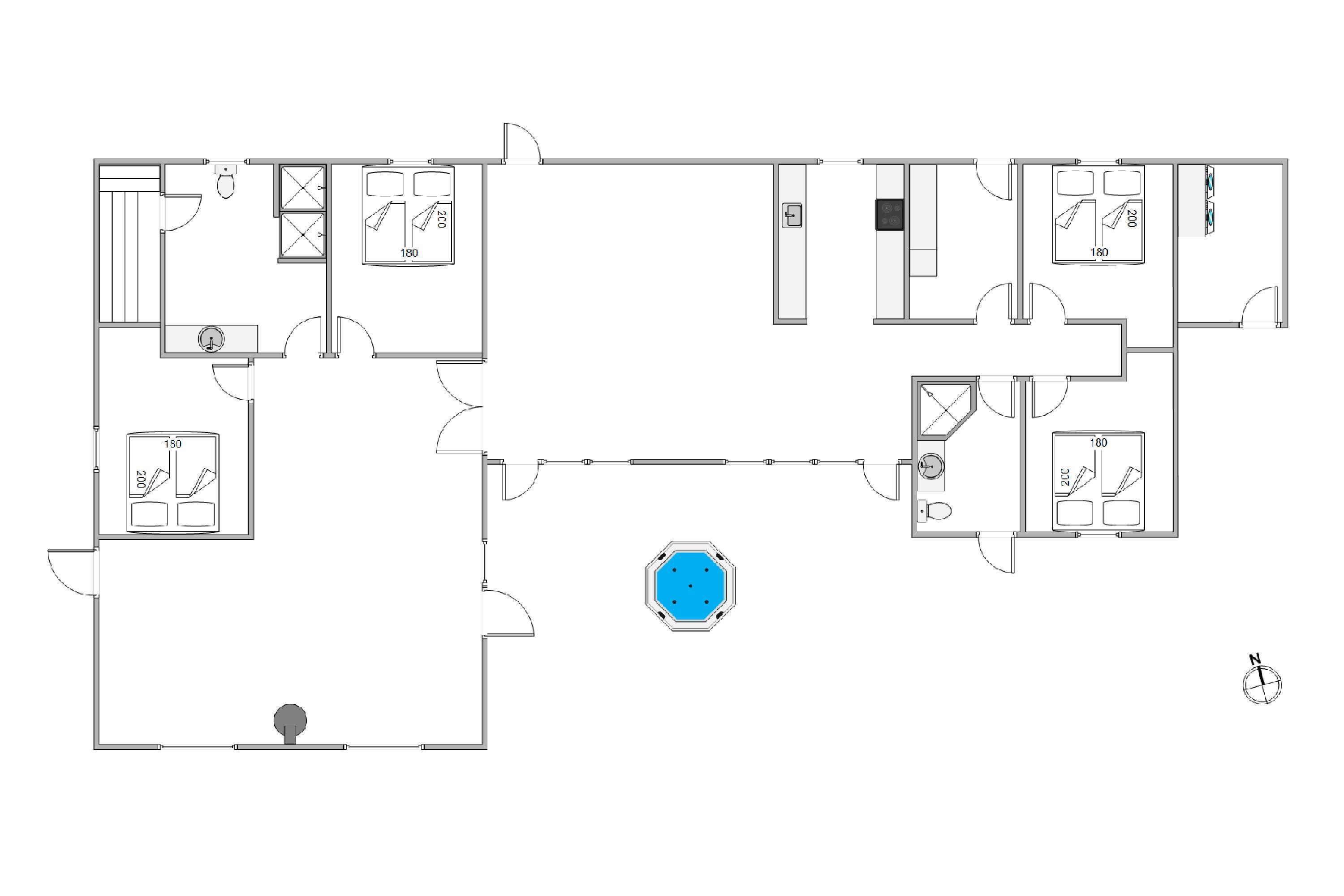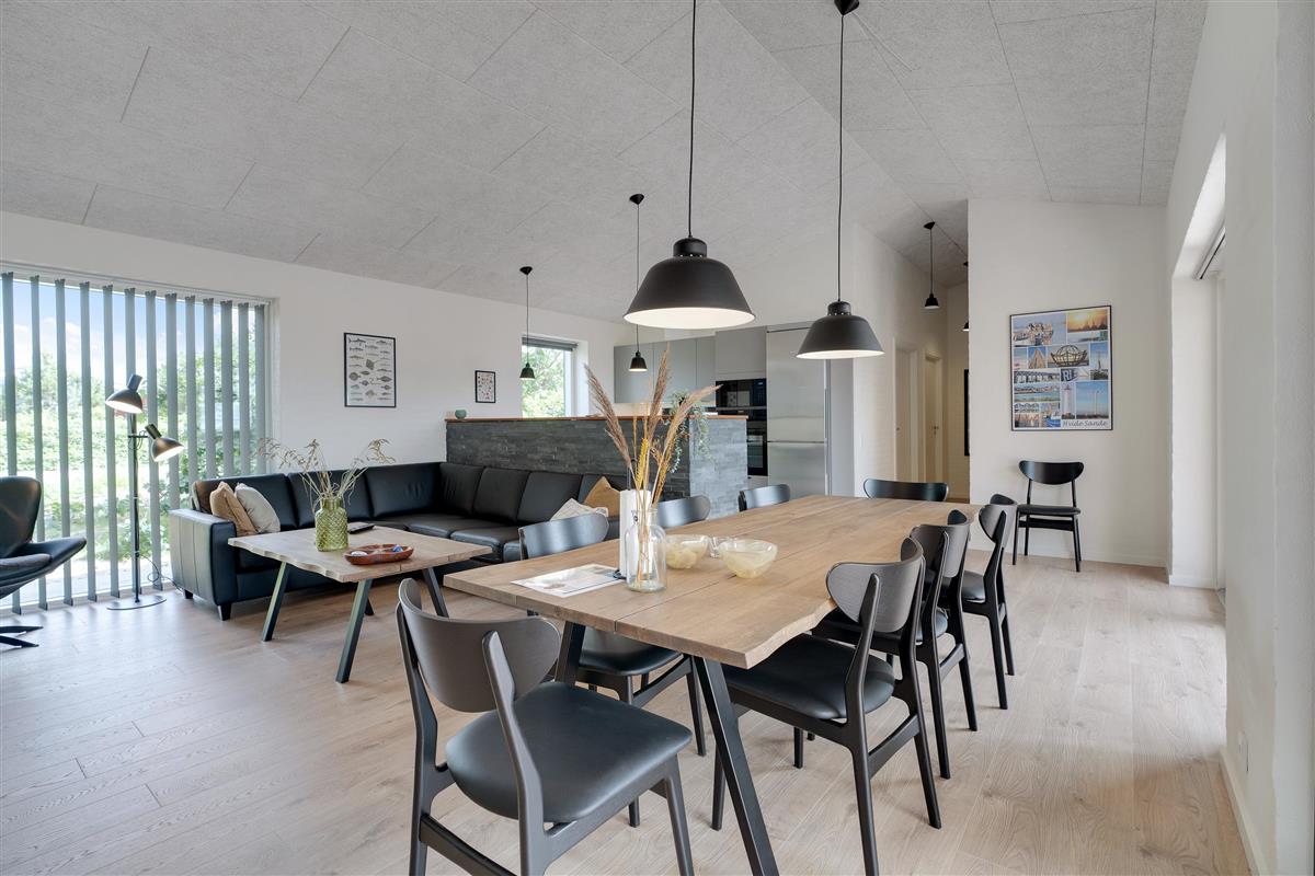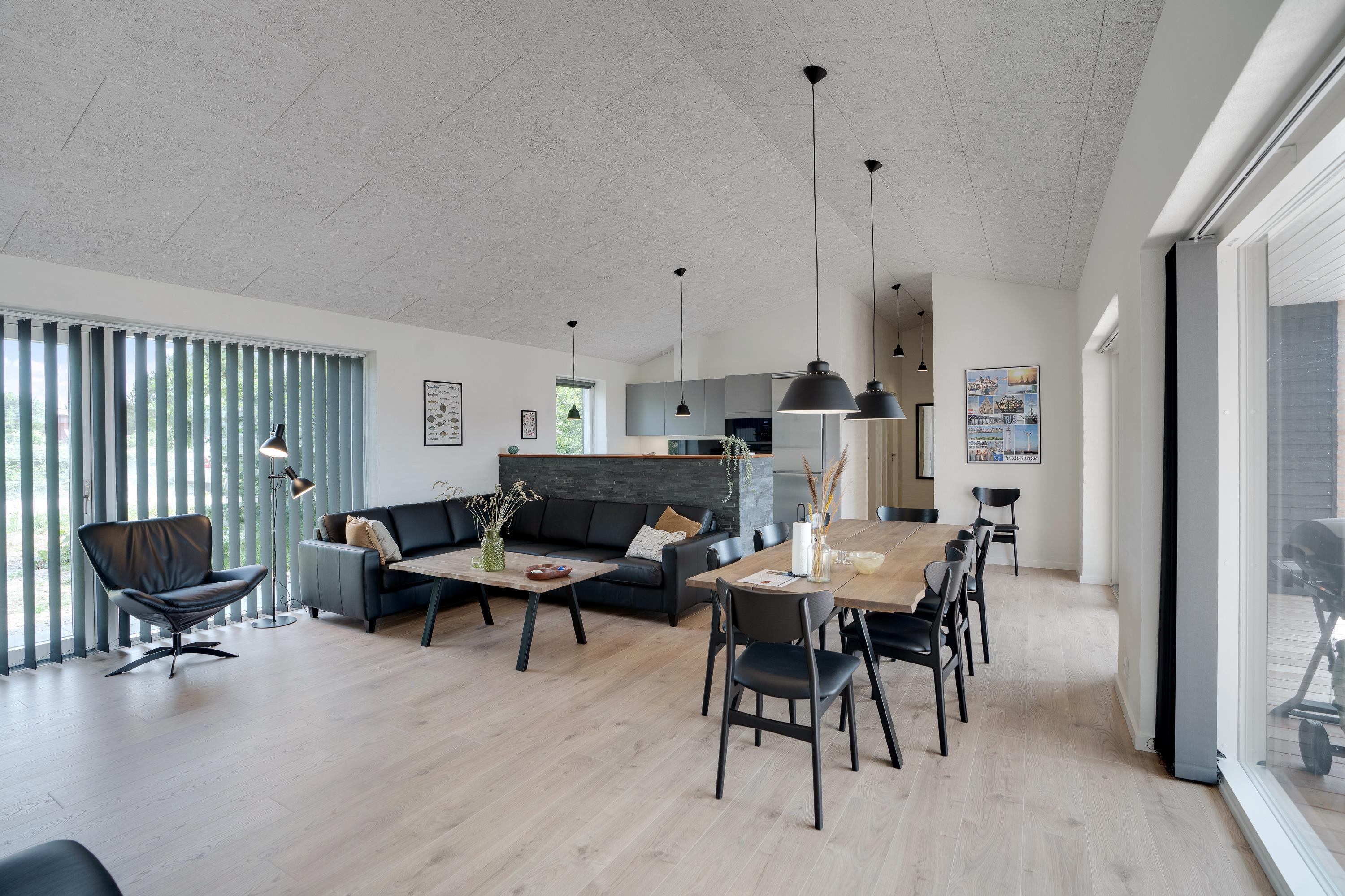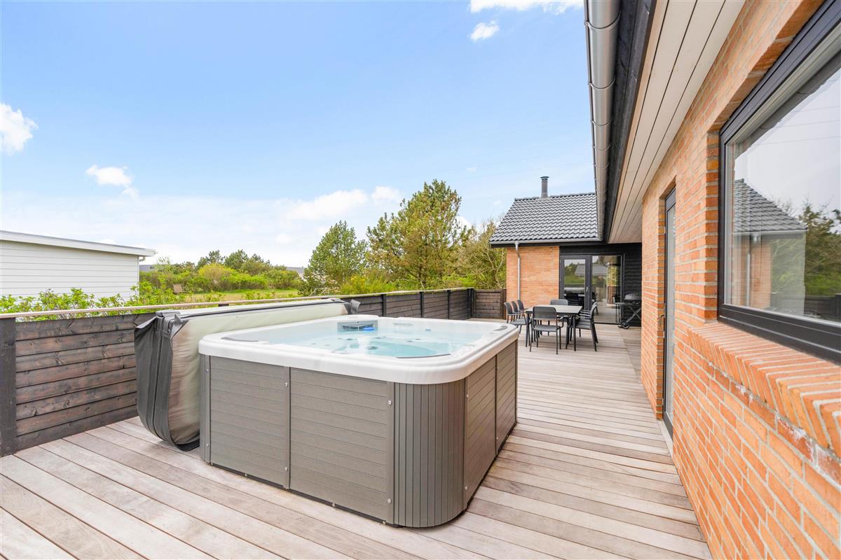 This modern holiday home, completed in 2021, is located at Fyrmarken 107 in Nørre Lyngvig, close to the Lyngvig Fyr lighthouse and beach. With its perfect layout, the holiday home is ideal for two families with children or for a holiday with friends. Dogs are also welcome. A special feature of this house is the outdoor hot tub, and the games room provides plenty of space for fun and entertainment.