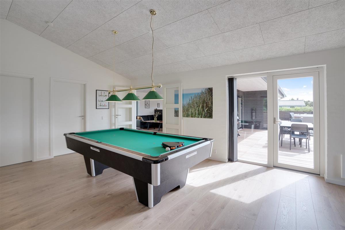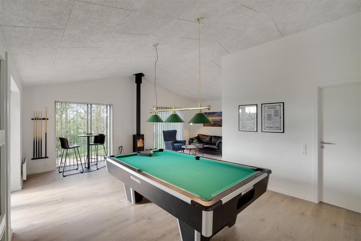 The spacious, modern kitchen with integrated dining area is perfect for cooking together and meets every need - making it ideal for evening games nights. The adjoining games room, equipped with a pool table among other features, ensures there's never a dull moment. On cooler evenings, enjoy the cosy warmth from the wood-burning stove while relaxing on the sofa with a good book or watching television. Alternatively, there's a modern, energy-efficient heat pump available.
