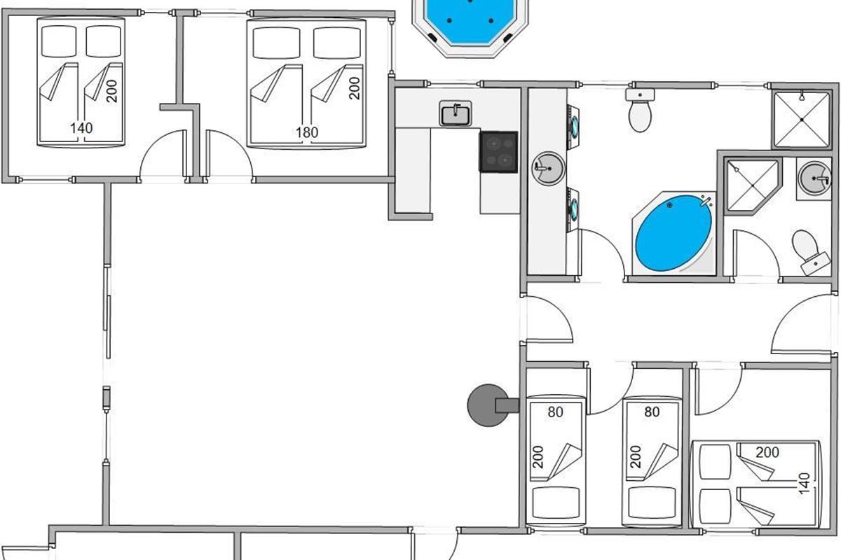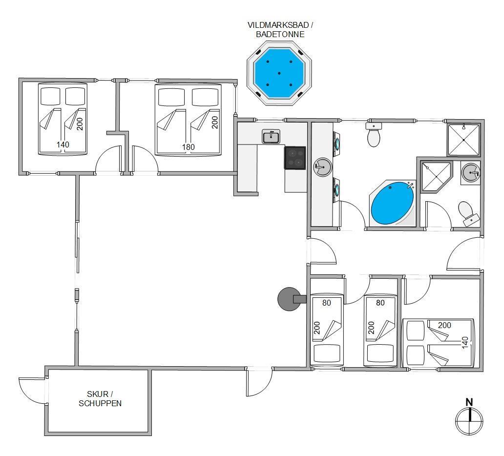 The holiday home features several terraces where you can enjoy your holiday in fine weather. A highlight of the outdoor area is the Nordic hot tub, perfect for relaxing in warm water under the open sky.