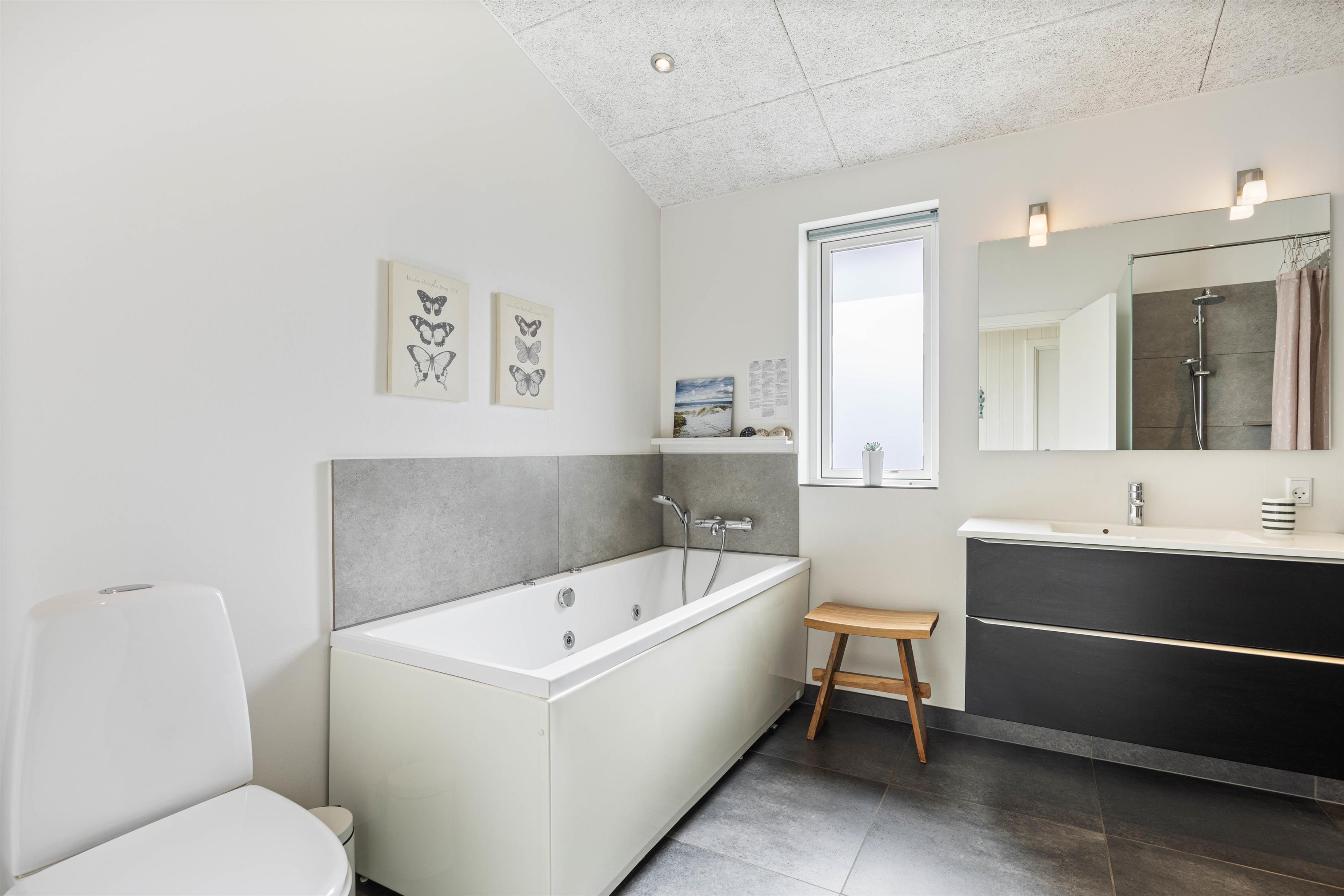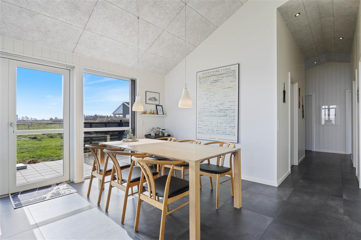 This attractive holiday home in Nr. Lyngvig, built in 2015, features modern furnishings throughout. It's situated in a peaceful area between the North Sea and Ringkøbing Fjord. The kitchen features tiled flooring for easy cleaning, while the hallway and living room benefit from high ceilings, creating a spacious, bright and airy atmosphere.