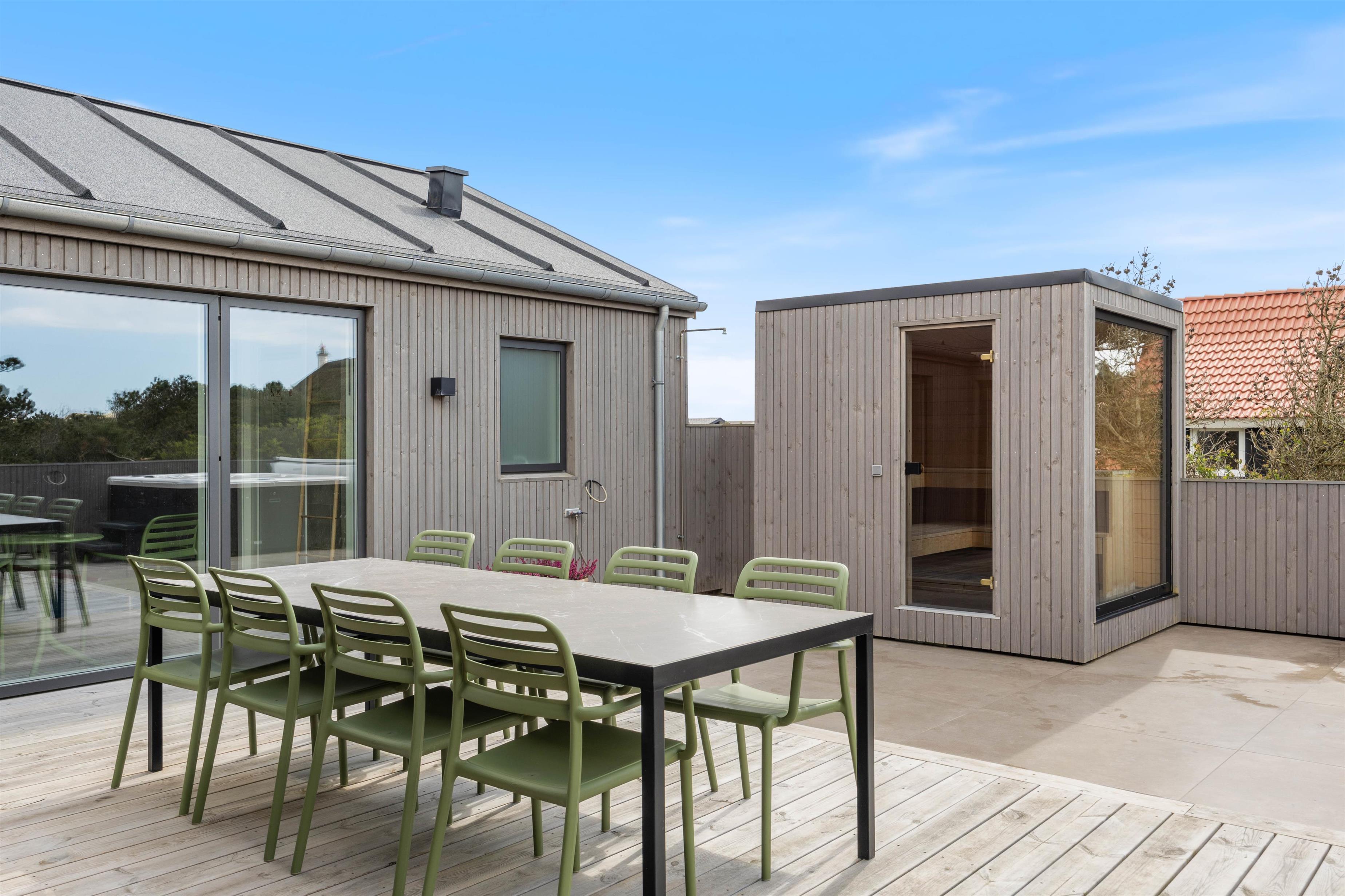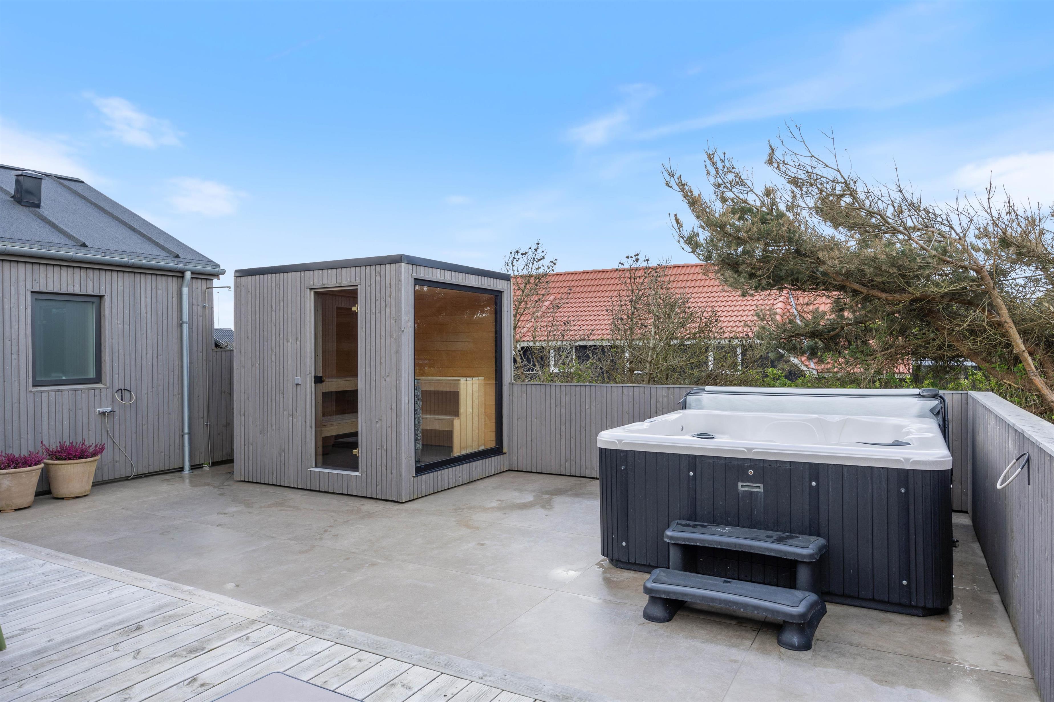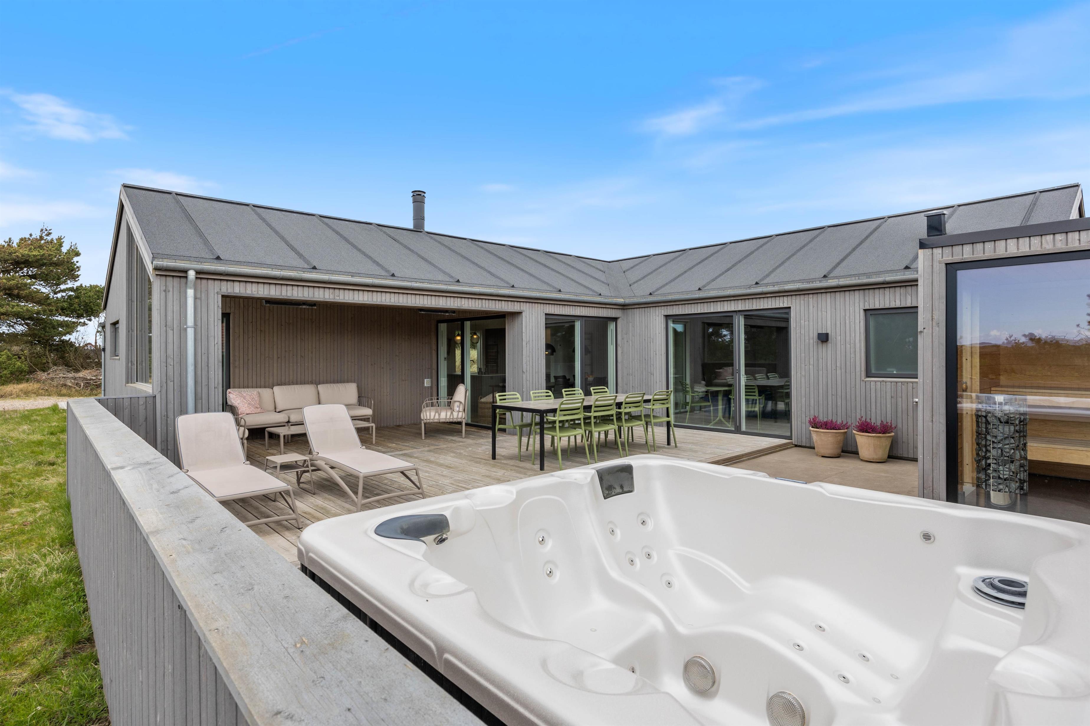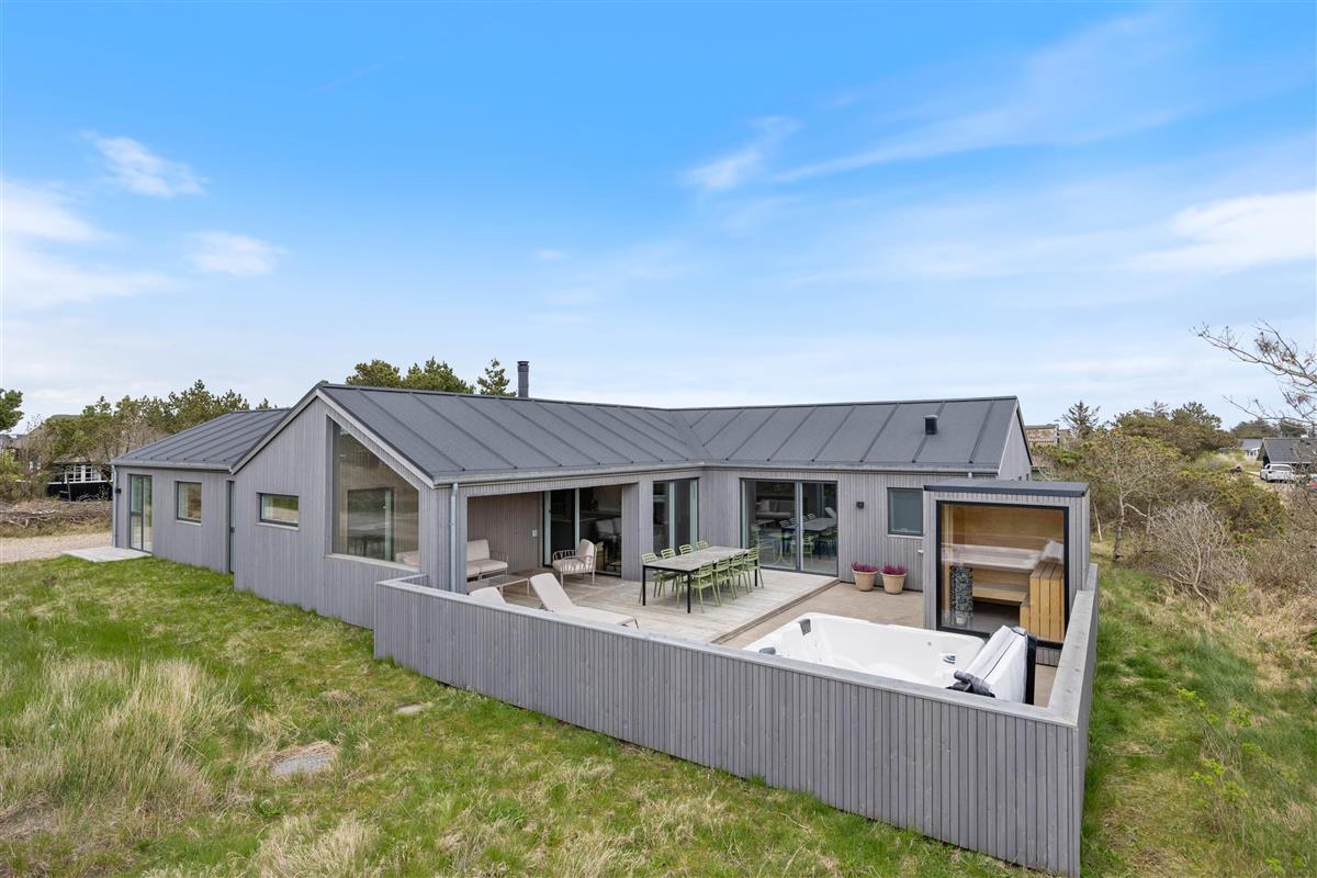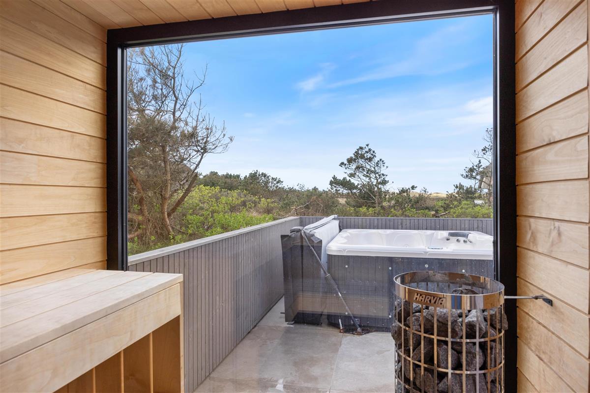This stylish and modern holiday home at Fyrmarken 155 in Nørre Lyngvig offers 180 square metres of space, perfect for your next family holiday or for friends looking to unwind. This holiday home leaves nothing to be desired, providing the perfect setting for your holiday on the Danish west coast. The interior features numerous attractions including a salt water pool, games room and a large, harmonious family room. The beautiful outdoor area impresses with its cosy lounge corner, outdoor hot tub and sauna.