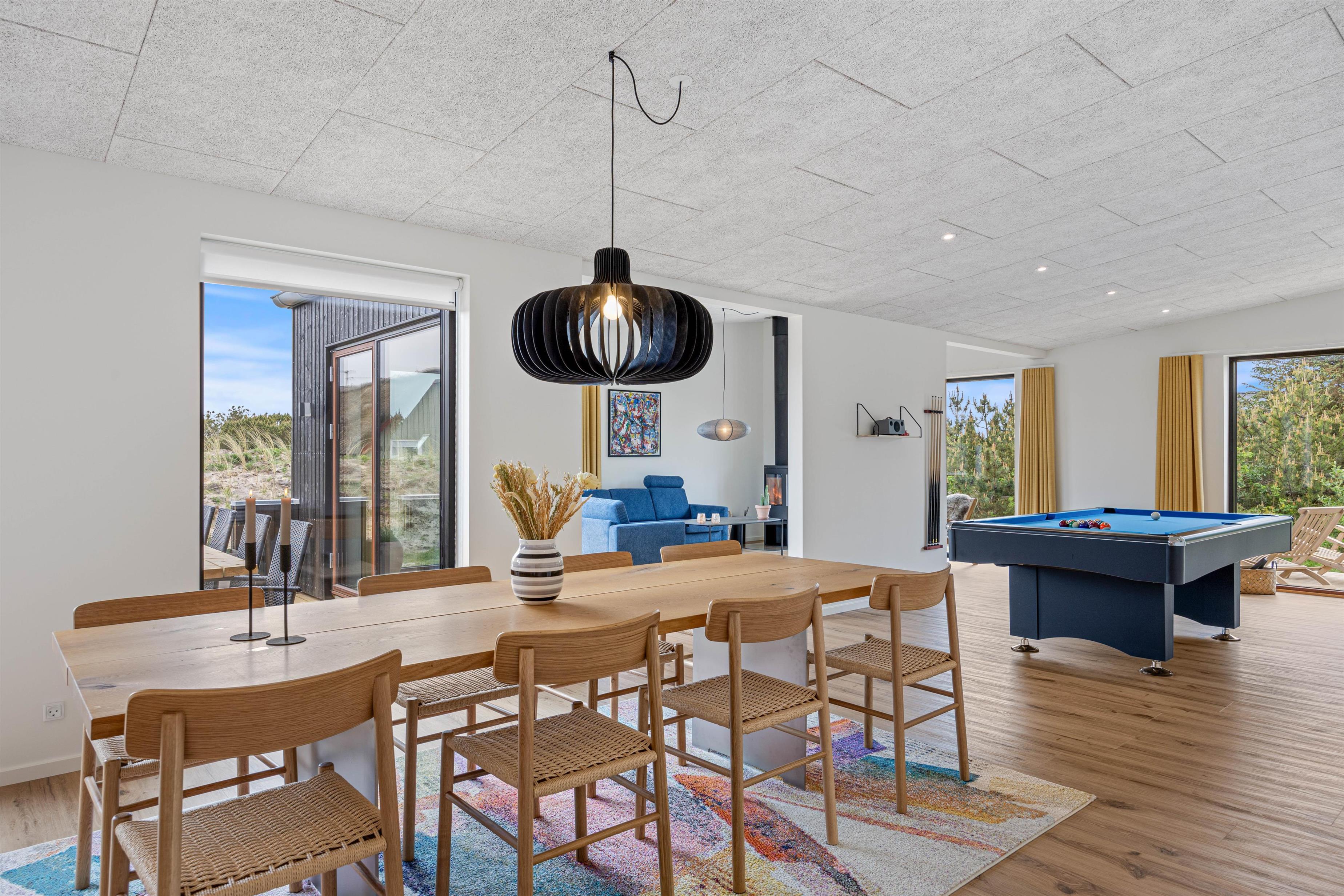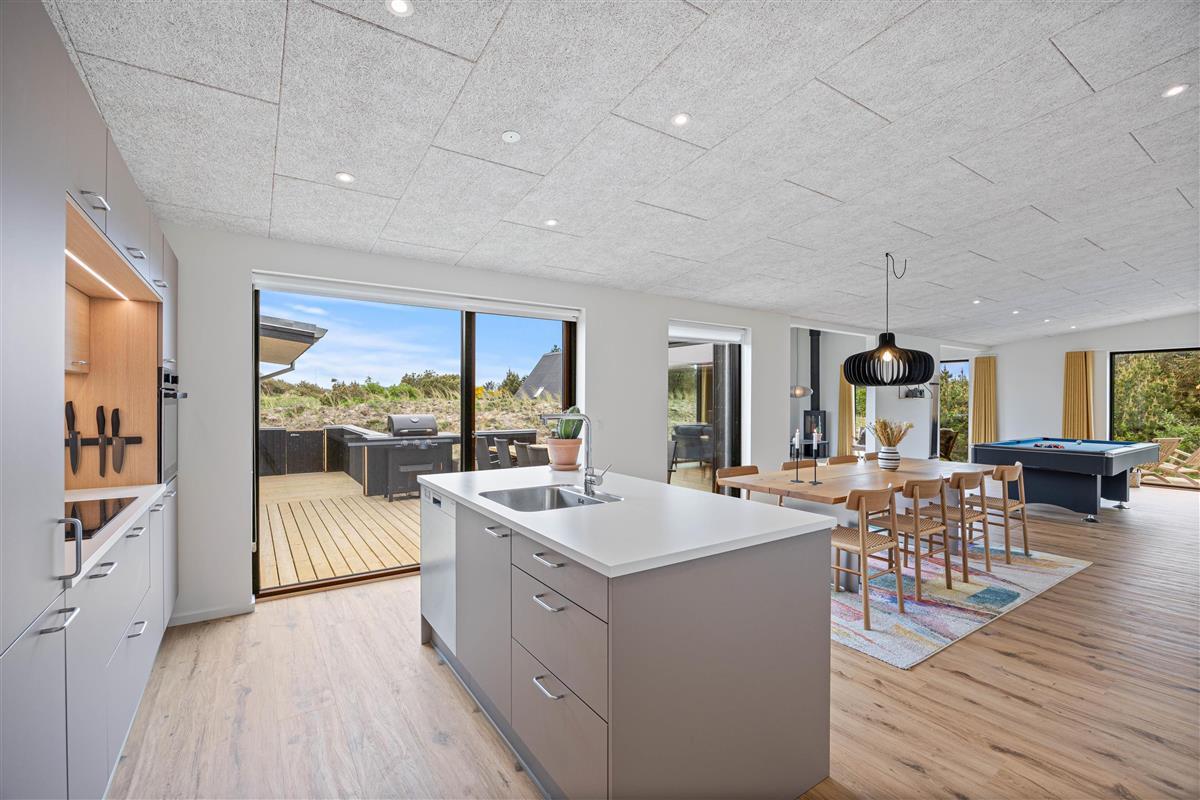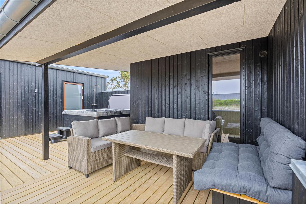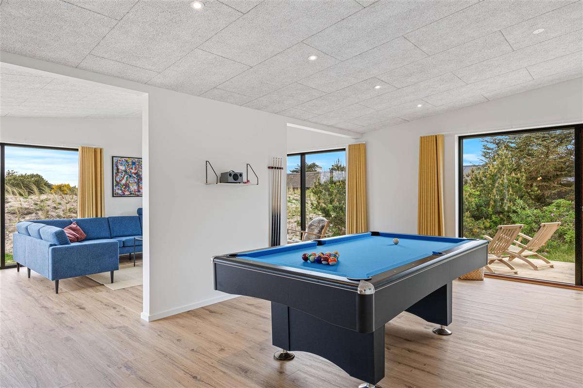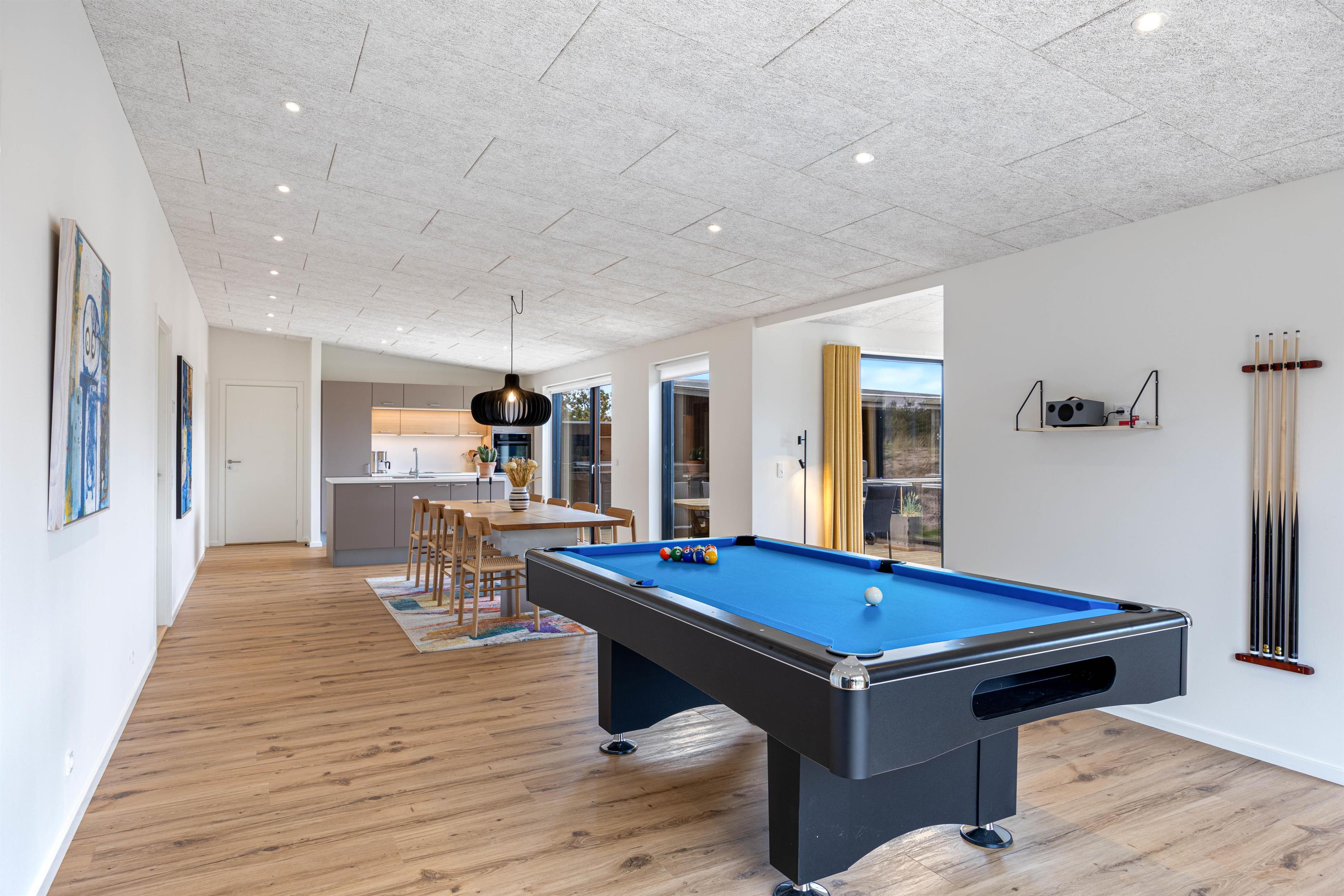 The outdoor area features a large hot tub accommodating up to 6 people and a sauna for ultimate relaxation. Refresh yourself in the outdoor shower before firing up the barbecue to prepare delicious meals. If you enjoy being active, you'll love the leisure facilities in the games house – endless fun is guaranteed with pool and table tennis. Just a short 900-metre walk takes you directly to the beach where you can fully enjoy Nr. Lyngvig's coastal atmosphere.