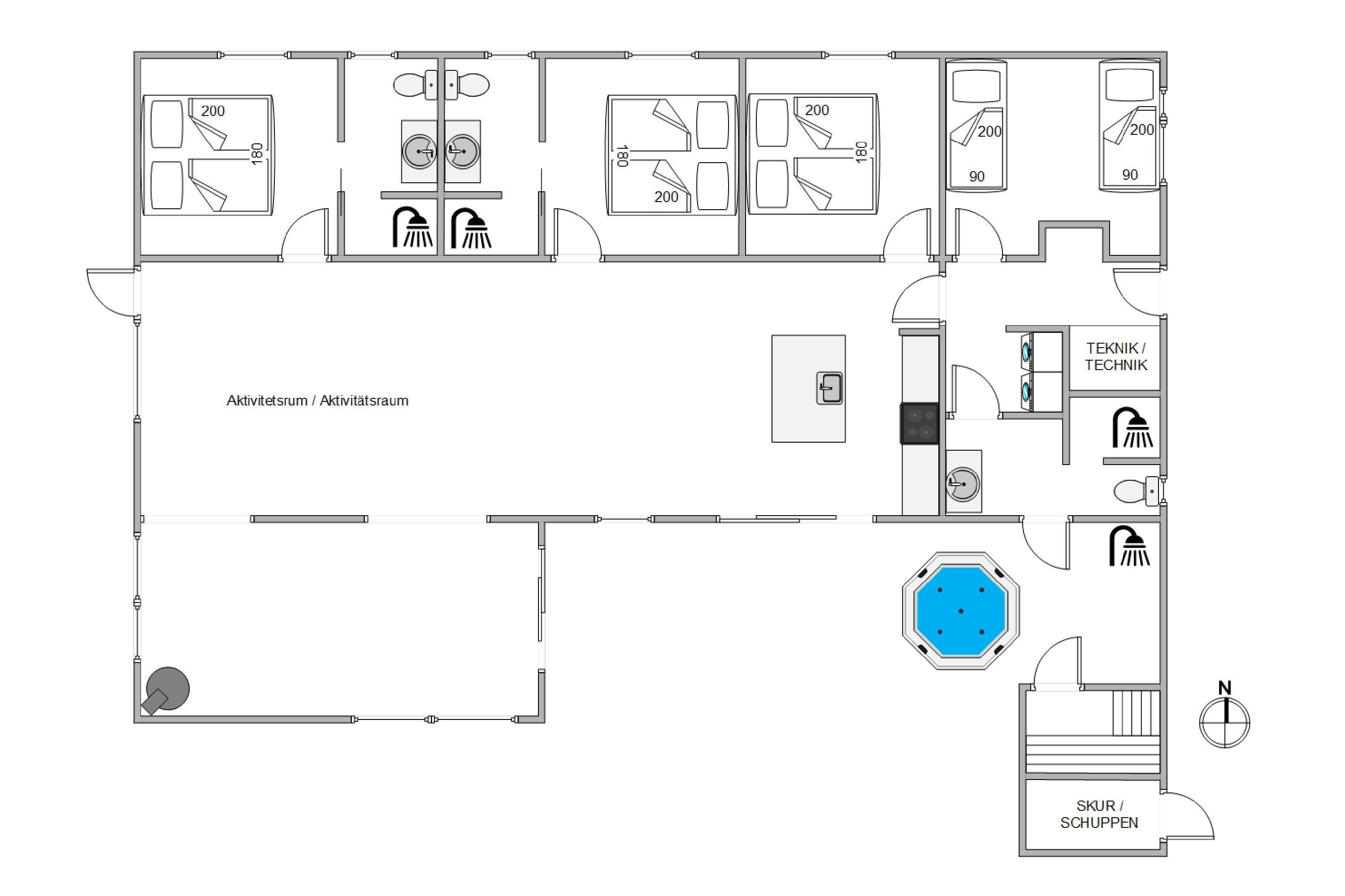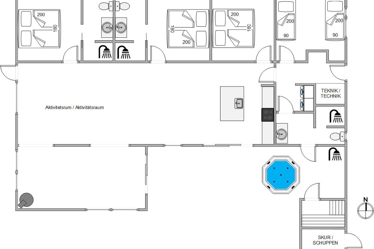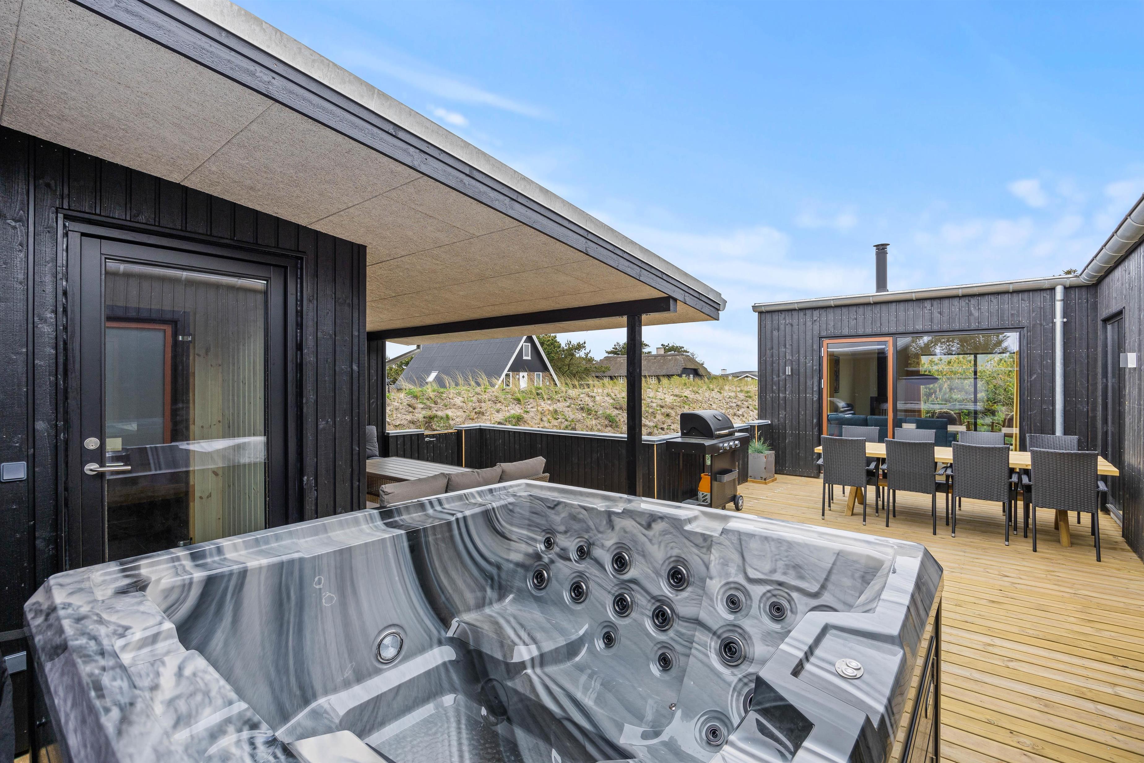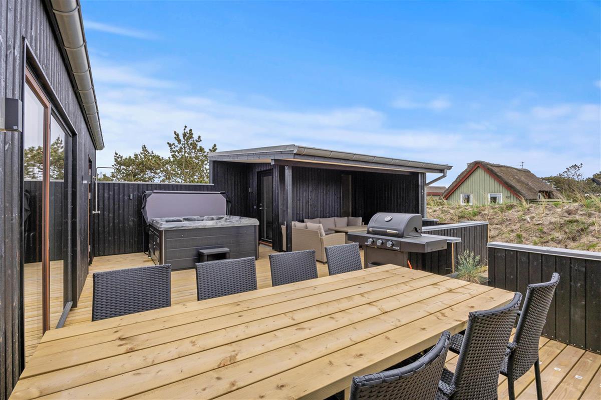 The outdoor area features a large hot tub accommodating up to 6 people and a sauna for ultimate relaxation. Refresh yourself in the outdoor shower before firing up the barbecue to prepare delicious meals. If you enjoy being active, you'll love the leisure facilities in the games house – endless fun is guaranteed with pool and table tennis. Just a short 900-metre walk takes you directly to the beach where you can fully enjoy Nr. Lyngvig's coastal atmosphere.