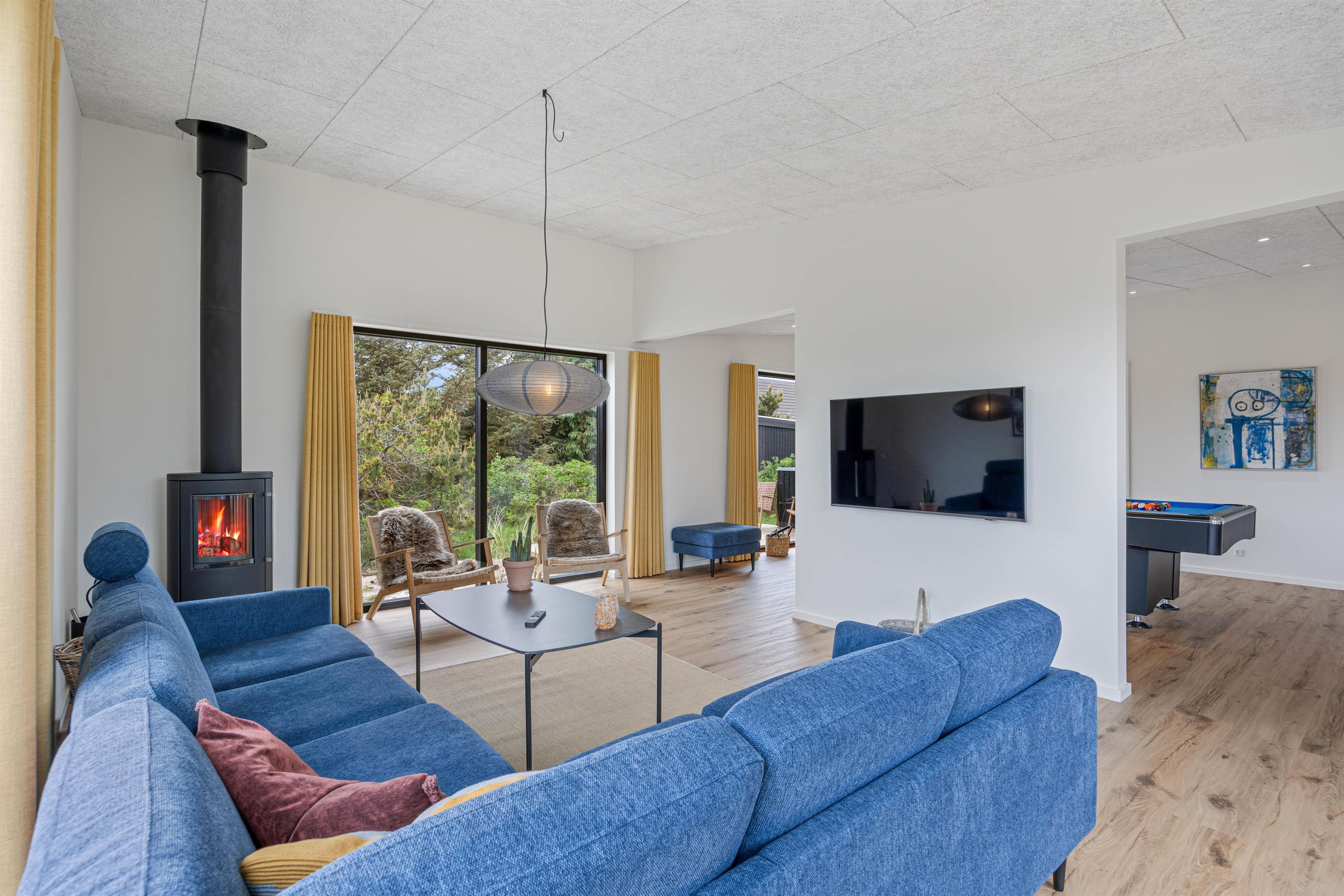 This Nr. Lyngvig holiday home ensures everyday comfort. The modern, fully equipped kitchen includes a dishwasher and provides ample space for cooking for all guests. A large, separate 100-litre freezer offers plenty of storage for supplies and refreshments. The welcoming living area features a wood-burning stove providing cosy warmth on cooler evenings. An air-to-water heat pump ensures comfortable temperatures throughout all rooms.