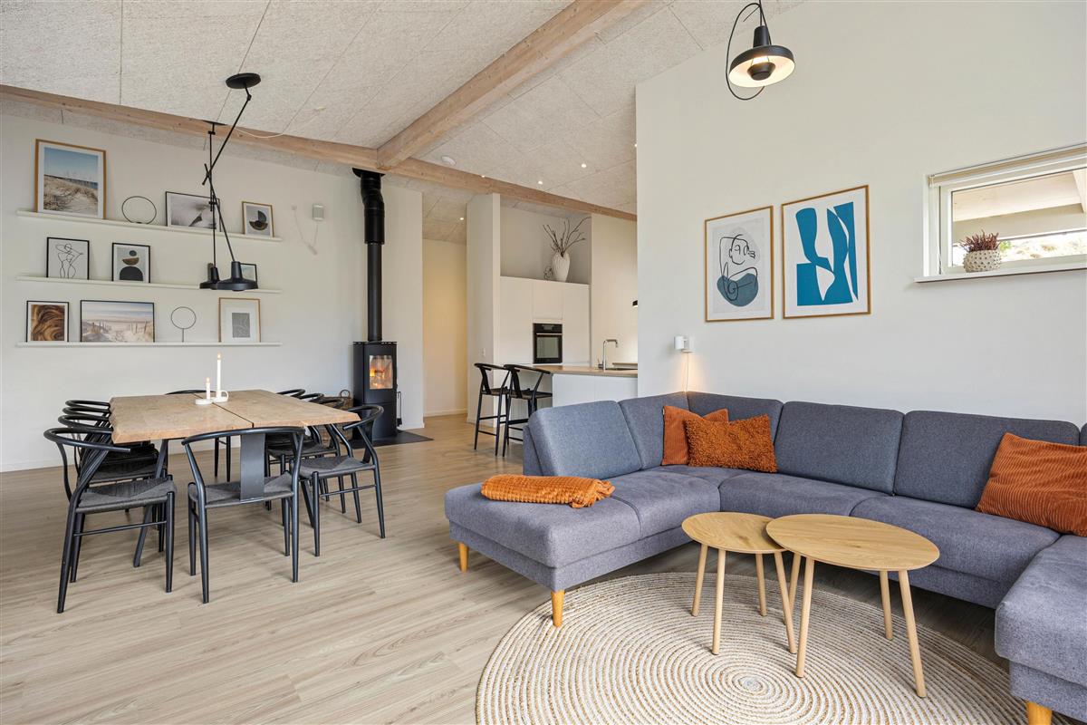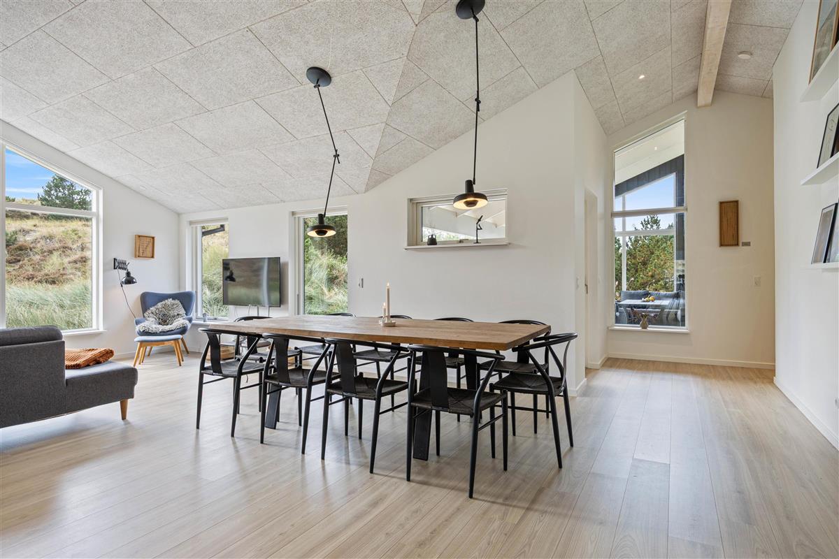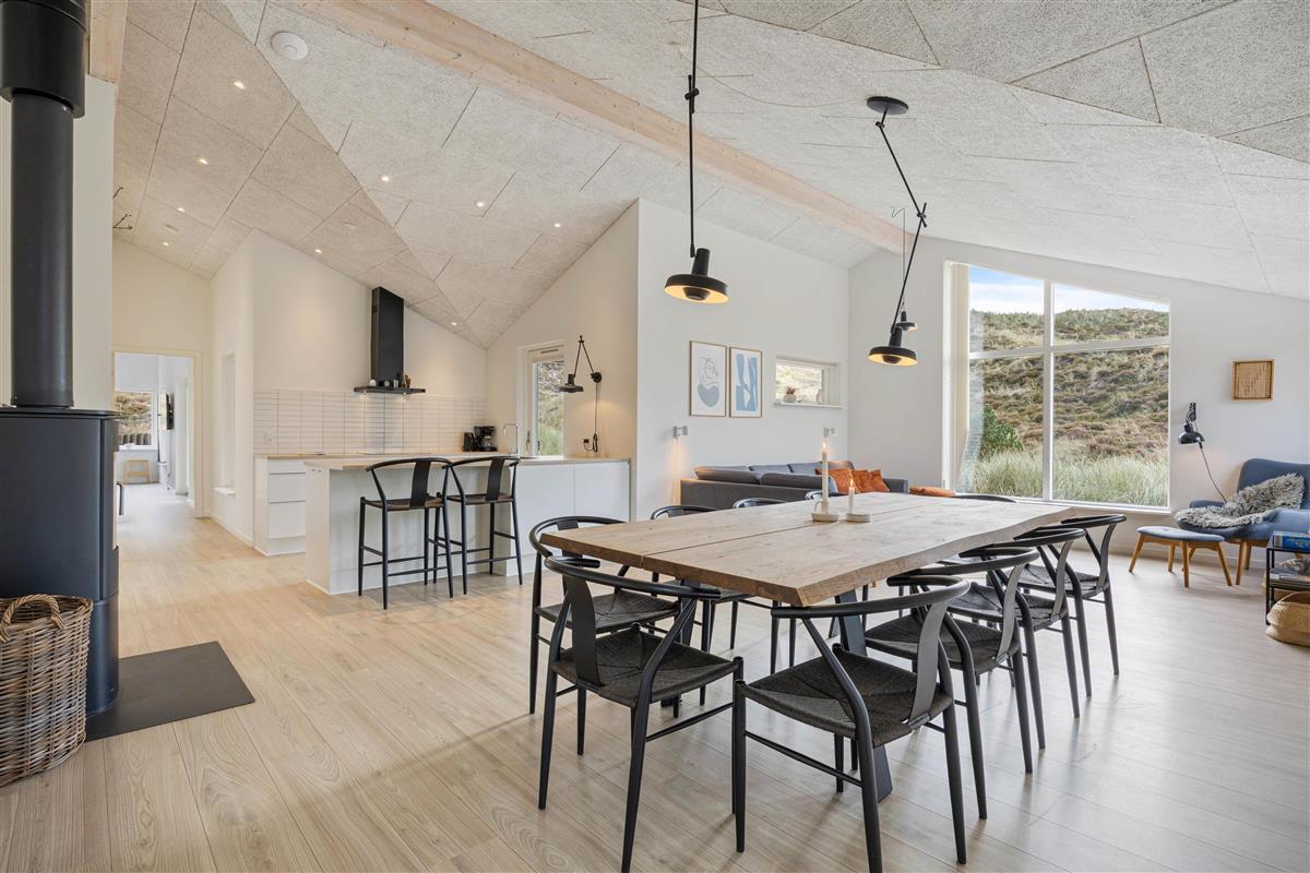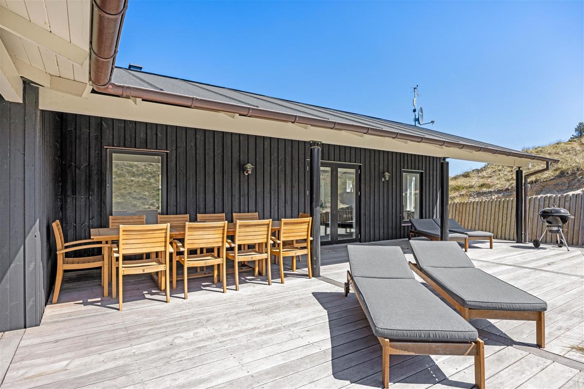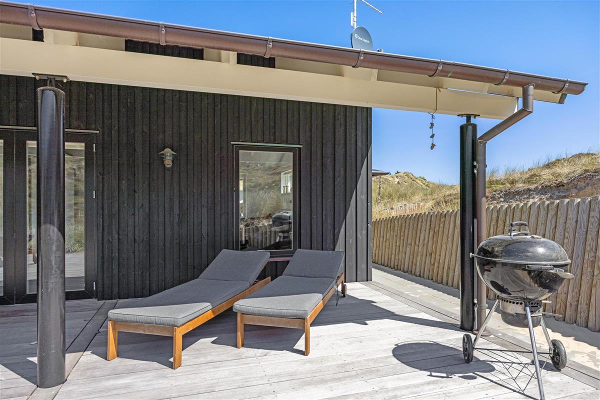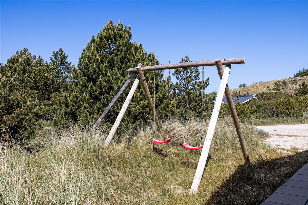 The generously sized terrace features a special highlight – fantastic panoramic views. You'll be particularly enchanted by the sunrise over Ringkøbing Fjord. During the day, there are plenty of opportunities for sunbathing or reading an engaging book. Meanwhile, children can enjoy the swing and sandpit. The designated chef can prepare delicious sausages or steaks on the barbecue.