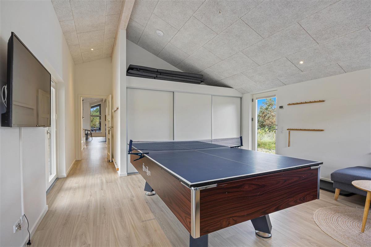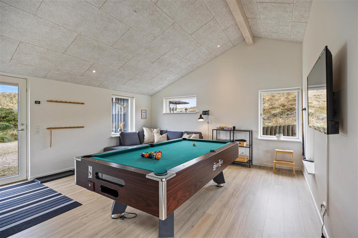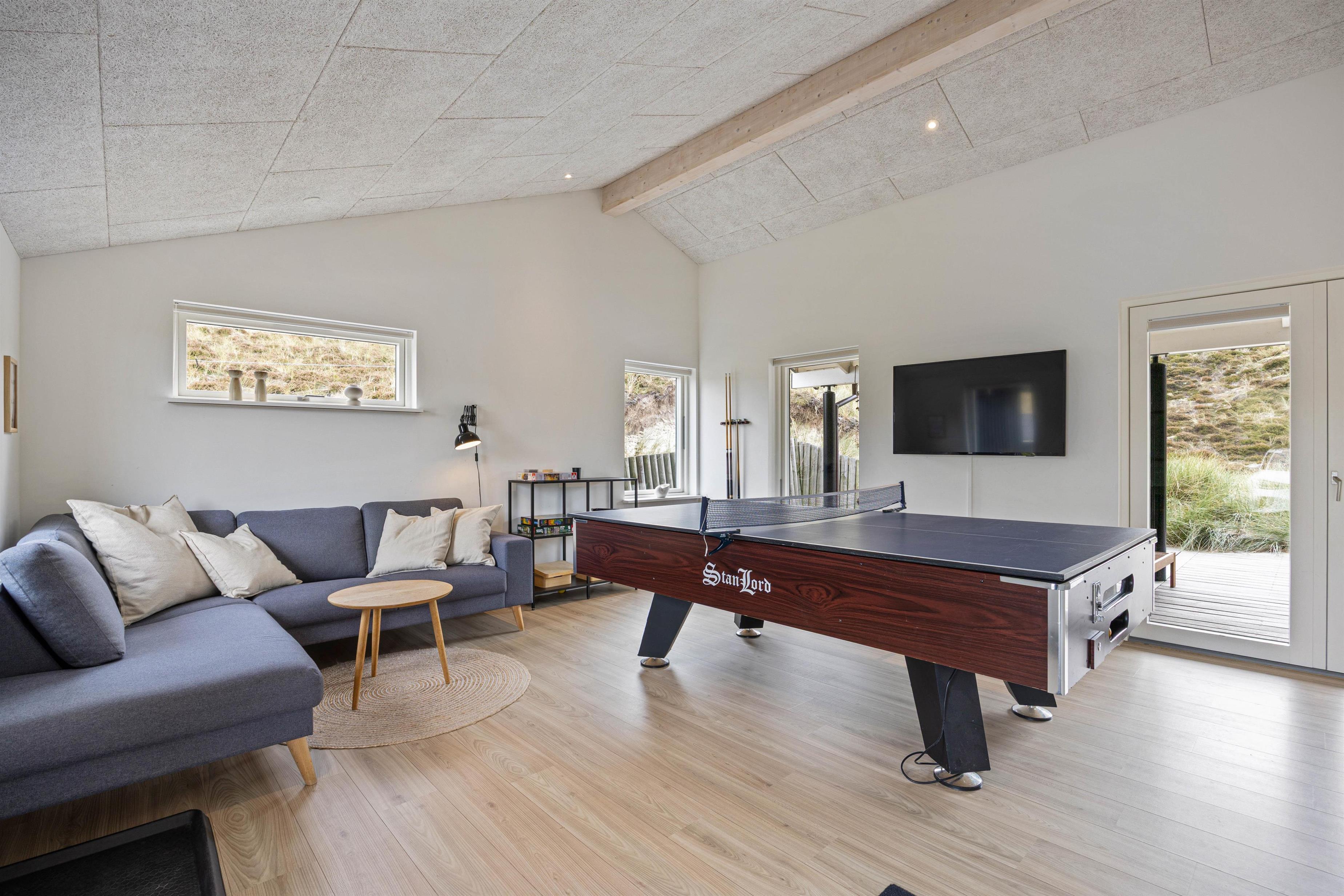This 5-star holiday home, spanning 120 square metres, is nestled in the beautiful natural surroundings of Nr. Lyngvig, near the "Lyngvig Fyr" lighthouse. Here you can fully enjoy your holiday with family or friends. Both the games room with pool table and table tennis, and the spa bathroom with whirlpool and sauna provide the perfect setting for a relaxing break. Your two dogs are also warmly welcome.