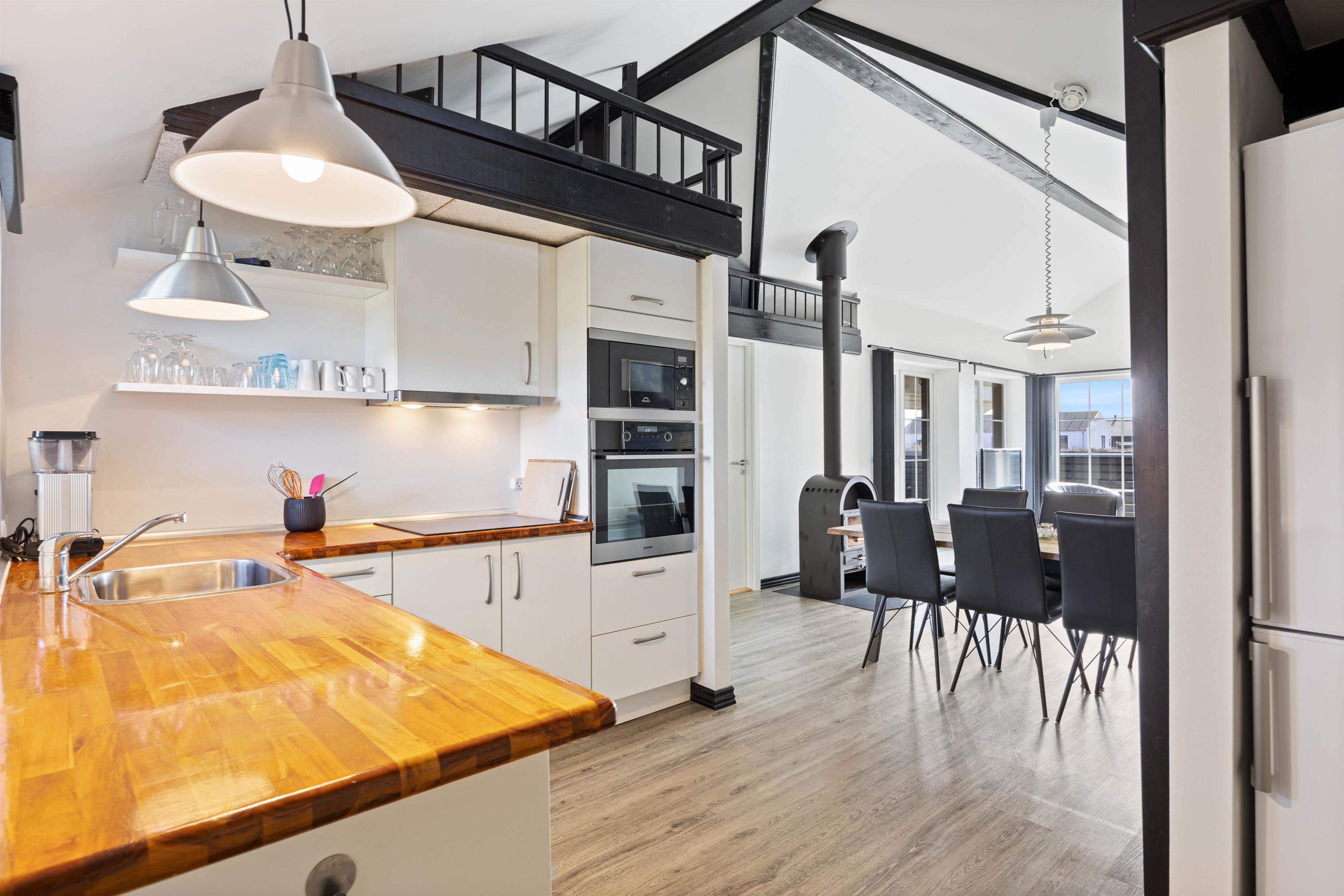 Wonderful timber house located near Ringkøbing Fjord, featuring an enclosed terrace - perfect for families with young children and dogs. The holiday home offers three bedrooms, two bathrooms and a play loft where children can enjoy themselves.