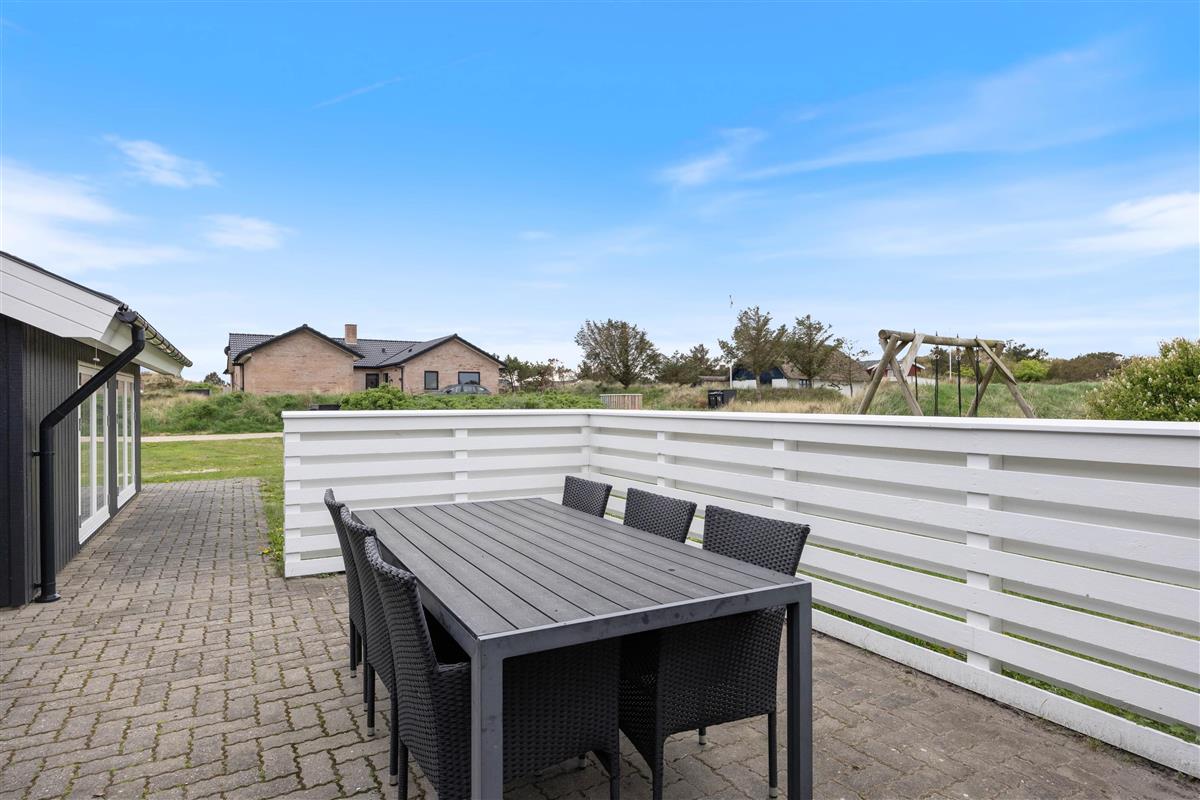 The holiday home sits on a natural plot, just over half a mile (900 metres) from the North Sea, and features several beautiful, partially sheltered terraces where you can enjoy the sunshine with a good book and cool drink. In the evening, fire up the barbecue and prepare a delicious dinner in the setting sun while little ones play in the sandbox or on the swing.