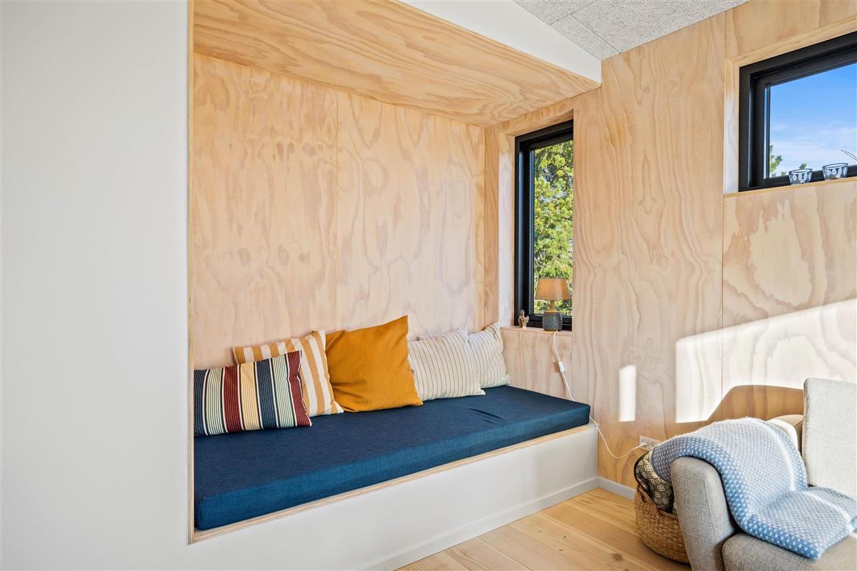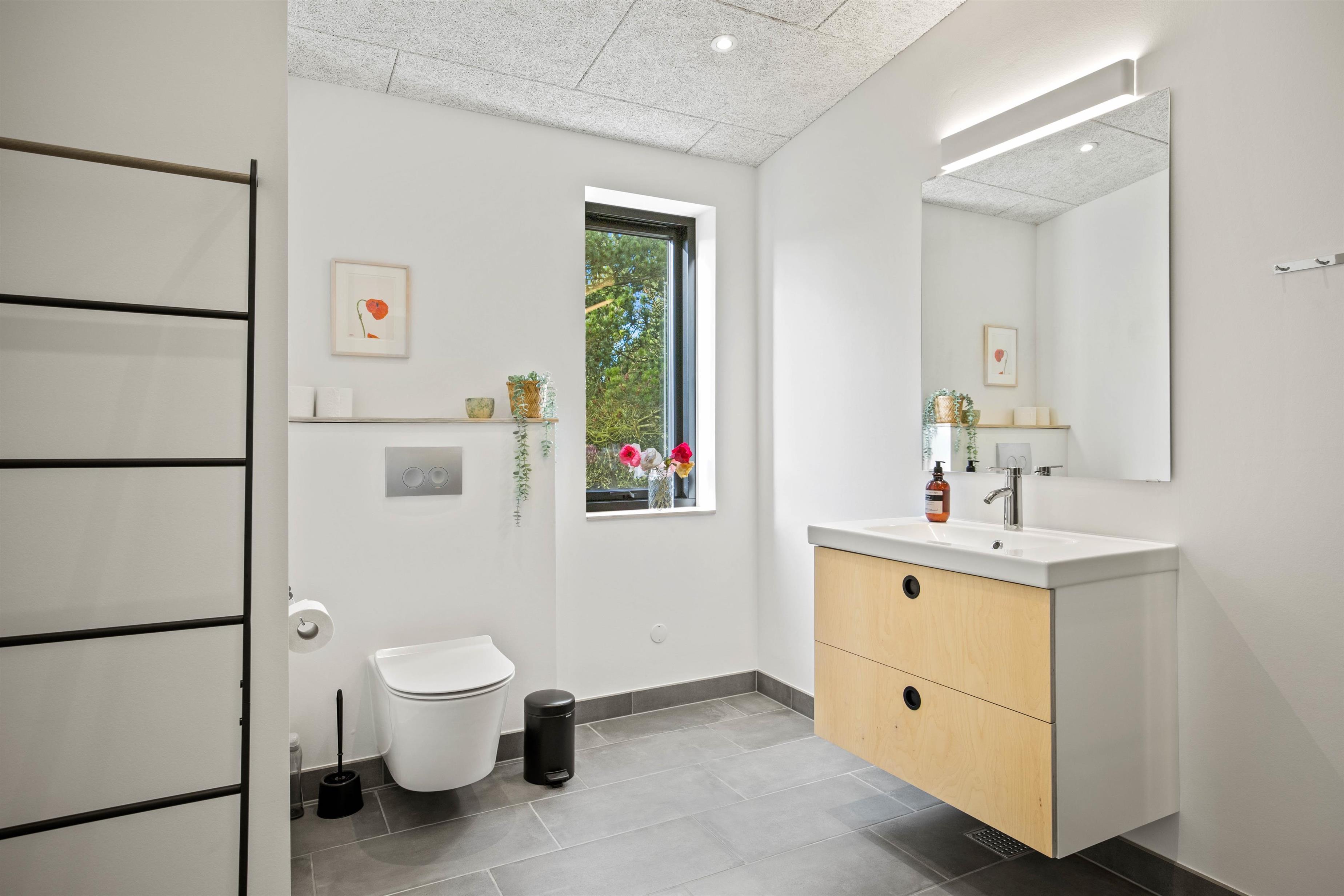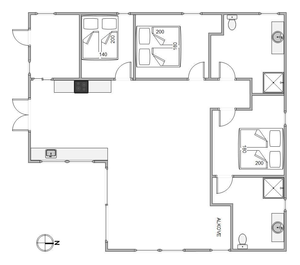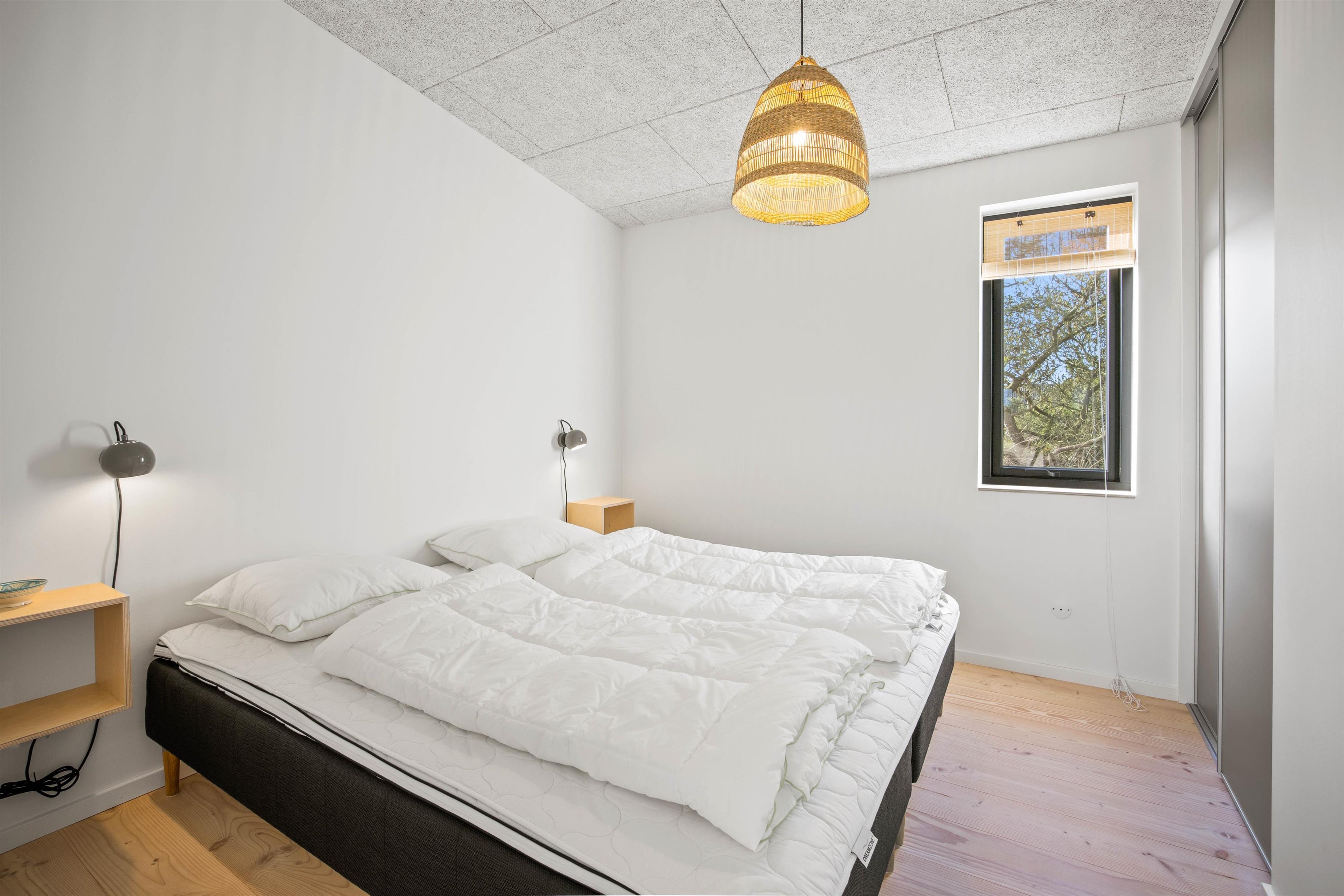 Built in 2021, this holiday home is situated in the beautiful West Jutland heath landscape, which is reflected in its interior design. Natural materials and calm colours create a peaceful and cosy atmosphere throughout. The heart of the holiday home is the spacious open-plan living area with kitchen and lounge, offering plenty of space for the whole family. An energy-efficient air-to-air heat pump provides comfortable heating. While some family members prepare delicious meals in the kitchen, others can enjoy reading in the cosy sleeping nook, and after dinner, everyone can gather in the sofa corner for games night or stream favourite films via Chromecast. In addition to the generous living room, the holiday home features two bathrooms, three bedrooms and a utility room with washing machine. The bathrooms benefit from underfloor heating for year-round comfort. Two bedrooms feature double beds, while the third has a 140 cm x 200 cm bed. Two bedrooms include fitted wardrobes for storage.