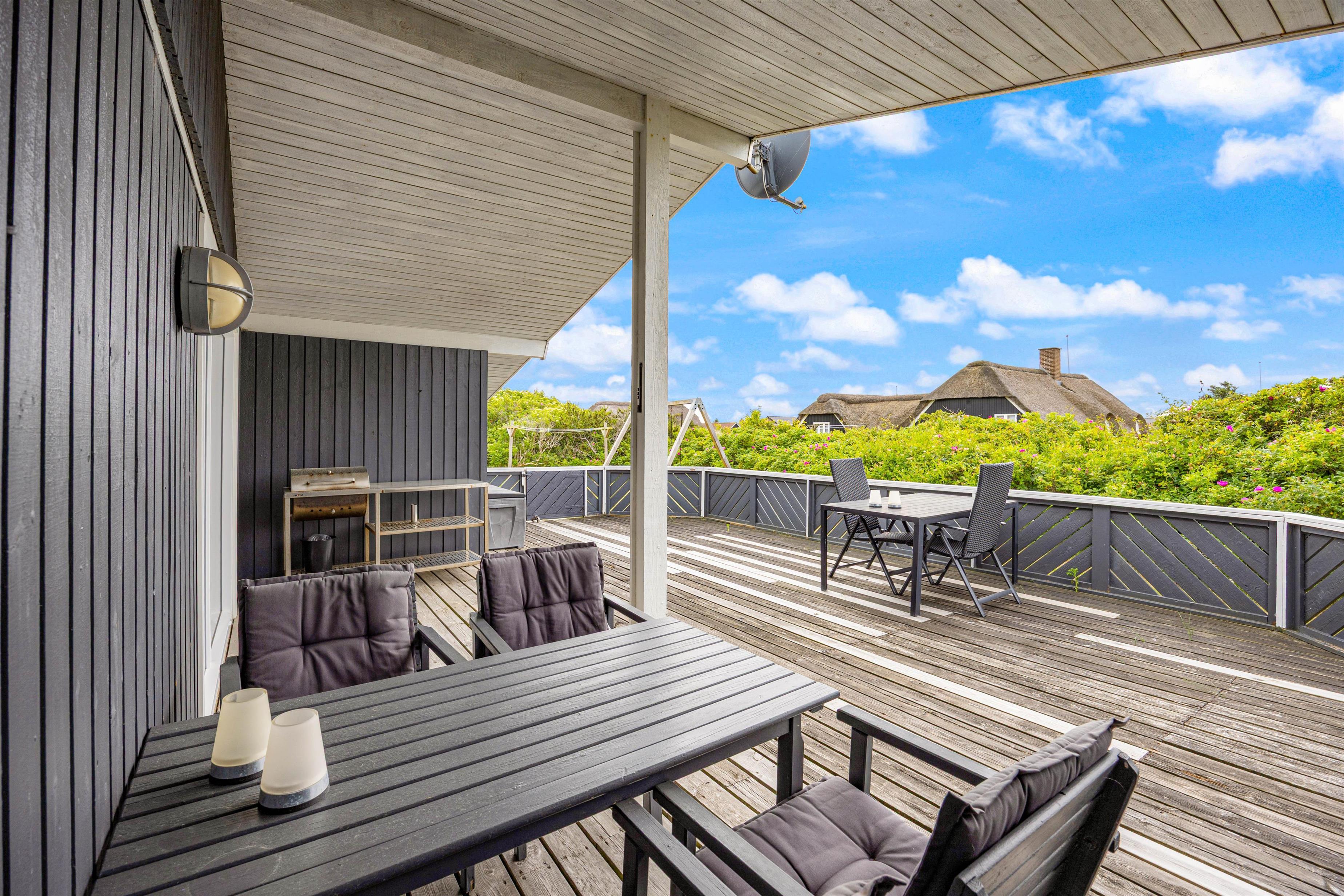 The enclosed terrace allows you to enjoy the summer weather in the fresh North Sea air undisturbed. In the evening, gather with family on the partially covered terrace for a relaxing barbecue. While you unwind at the end of the day, children can play on the terrace or in the peaceful surroundings. There's also a swing and sandbox for the little ones.