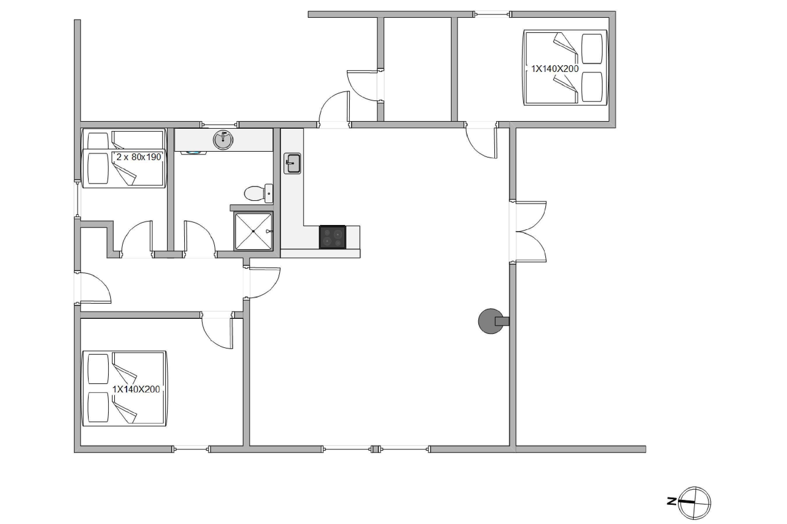 Inside, the house is well-furnished with space for the whole family. The heart of the home is the living area, which connects to the kitchen, where the family can come together to prepare meals, watch films or enjoy board games.