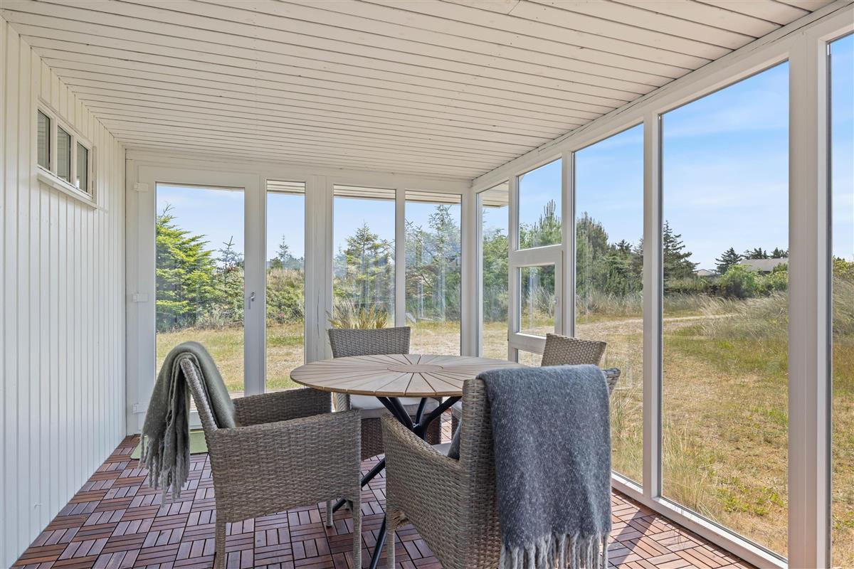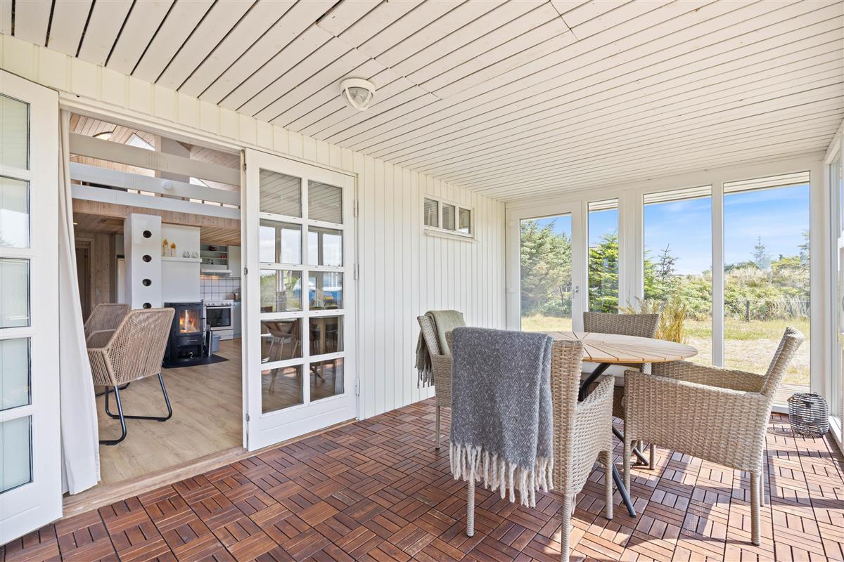 From the open terrace, you'll enjoy unobstructed views of the peaceful natural surroundings. The holiday home sits on a beautiful natural plot within the dunes, characterised by typical heather and dune grass landscapes.