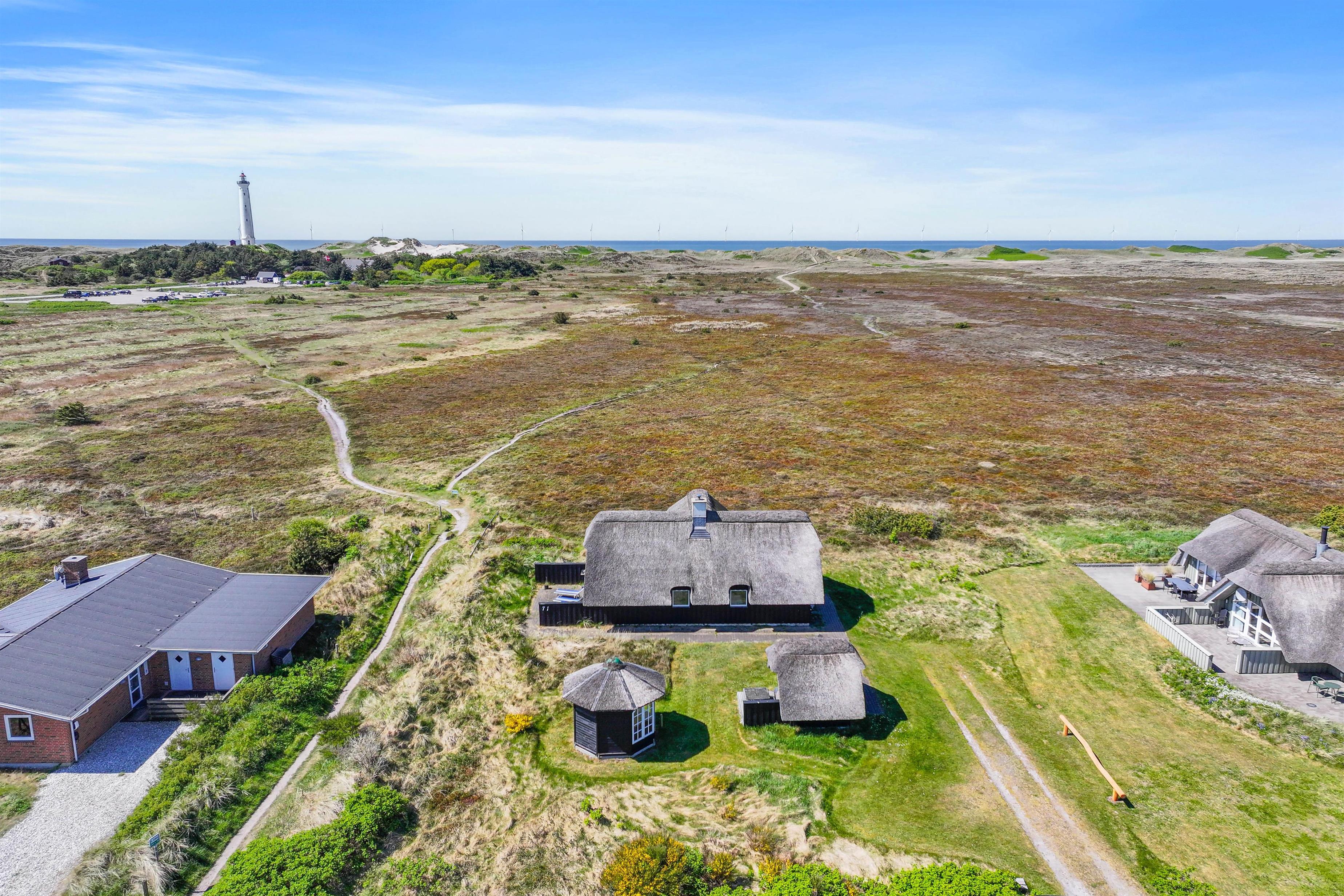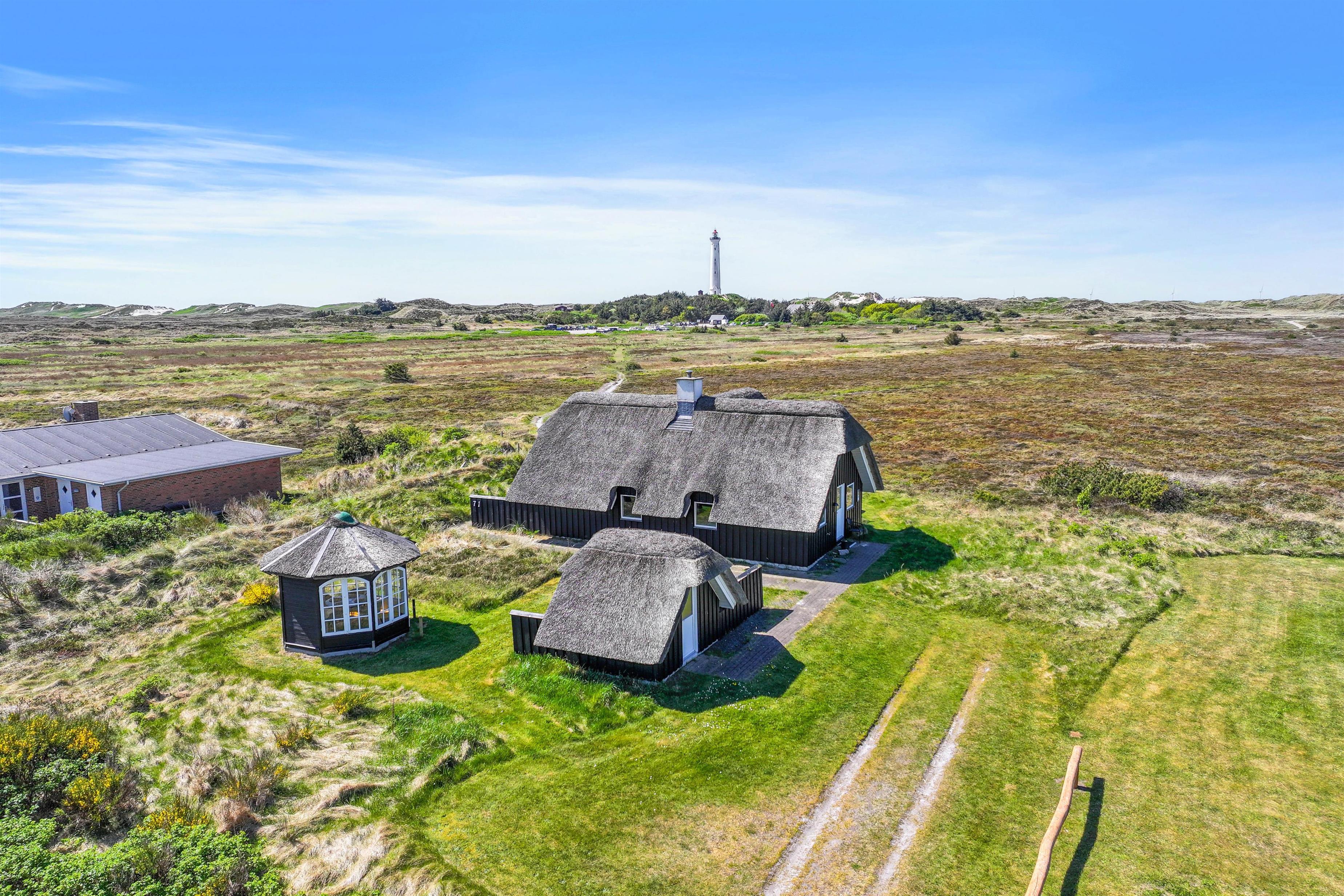 This beautiful thatched cottage at Fyrmarken 71 offers not only stunning views over the dune landscape and Lyngvig lighthouse, but also excellent furnishings and amenities.