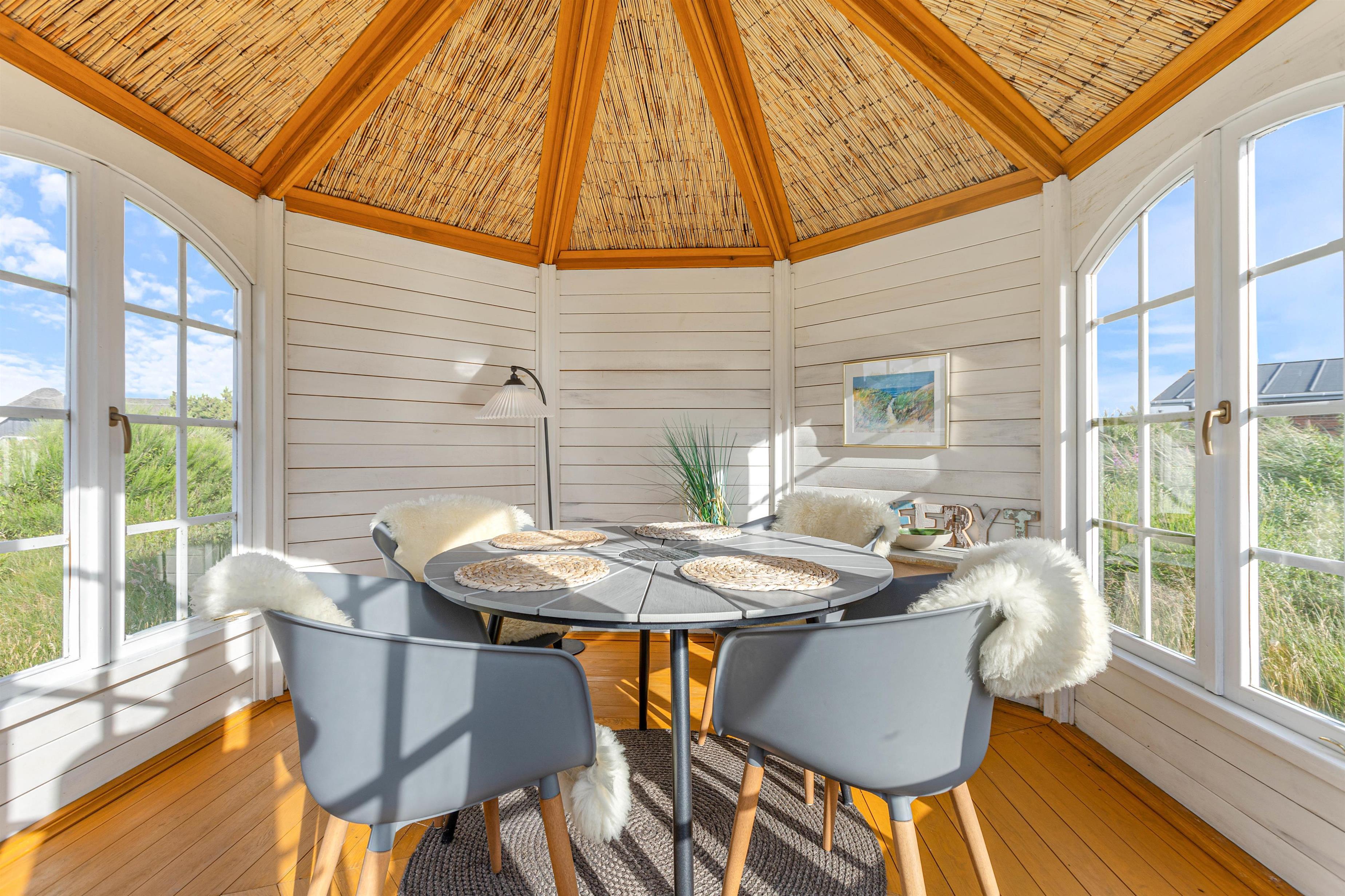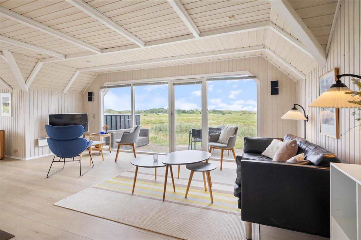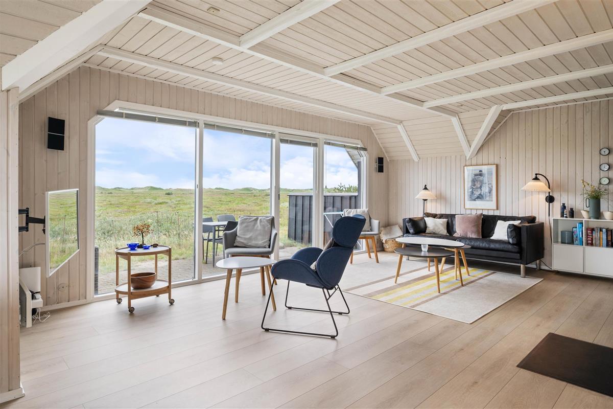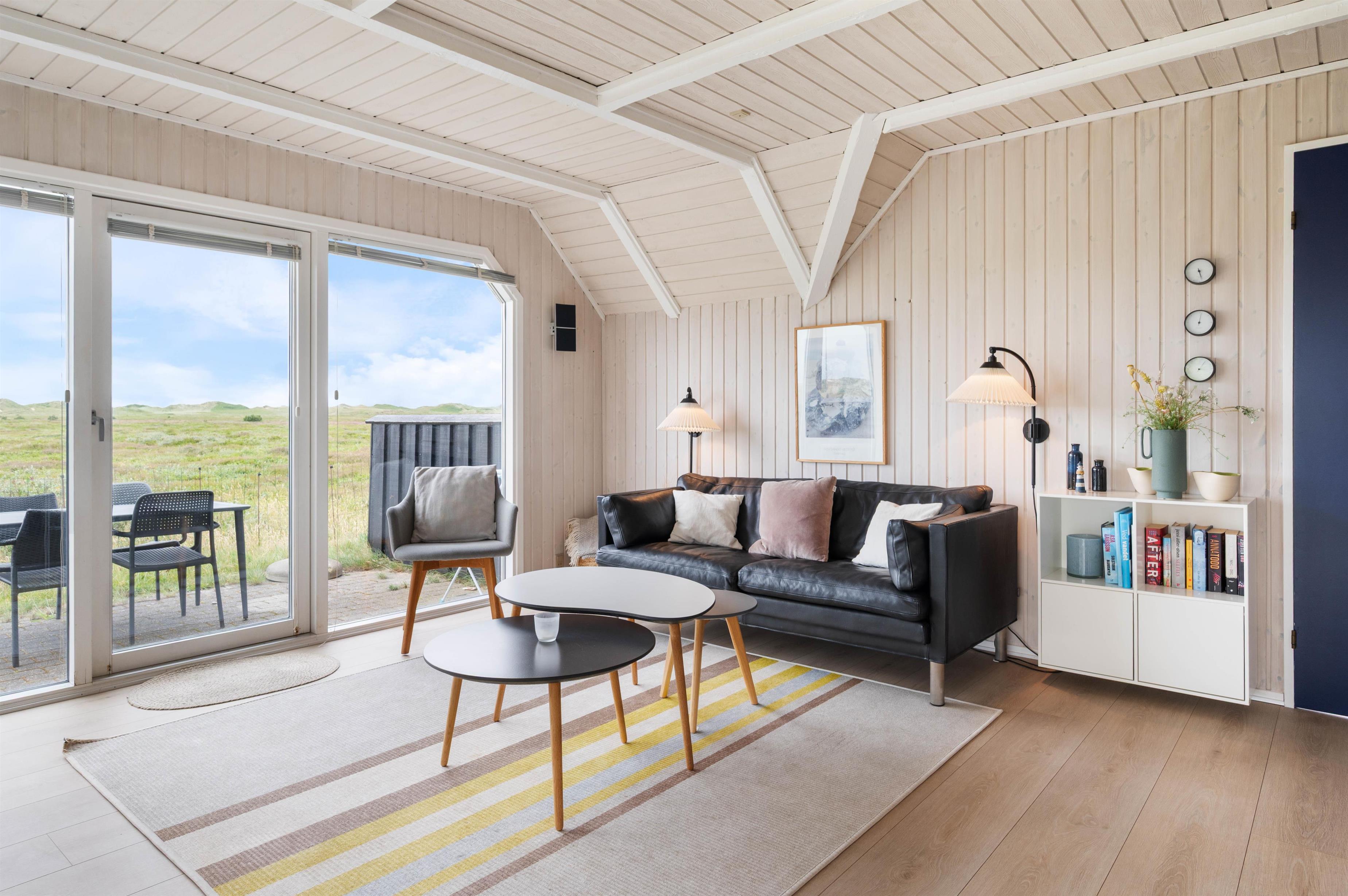 The numerous large windows let in every ray of sunshine and offer beautiful views regardless of the weather. From the house, you have a fantastic view of the dune landscape, and you can even see the lighthouse from the sofa. During the cooler months, you can light the wood-burning stove, listen to its crackling, and enjoy the view.