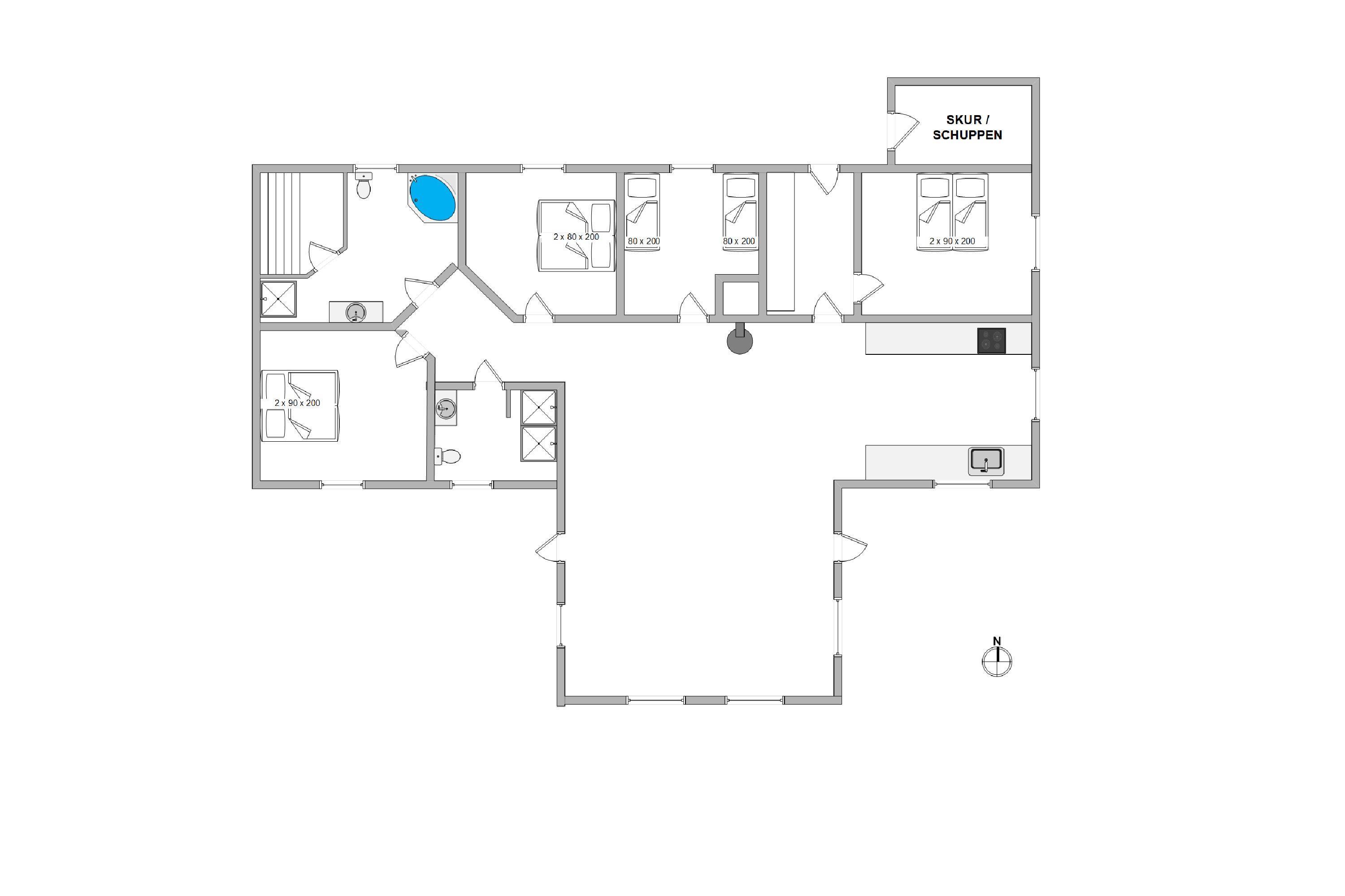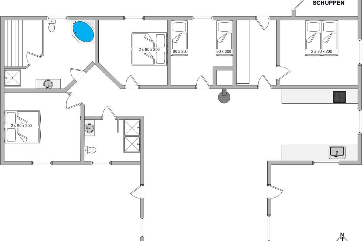 The holiday home features two bathrooms, particularly convenient for groups of up to 8 people. The larger bathroom includes a sauna where you can recharge after a long day in the fresh air.