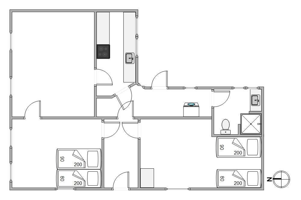 The comfortable holiday home spans 60 square metres and features two bedrooms, both furnished with single beds. The bathroom includes underfloor heating, ensuring warm feet in the morning. You'll also benefit from underfloor heating in the living room and bedrooms.