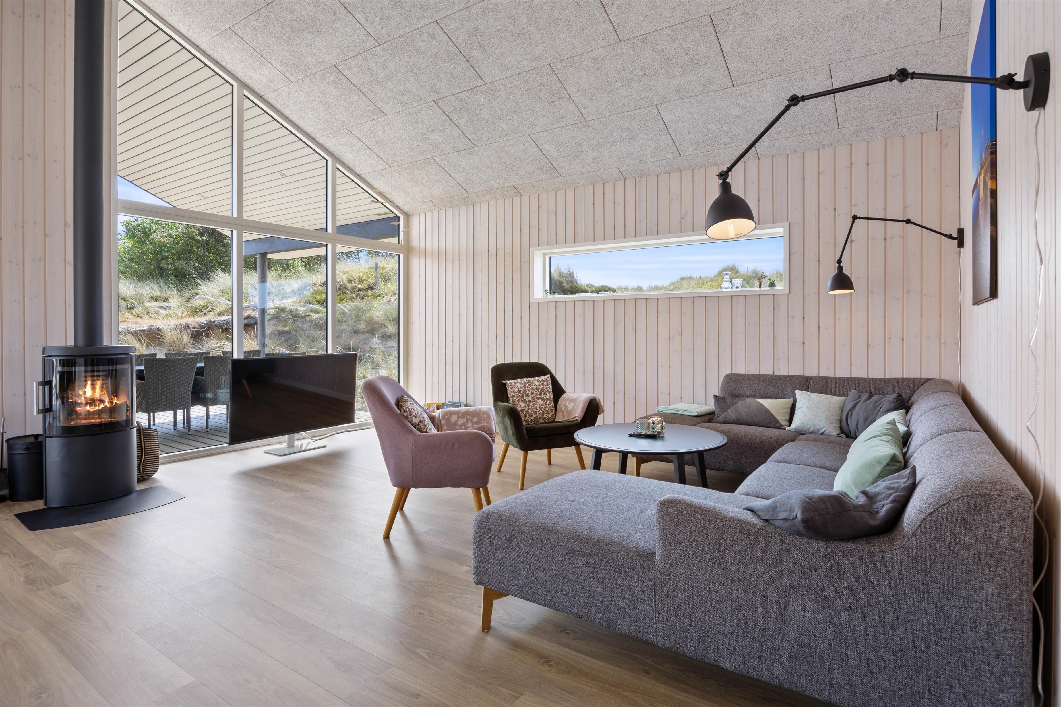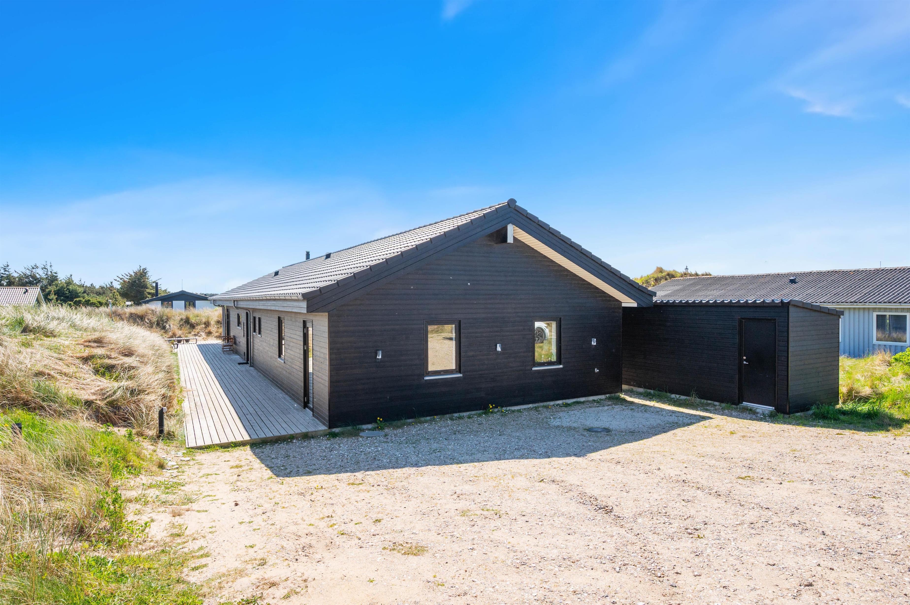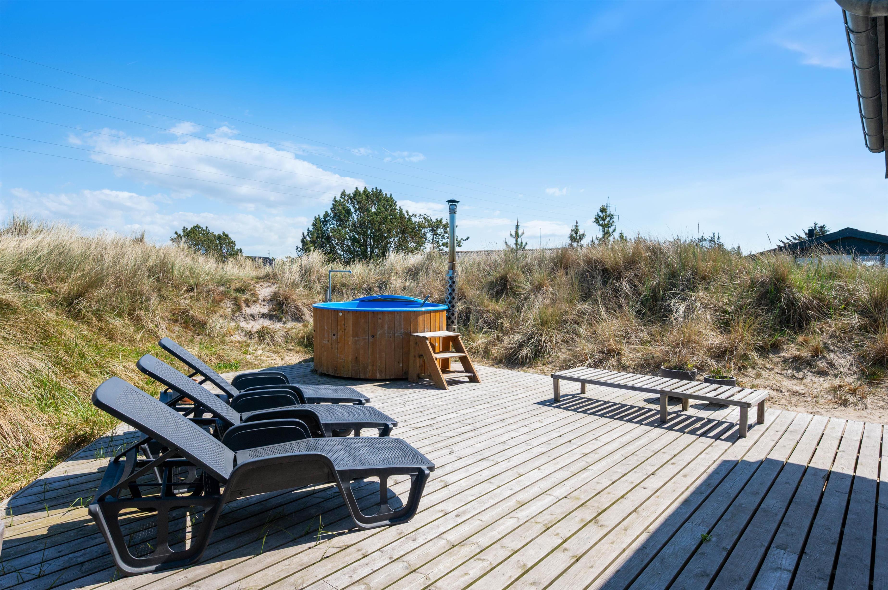 In the evening, wrapped in a warm blanket, you can sit comfortably outside and watch the recurring beam from the nearby Lyngvig Fyr lighthouse. The lighthouse, visible from afar, is not only a popular attraction but also the landmark of Holmsland Klit. The beach is just 750 metres away and easily accessible. Numerous walking and cycling paths allow you to explore the beautiful surrounding area.