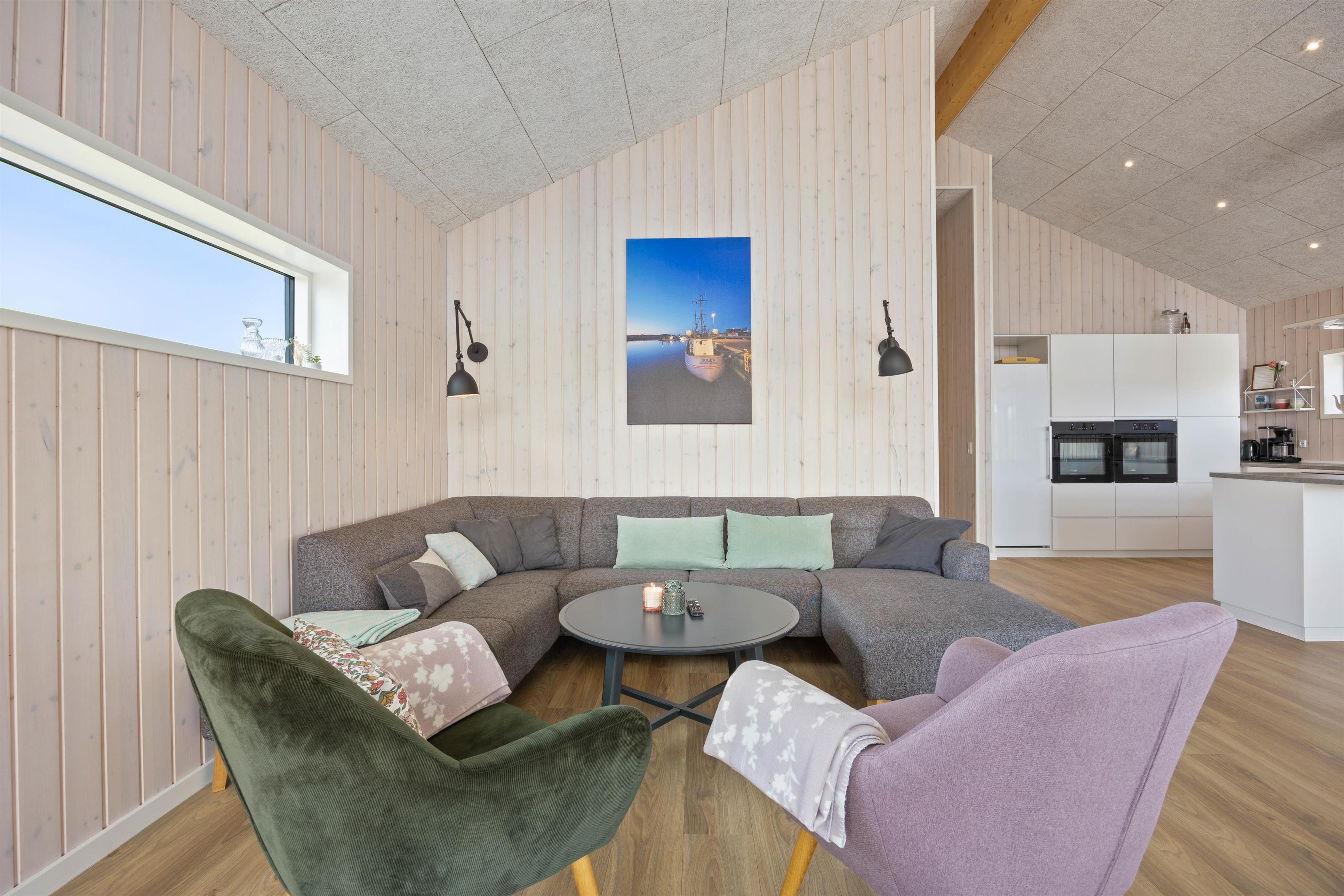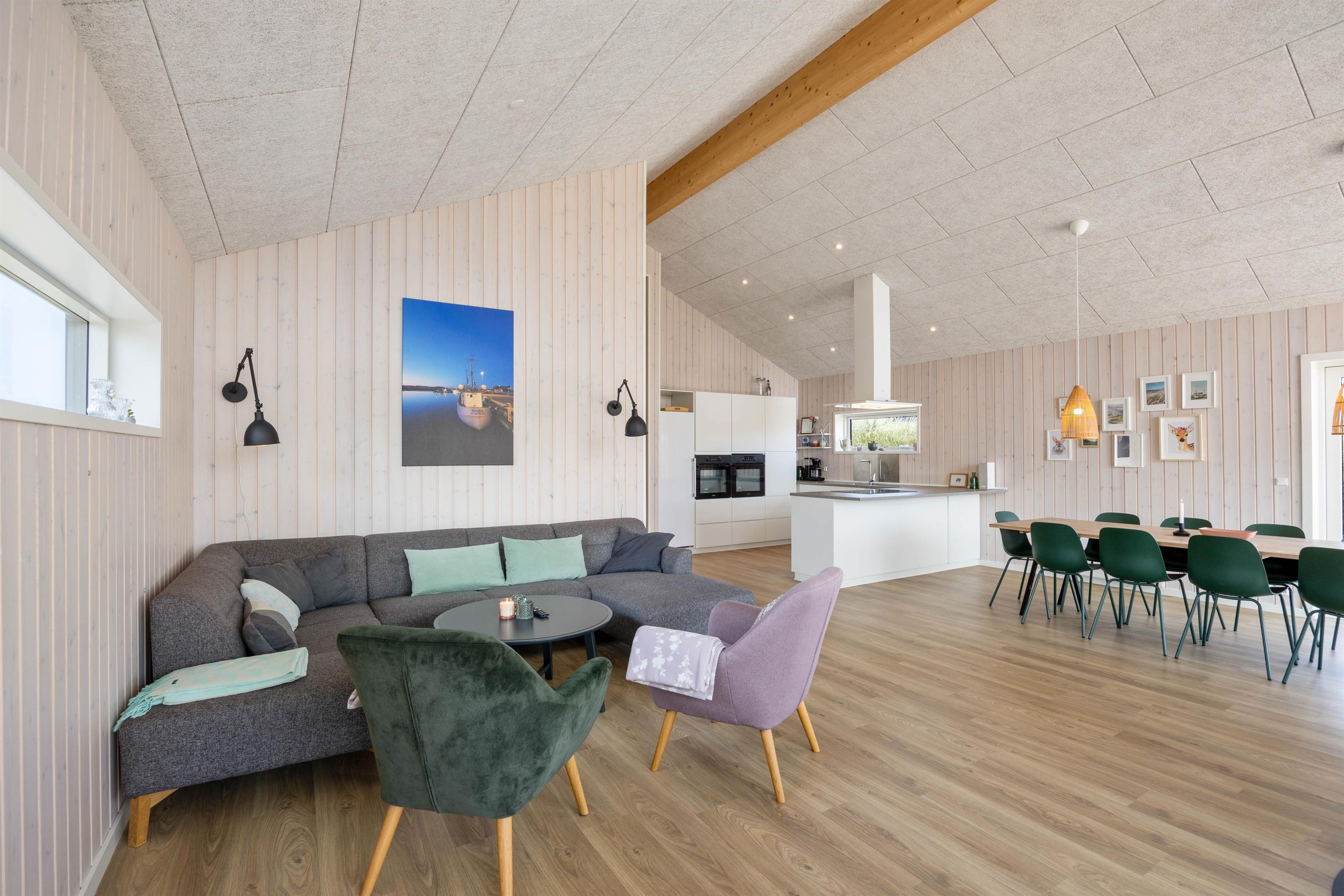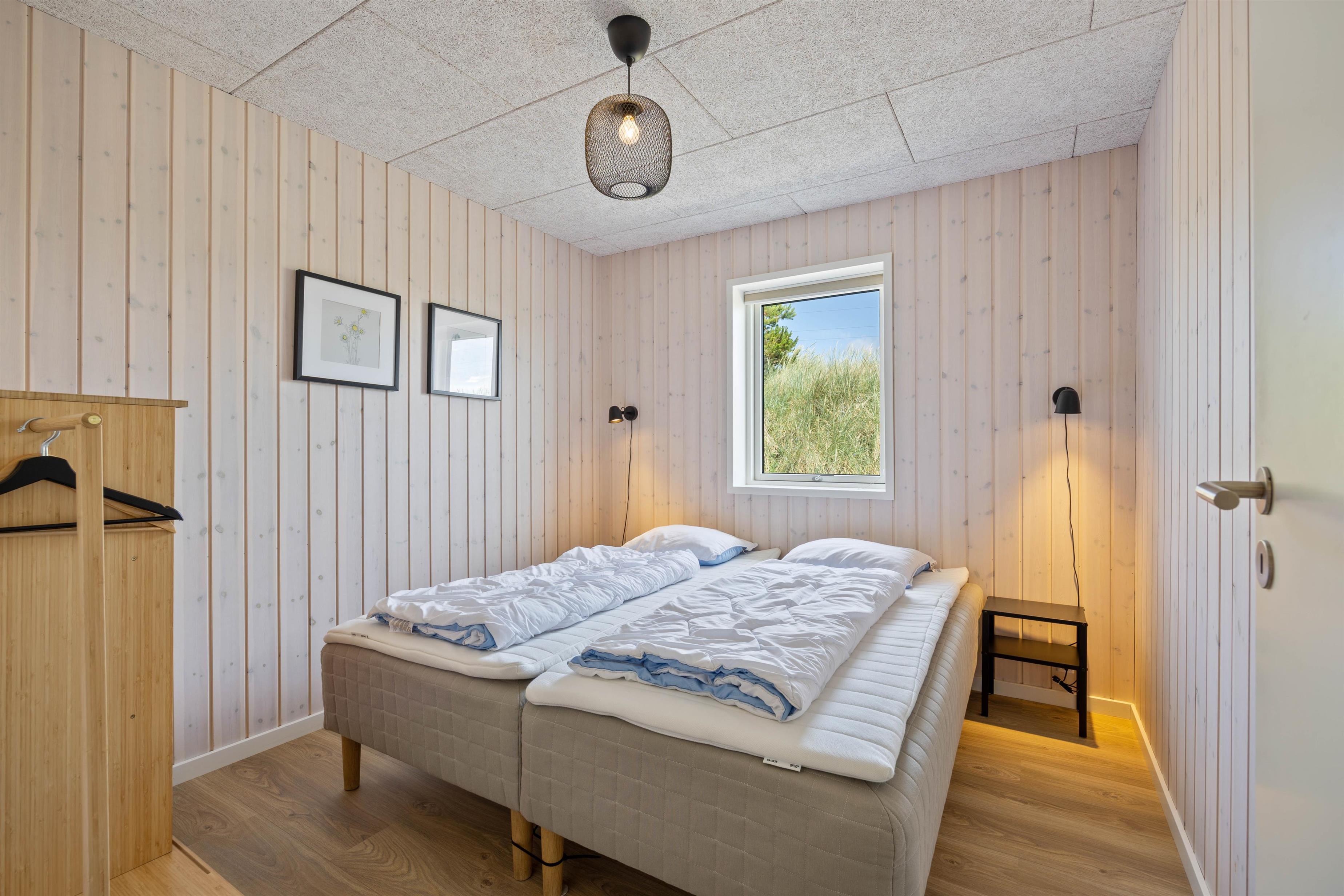 In the evening, wrapped in a warm blanket, you can sit comfortably outside and watch the recurring beam from the nearby Lyngvig Fyr lighthouse. The lighthouse, visible from afar, is not only a popular attraction but also the landmark of Holmsland Klit. The beach is just 750 metres away and easily accessible. Numerous walking and cycling paths allow you to explore the beautiful surrounding area.