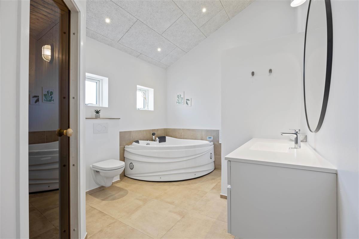This fantastic house at Fyrmarken 237 in Nr. Lyngvig offers more than just beautiful holiday accommodation. Those seeking relaxation and an escape from everyday life can enjoy their own private wellness suite. One of the bathrooms features both a sauna and whirlpool, perfect for creating your own wellness experience.