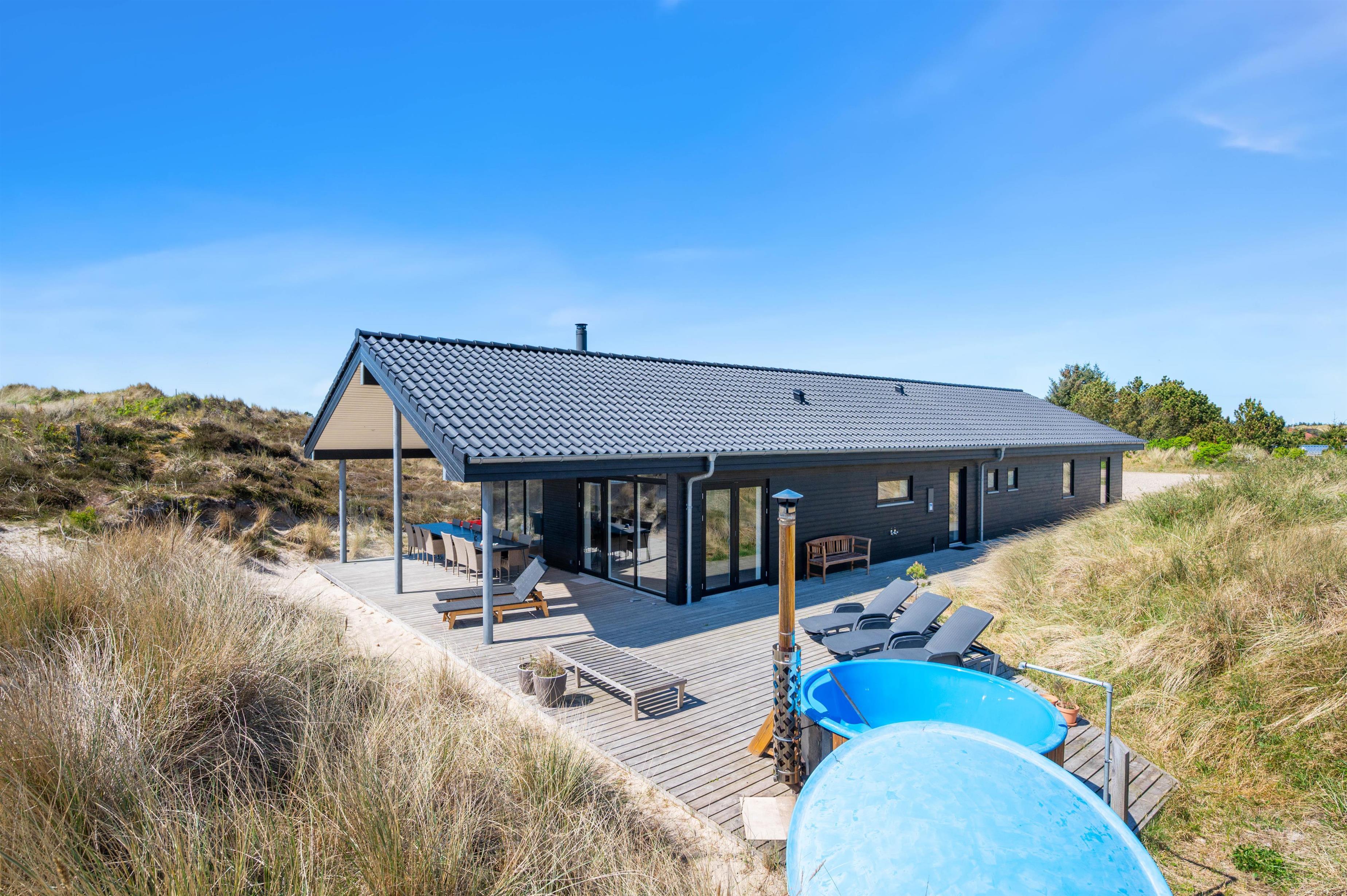 In peaceful Nr. Lyngvig, close to Hvide Sande, you'll find this stylish summer house at Fyrmarken 237, built in 2020. Up to 12 people can comfortably spread out across more than 170 square metres and look forward to a wonderful time together in Denmark. Choosing this house is made easy by its excellent amenities, including a sauna, whirlpool and outdoor hot tub on the terrace - and that's just the beginning.