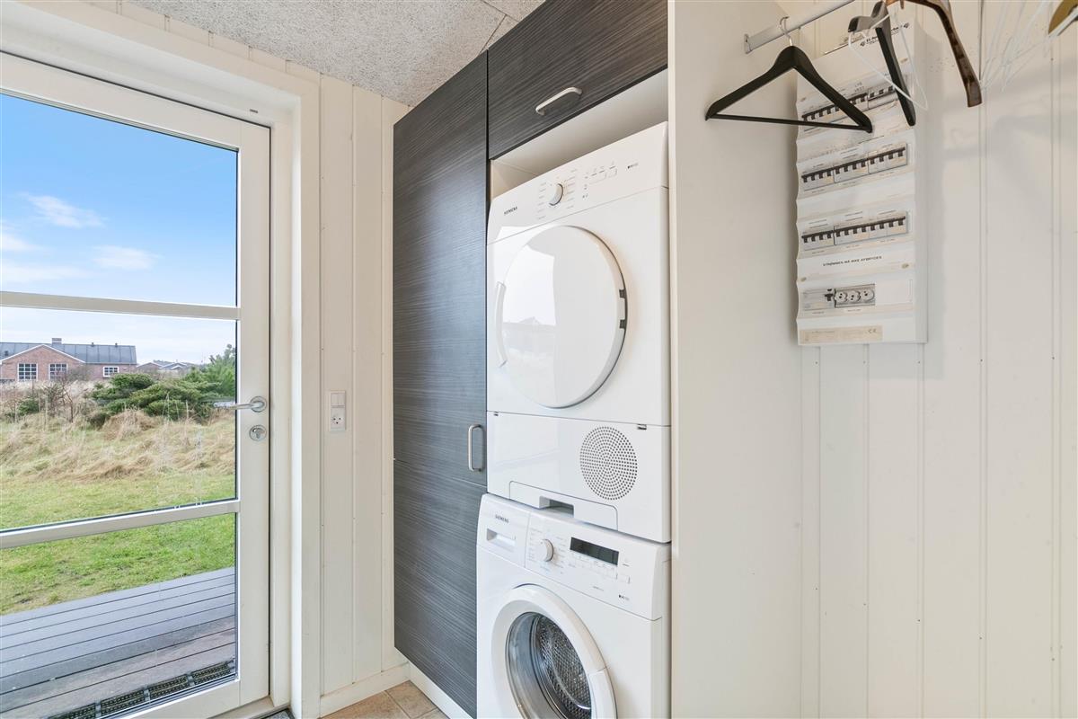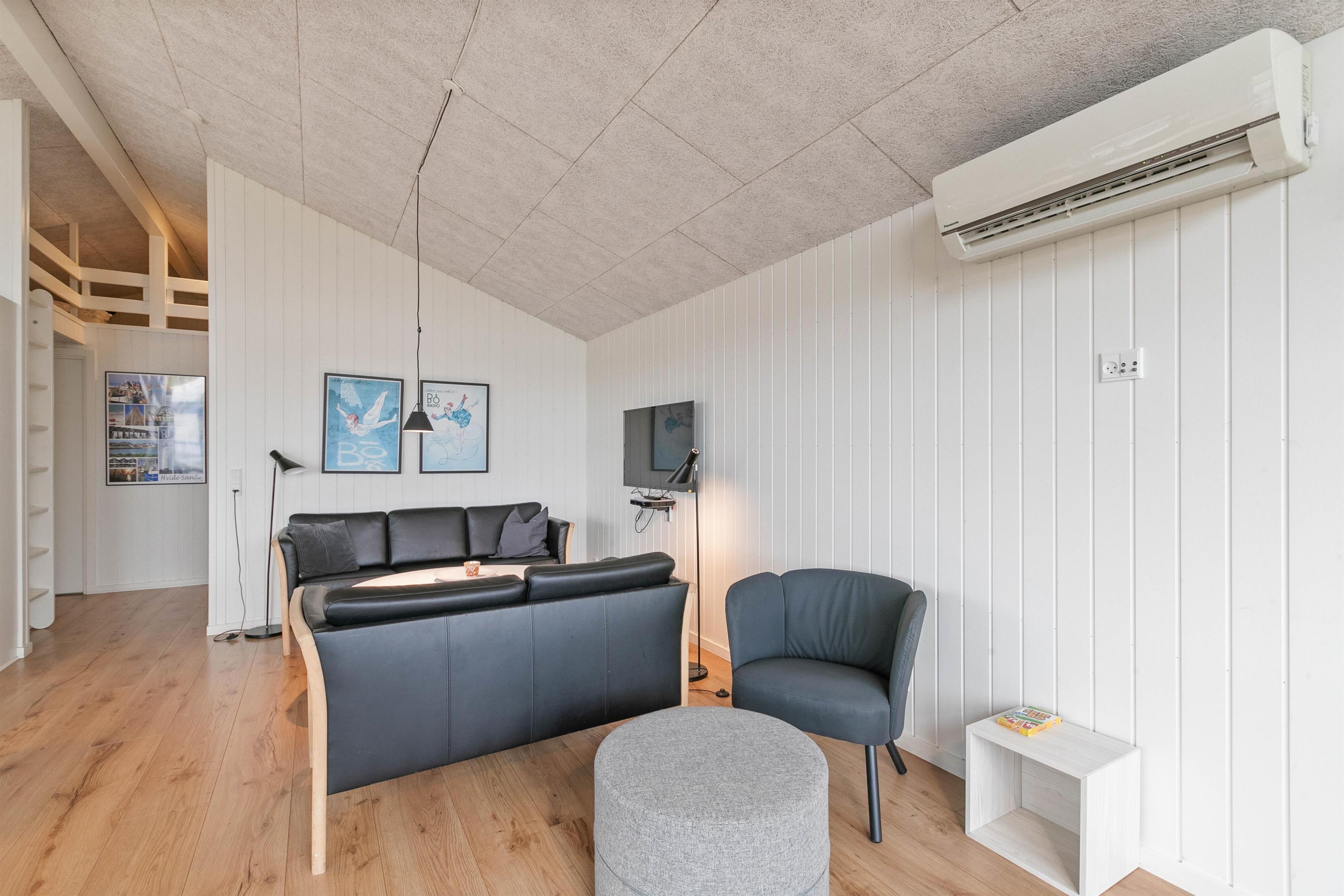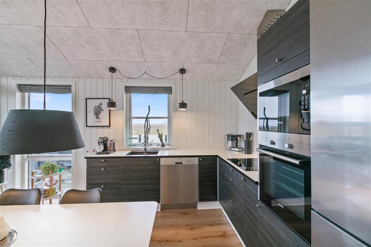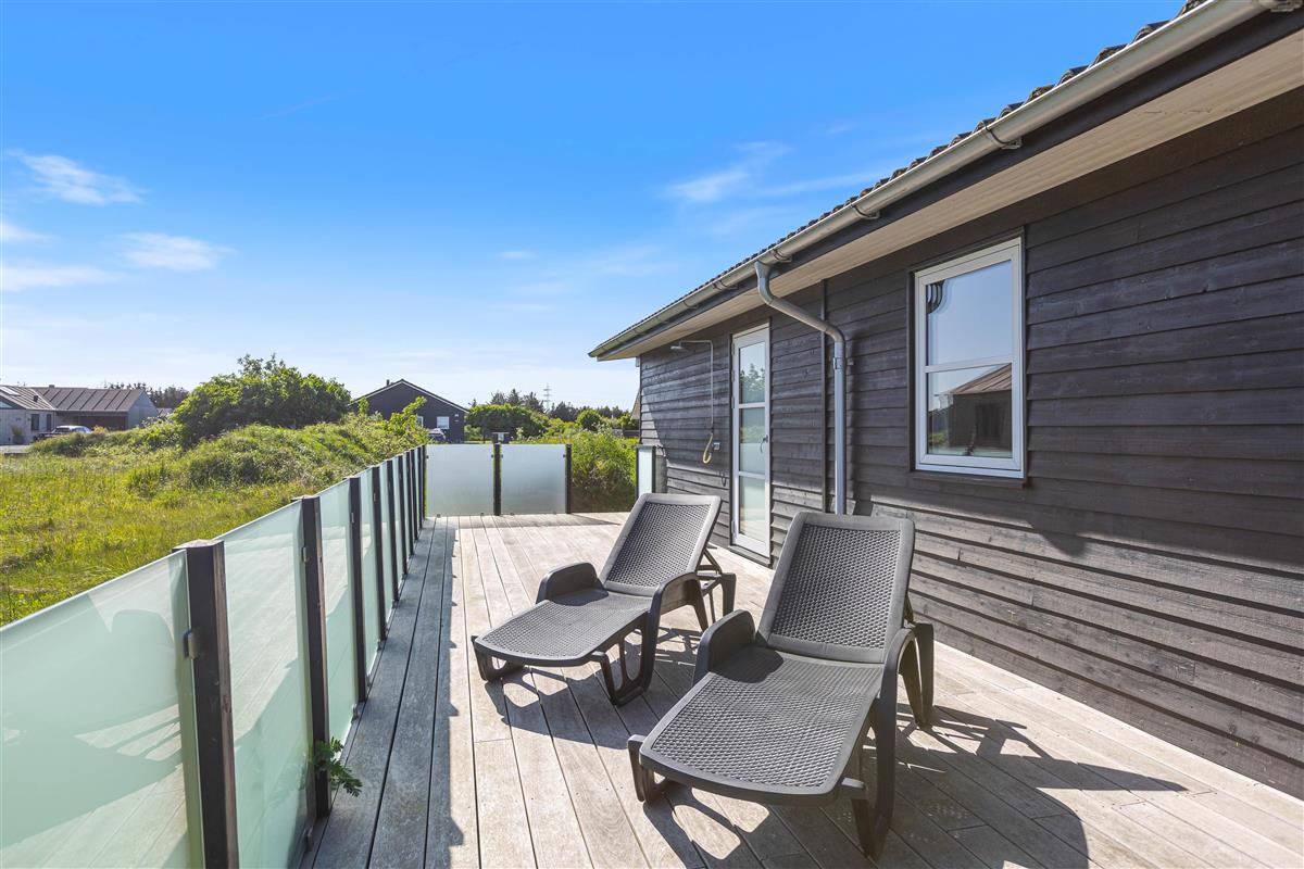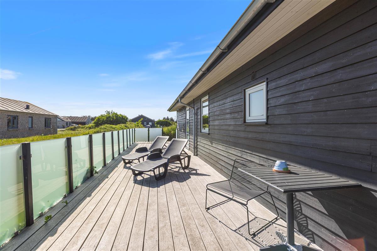 This beautiful holiday home in Nr. Lyngvig offers magnificent views over Ringkøbing Fjord - particularly from the living room and east-facing enclosed terrace.