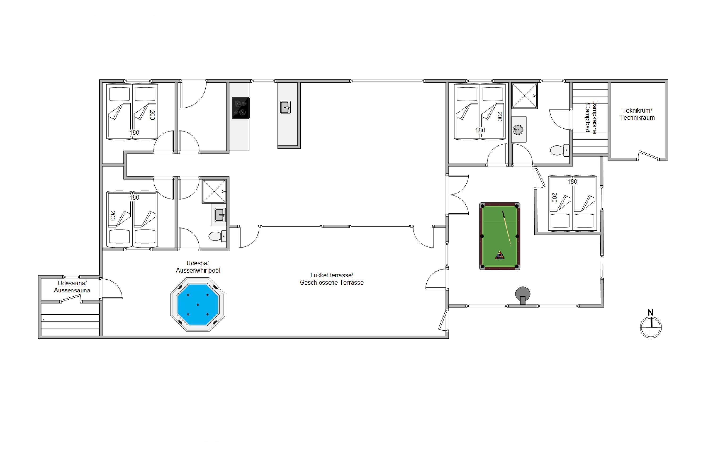 If you're looking for a combination of activities, relaxation and wellness facilities near the North Sea coast, don't hesitate to treat yourself to a break from everyday life in this holiday home, built in 2020. Located at Fyrmarken 189 in Nr. Lyngvig near Hvide Sande, this modern holiday home is perfect for large families or holidays with friends. Up to two dogs are also welcome guests.