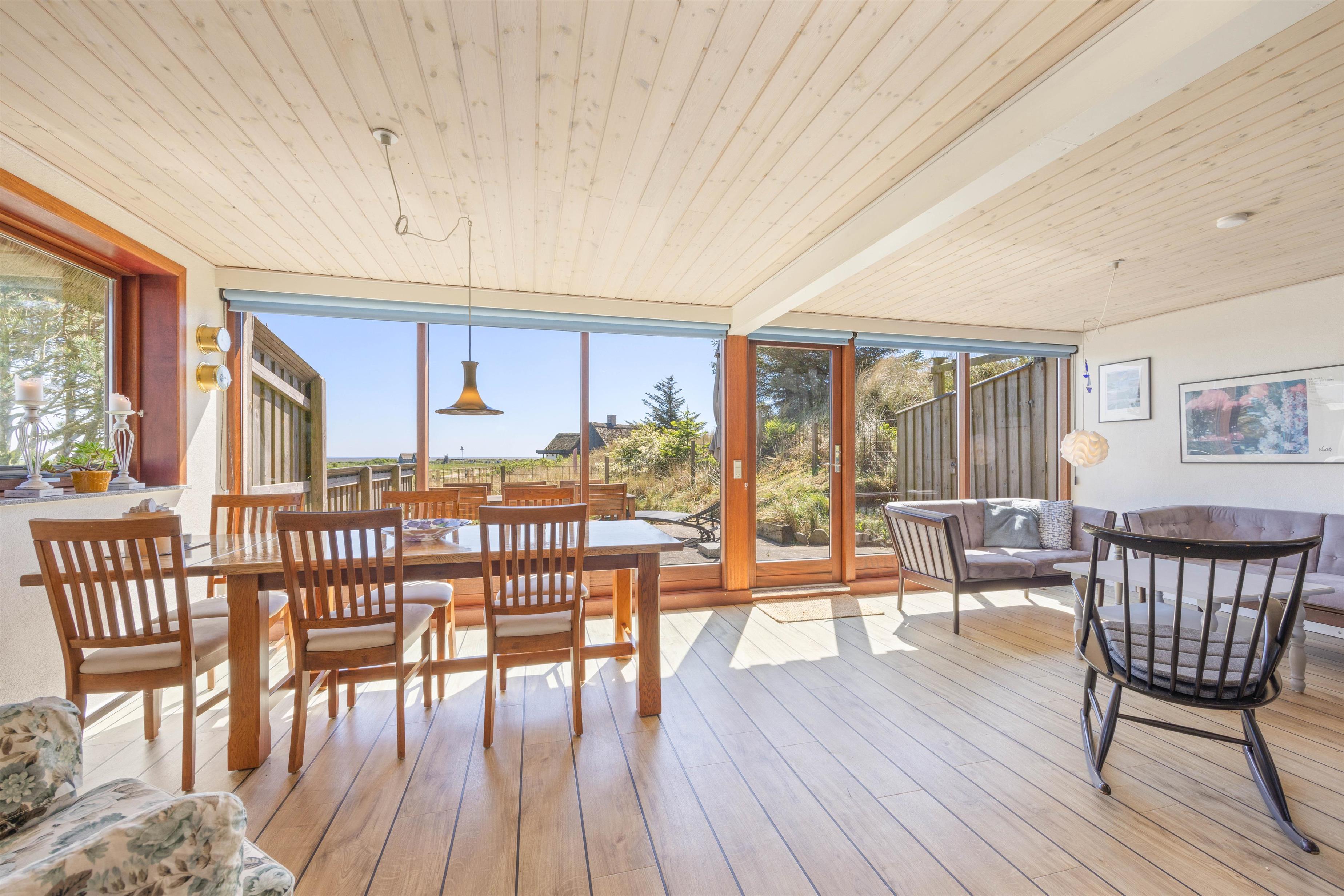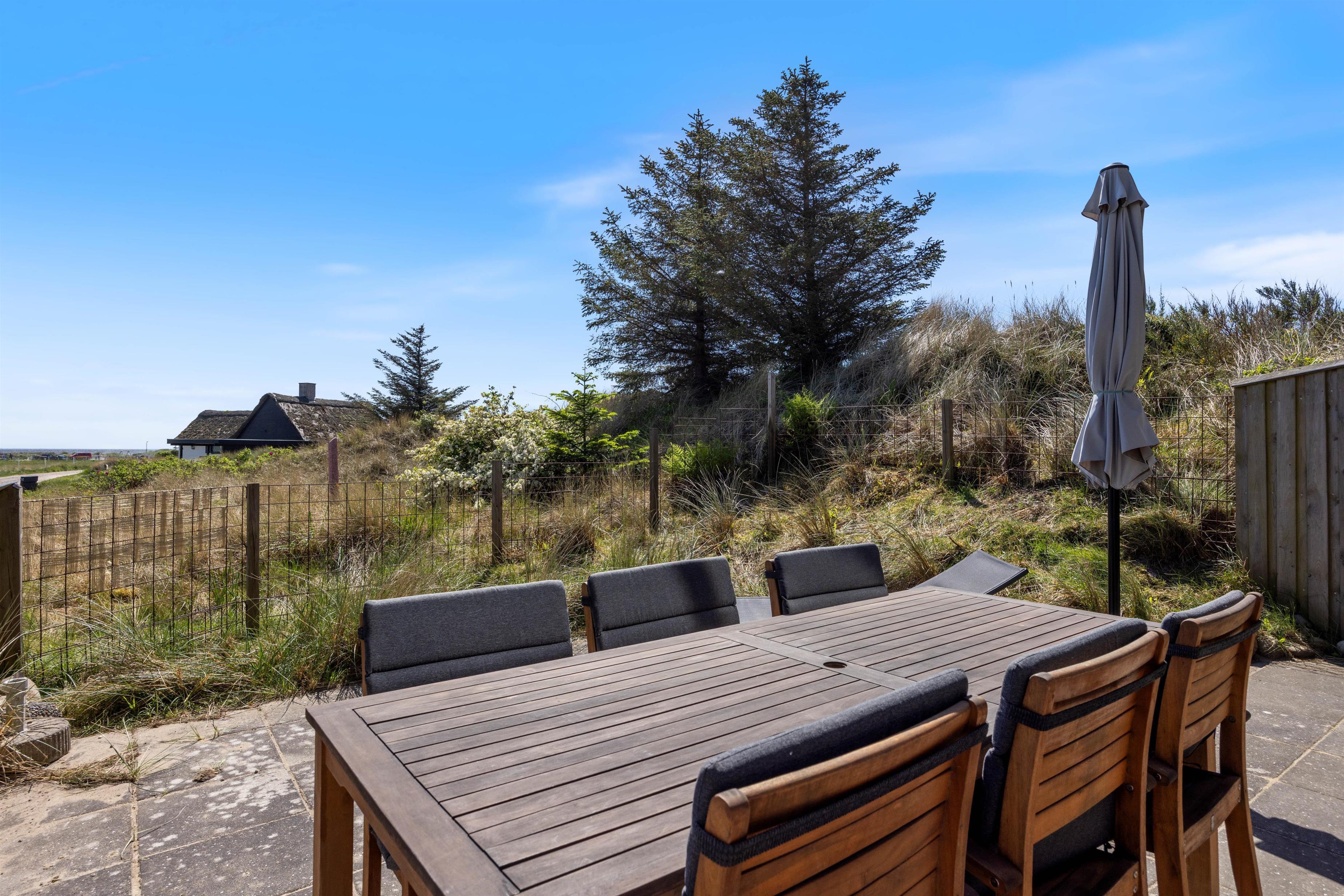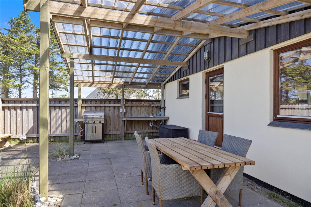 The east-facing, enclosed and partially covered terrace is equipped with everything needed for a relaxing day or evening. Garden furniture, sun loungers and a barbecue are all provided. Enjoy watching the sunrise over Ringkøbing Fjord - a truly unique experience.