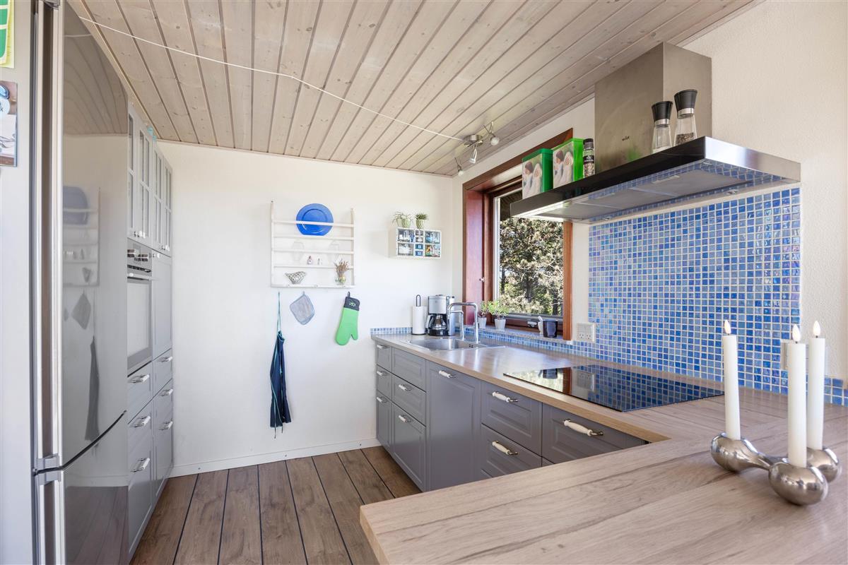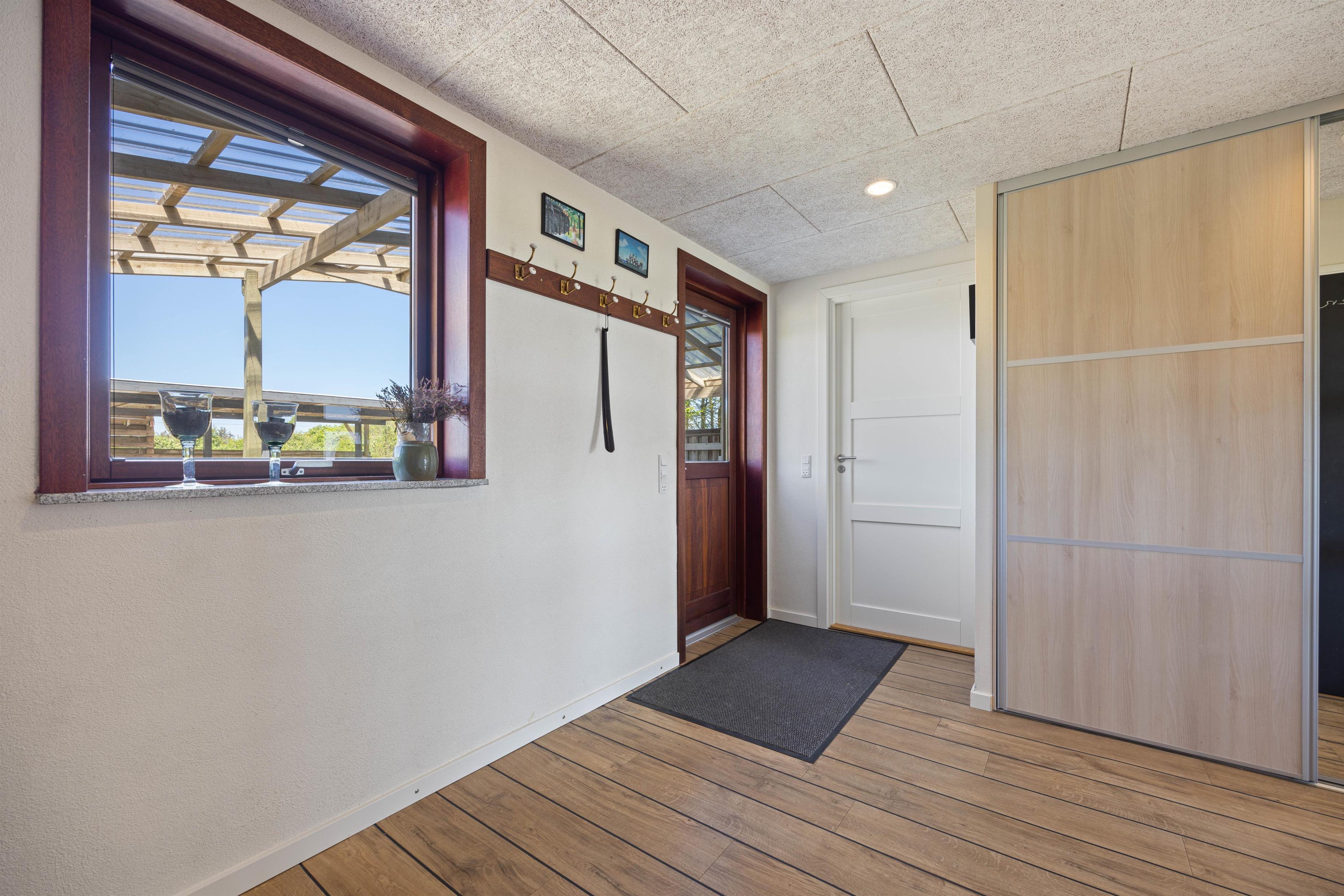 As soon as you enter, you'll experience the classic atmosphere of a Danish holiday home. The combination of light walls and wooden ceilings creates a welcoming ambiance. The bright, comfortable living area, combining the living room, kitchen and dining room in one space, will become your focal point. Wherever you are in this area, you'll enjoy magnificent views of either nature or the fjord.
