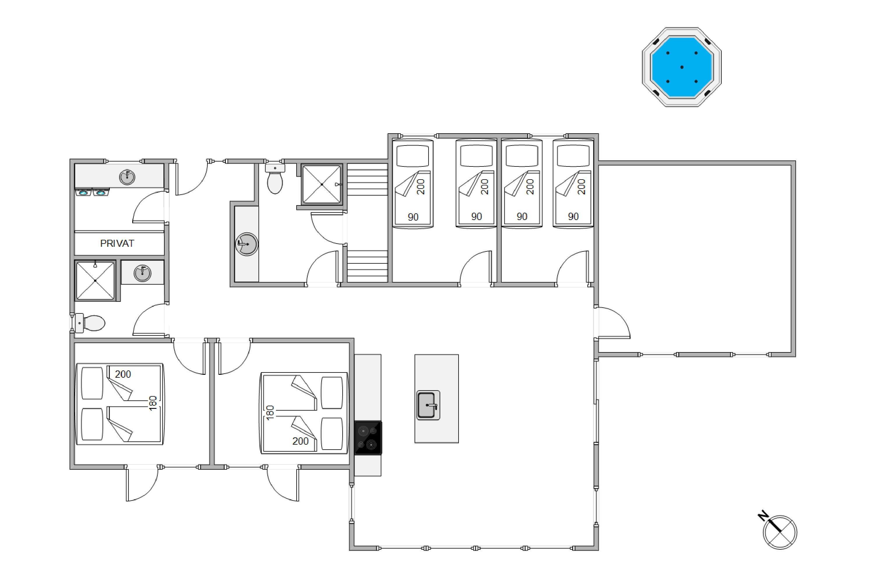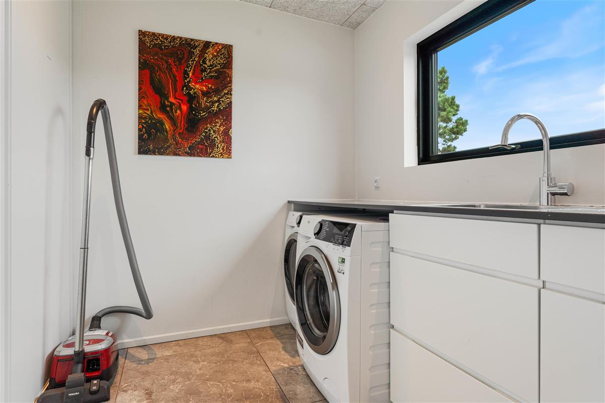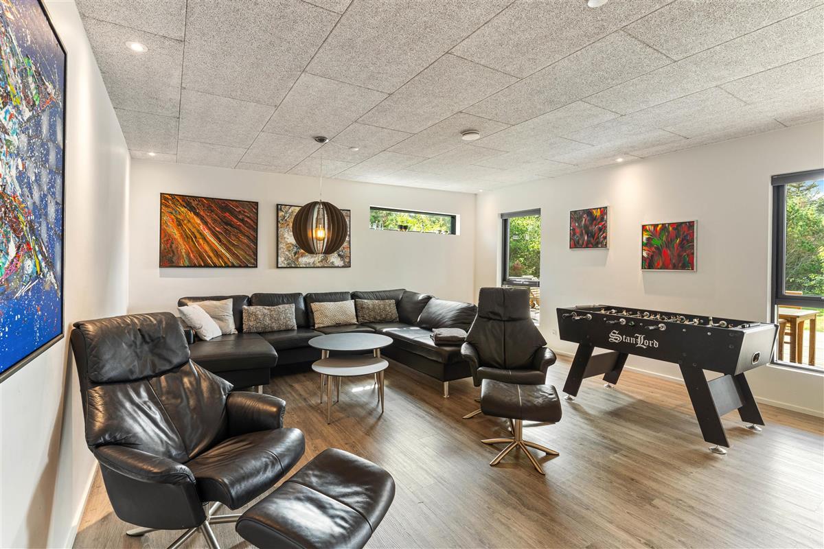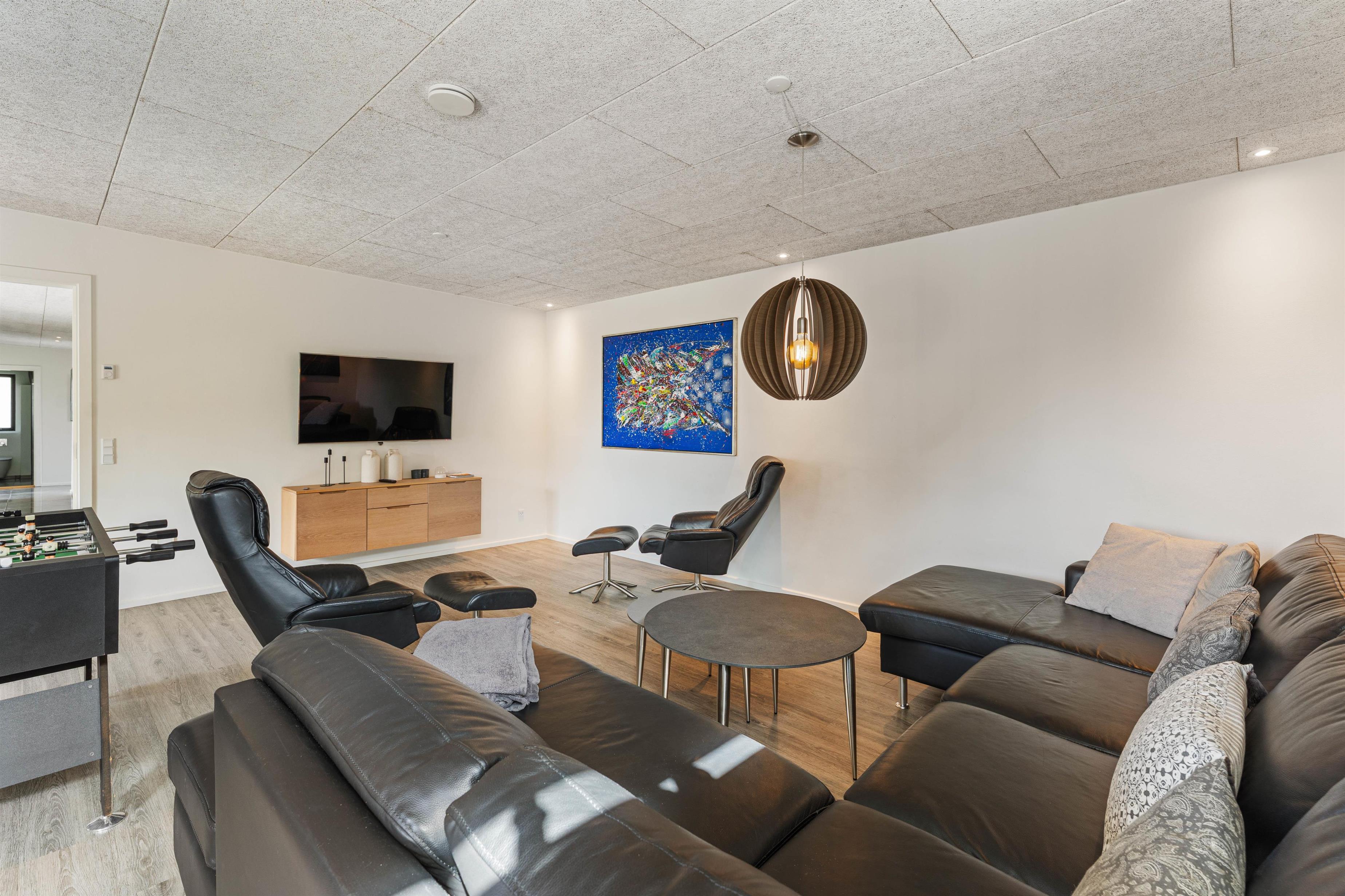 The holiday home at Sivbjerg 18 is equipped with practical household appliances: the kitchen features an integrated dishwasher, and the holiday home includes a washing machine and tumble dryer, so you won't need to worry about daily household chores during your holiday. Both bathrooms have underfloor heating, ensuring warm feet on your way to the built-in sauna. For rainy days, there's a table football game providing hours of entertainment.