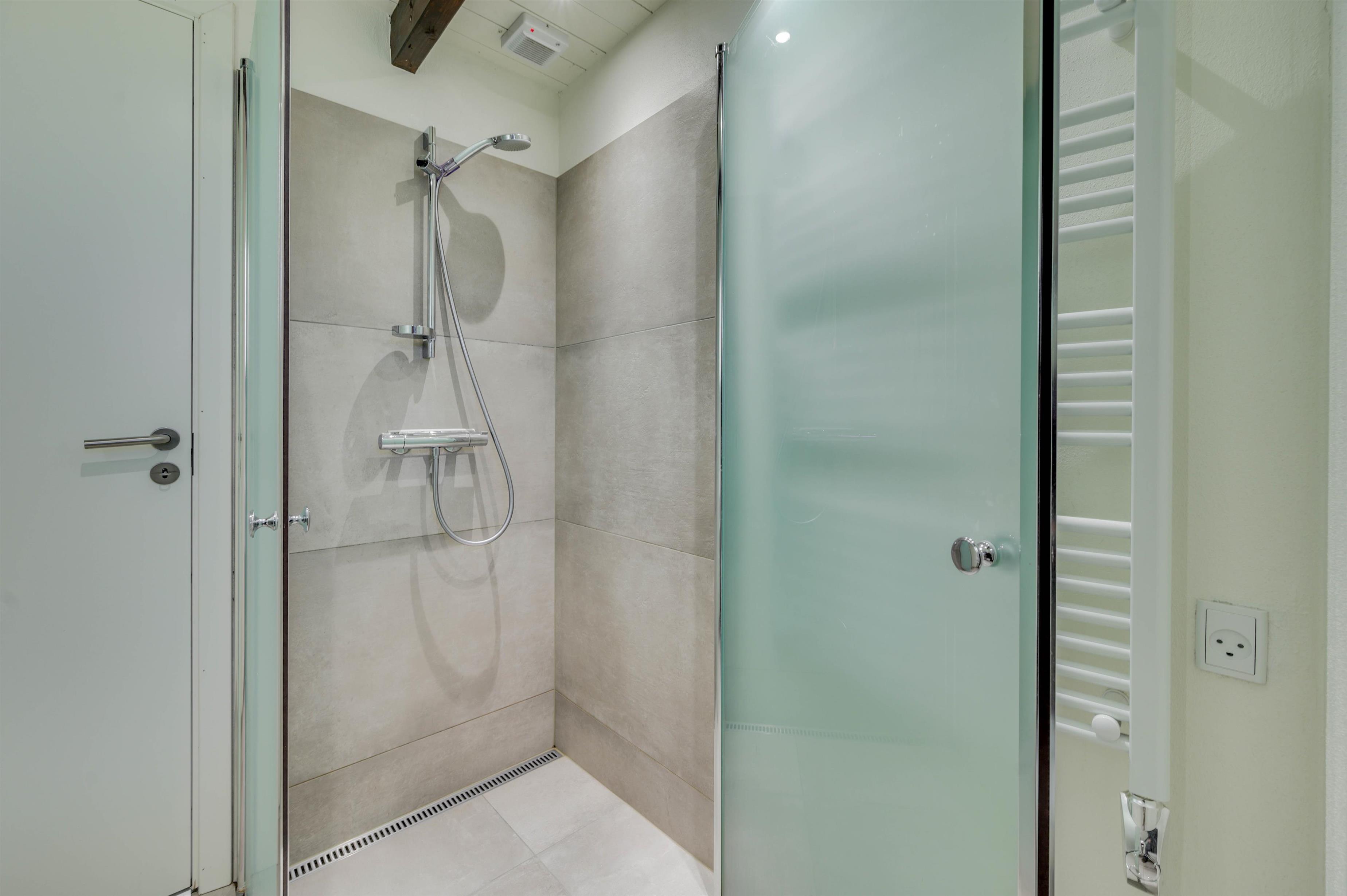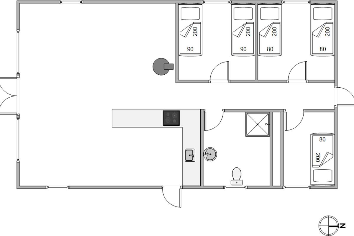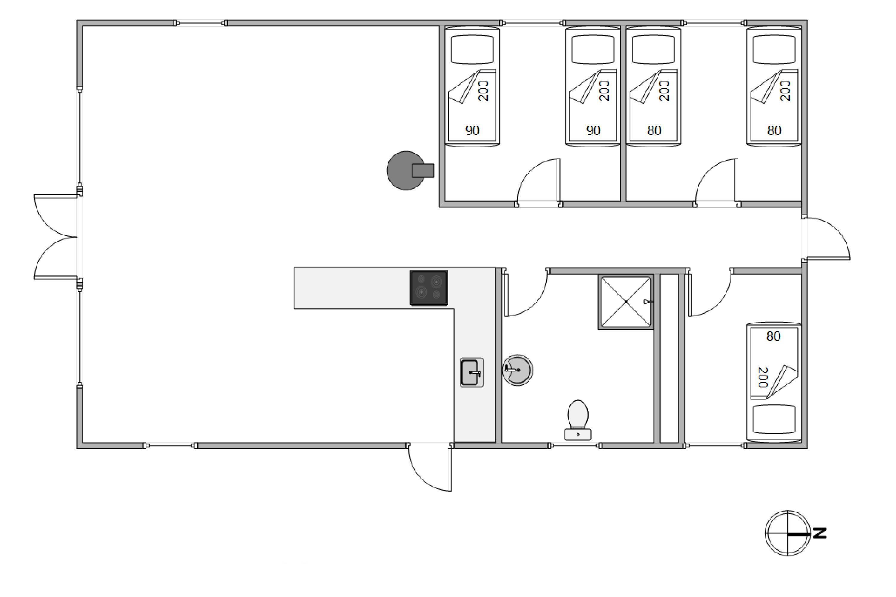 The living room features comfortable sofas and armchairs where you can relax in front of the television. For additional cosiness and warmth, light the wood-burning stove, which completes the welcoming holiday home atmosphere. There are 3 bedrooms, each furnished with either one or two single beds. The holiday home also includes a bathroom with underfloor heating, ensuring warm feet throughout your stay.