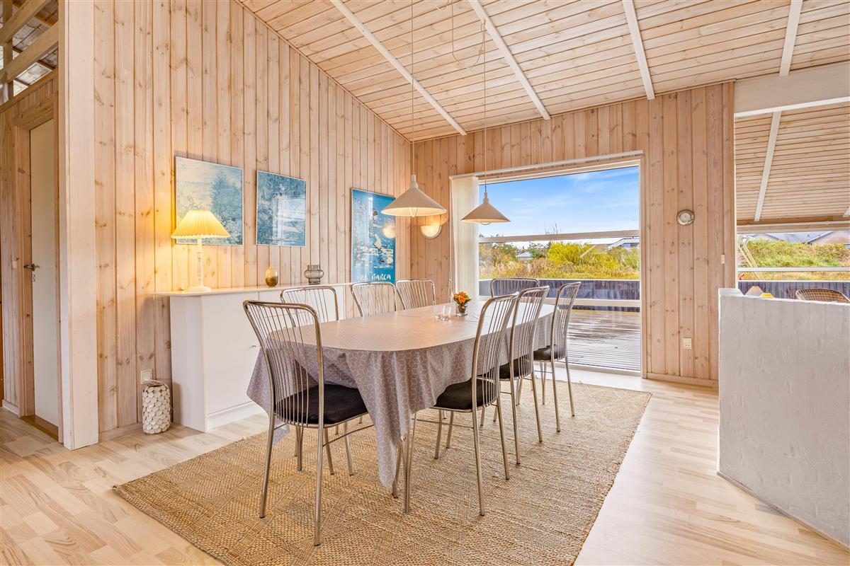 The generous holiday home at Sivbjerg 7 spans 130 square metres and offers plenty of space for the whole family. You'll be immediately welcomed into bright surroundings featuring natural wood tones and large windows that bring the outdoors in, even when you're inside.