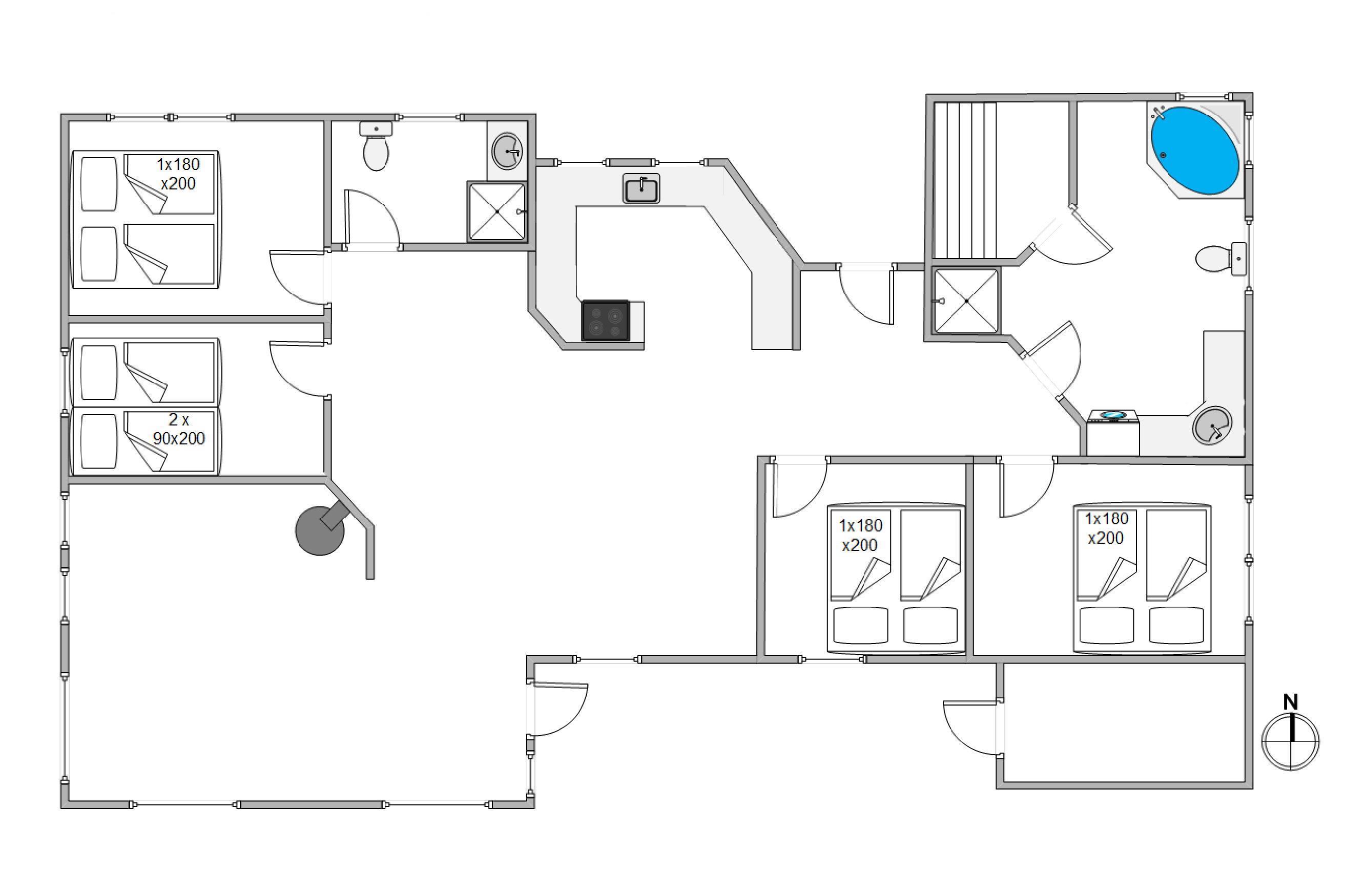 This welcoming holiday home for 6 people sits on a large lawn in Nr. Lyngvig. The holiday home is thoughtfully furnished and features a sauna and hot tub, along with a beautiful conservatory and a sheltered, covered terrace – perfect for windy days and beautiful sunsets.