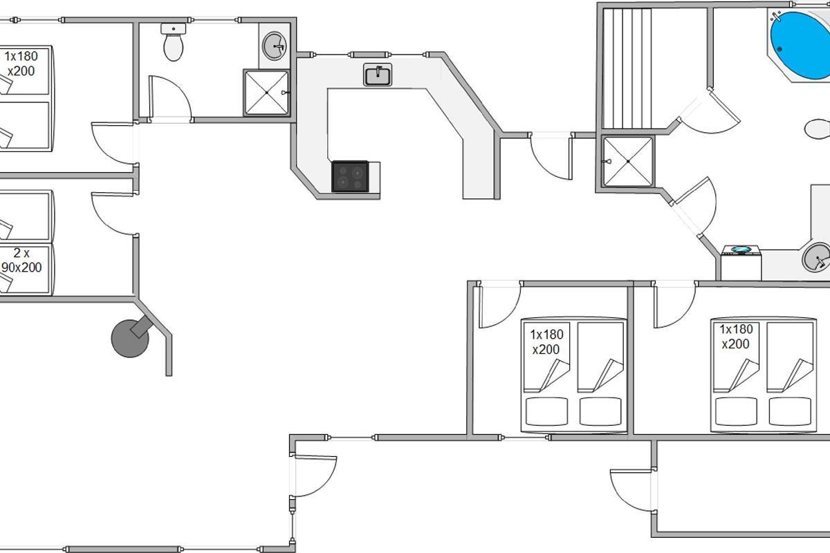 The sauna and hot tub offer a particularly luxurious experience, perfect for relaxing wellness evenings. The well-equipped house also features two bathrooms, a dishwasher, tumble dryer and washing machine.