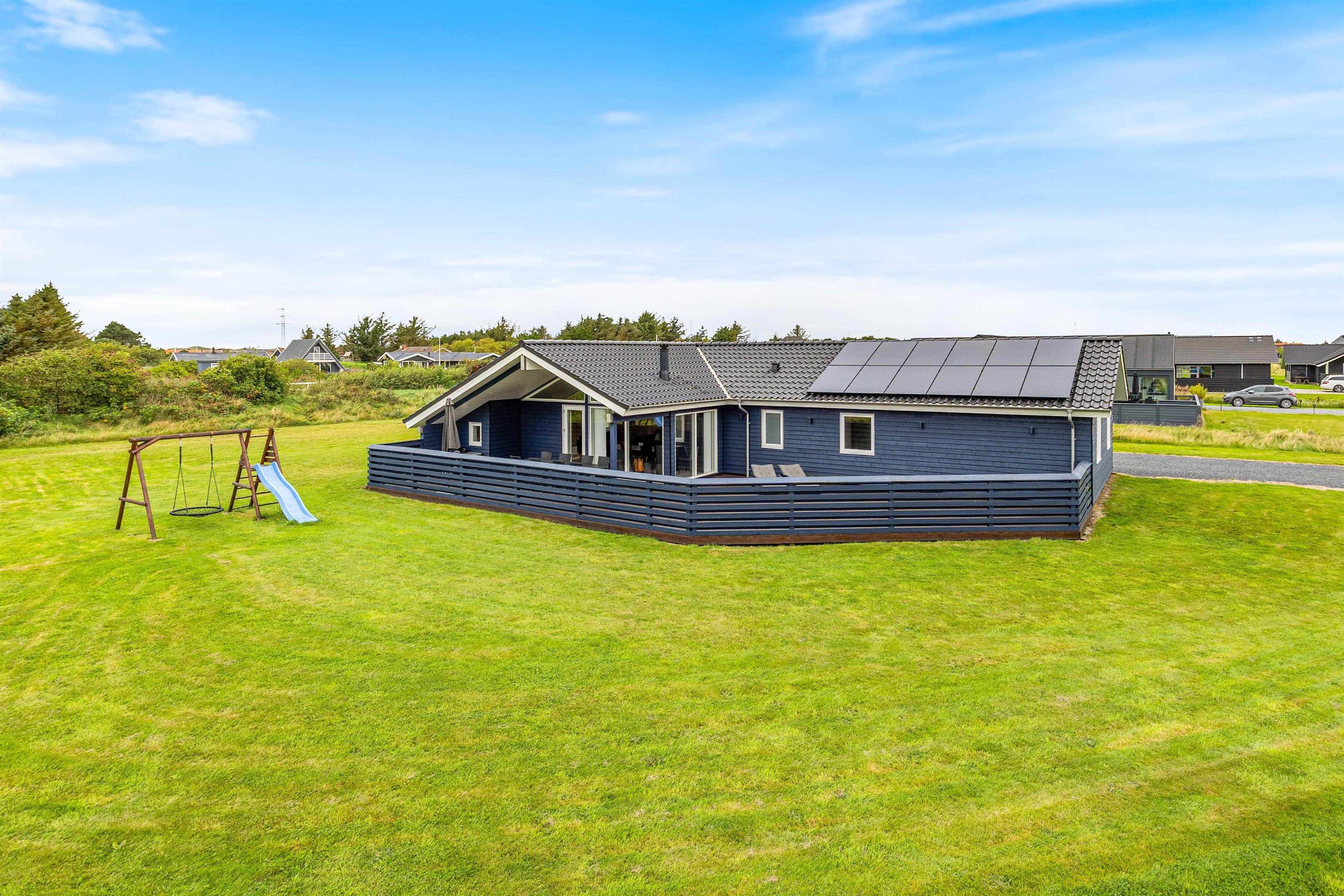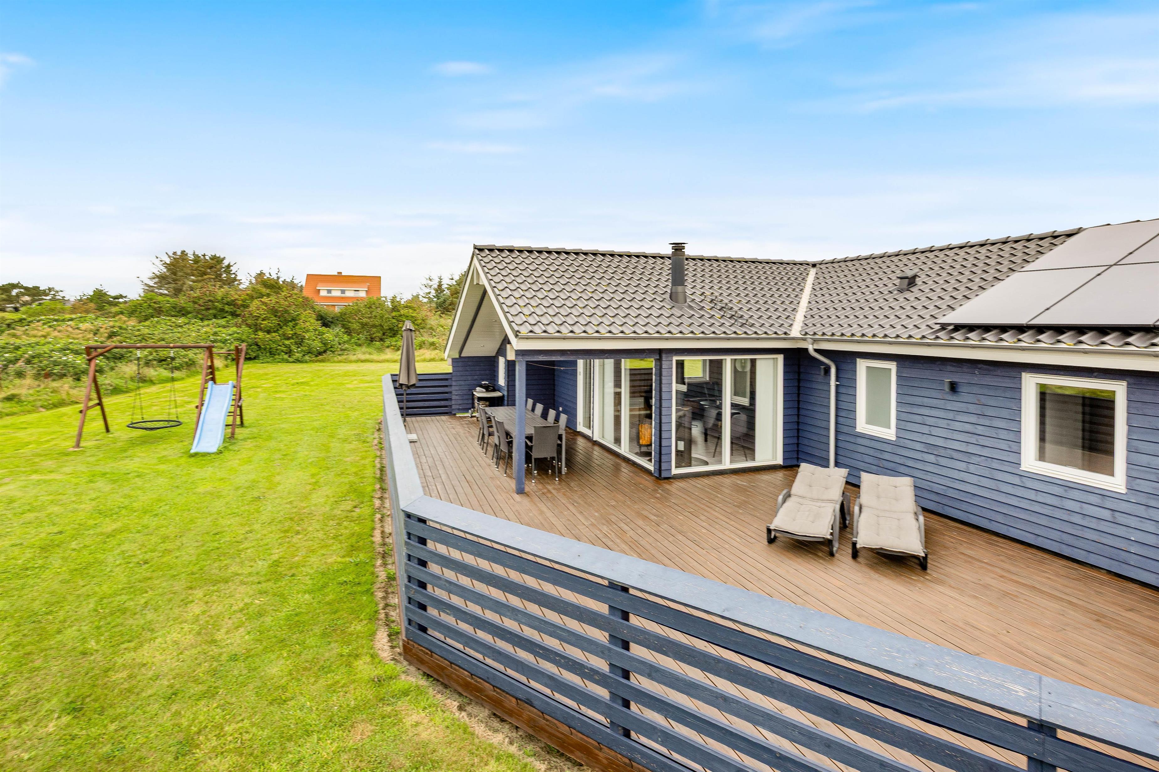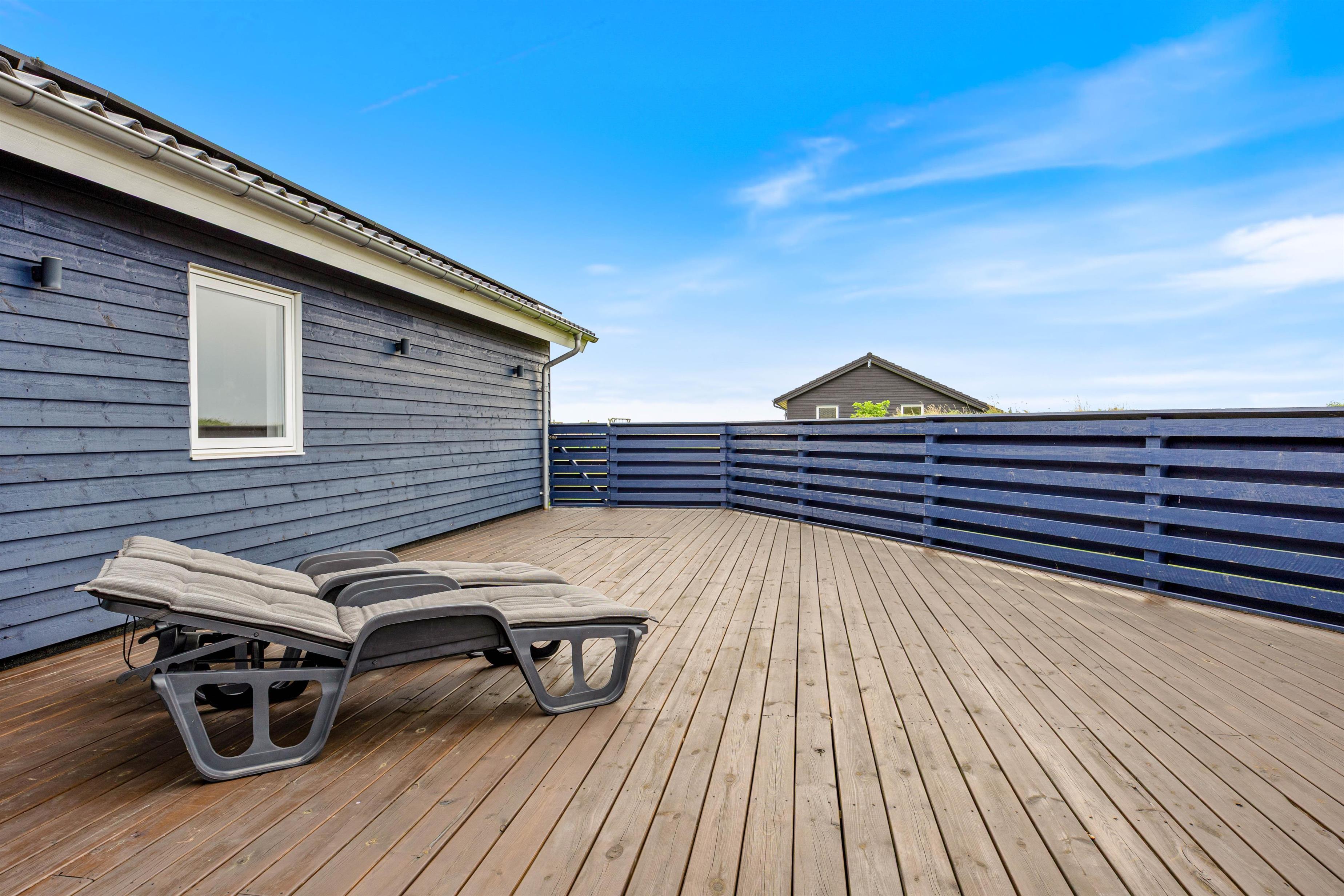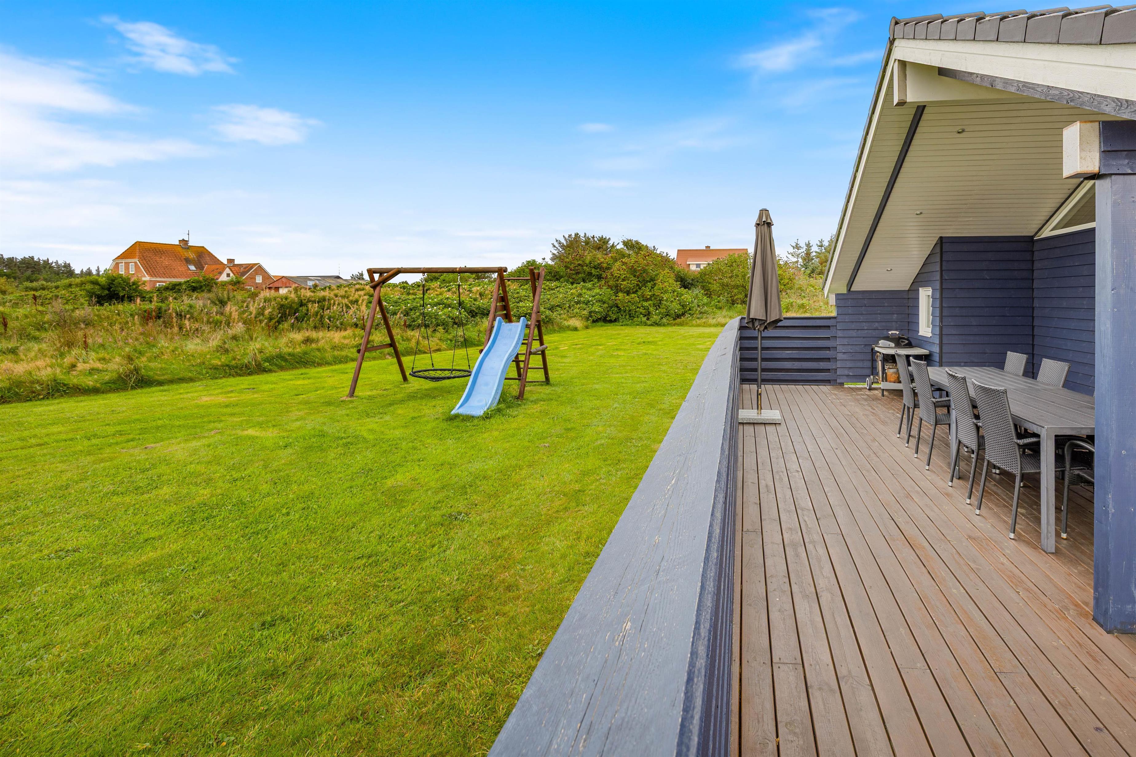 Located at Anker Eskildsens Vej 28 in Nr. Lyngvig, you can fully enjoy sunny days on the terrace. The terrace is partially covered and fenced, furnished with comfortable garden furniture, allowing you to relax while young children or dogs play safely within sight.