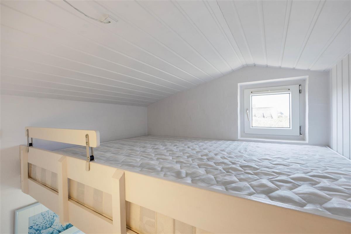 The heart of the home is the large living area with integrated kitchen and dining space. While adults prepare meals in the kitchen, children can relax on the sofas. In the evenings, you can stream your favourite films on the TV via Chromecast. For added cosiness, light up the wood-burning stove. The storage shed houses an additional 100-litre freezer.