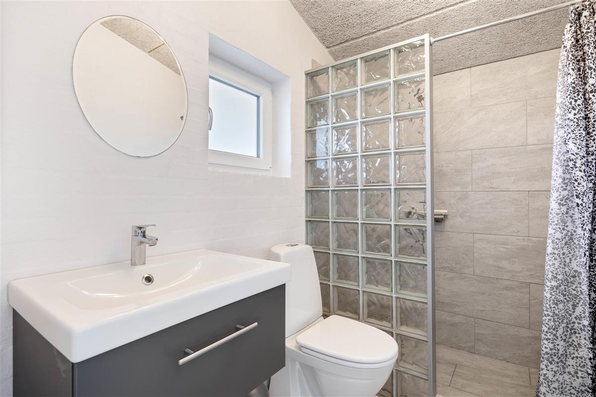 The holiday home has four bedrooms, each with double beds. To avoid queues, there are two bathrooms - both featuring underfloor heating for warm feet. The holiday home is heated by an energy-efficient heat pump.