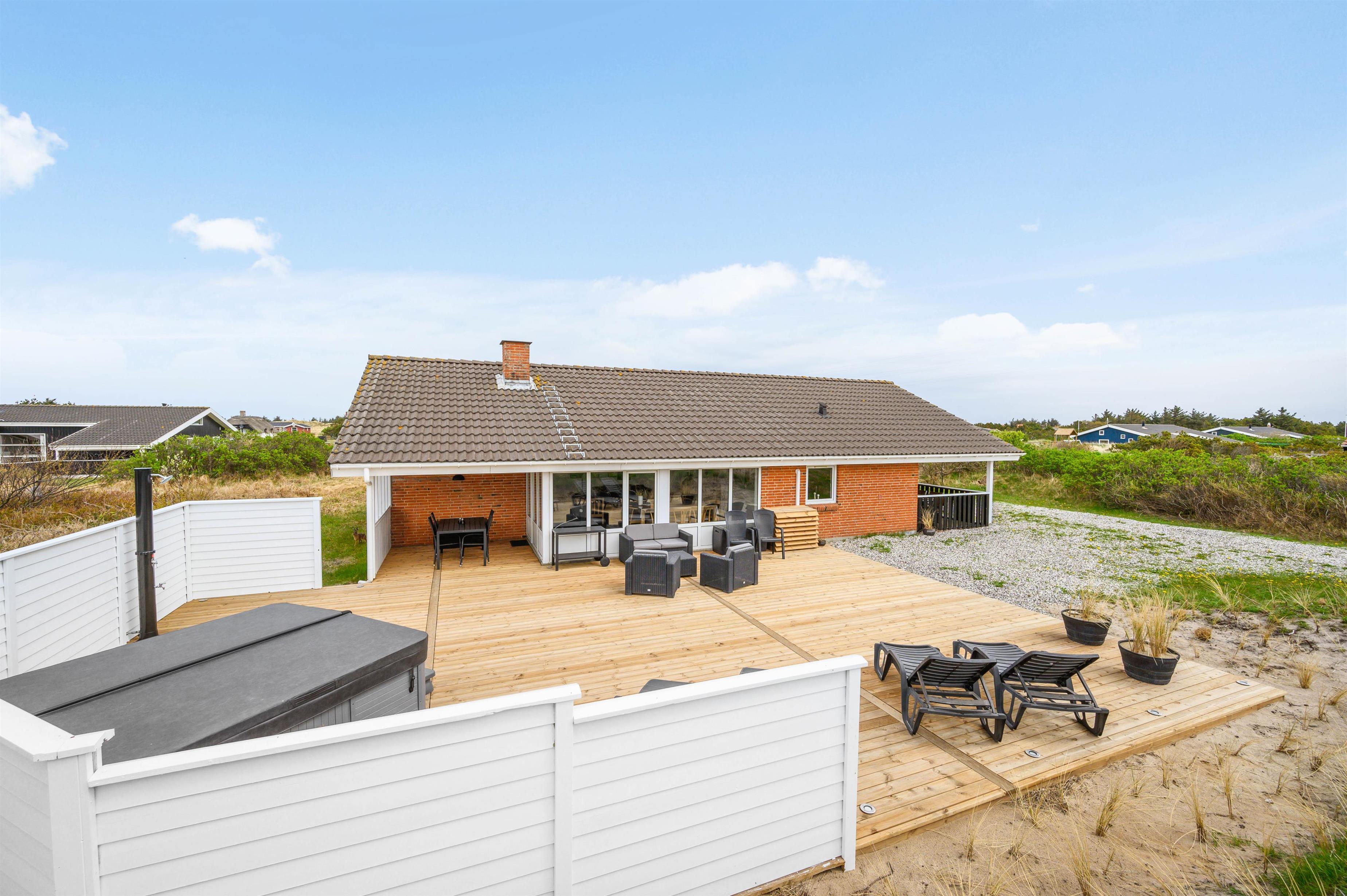 If relaxation is the focus of your next holiday, you should consider this holiday home at Fyrmarken 285. Renovated in 2021 and accommodating up to 8 people, it features a wellness area with sauna, outdoor hot tub and outdoor shower. As a bonus, the beach is just 600 metres away.