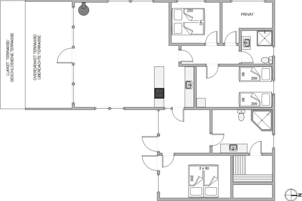 The holiday home at Fyrmarken 48 features two lovely terraces. A fully enclosed and partially covered south-facing terrace offers a sheltered spot to enjoy the midday and afternoon sun. To the east, there's a terrace overlooking the spacious grounds.