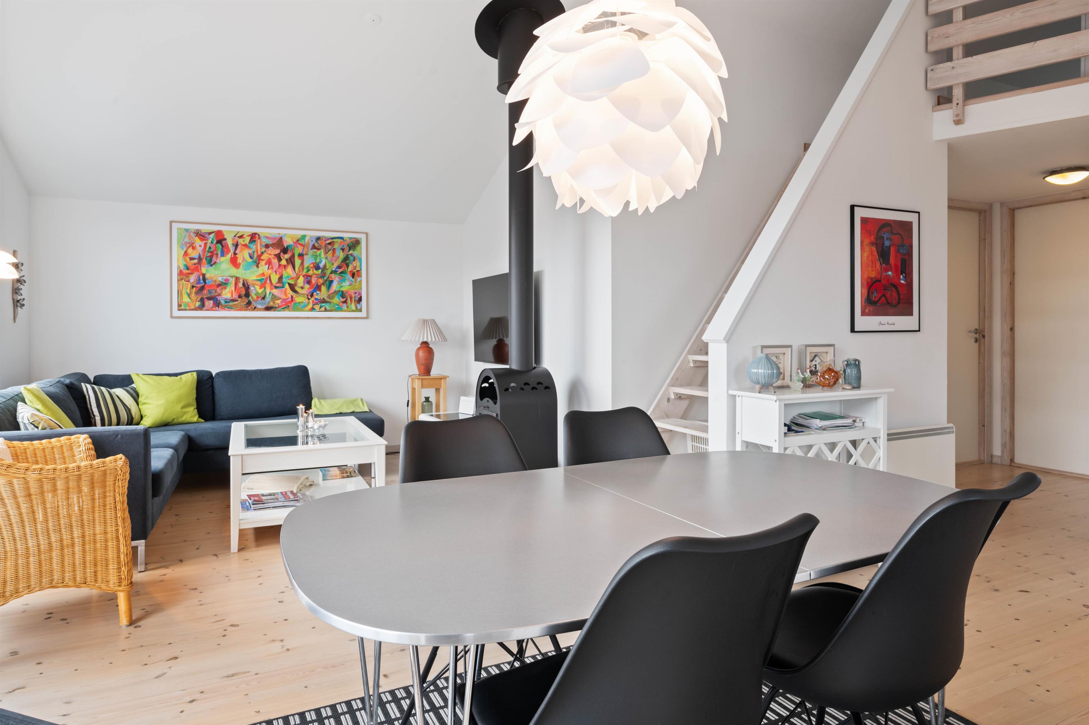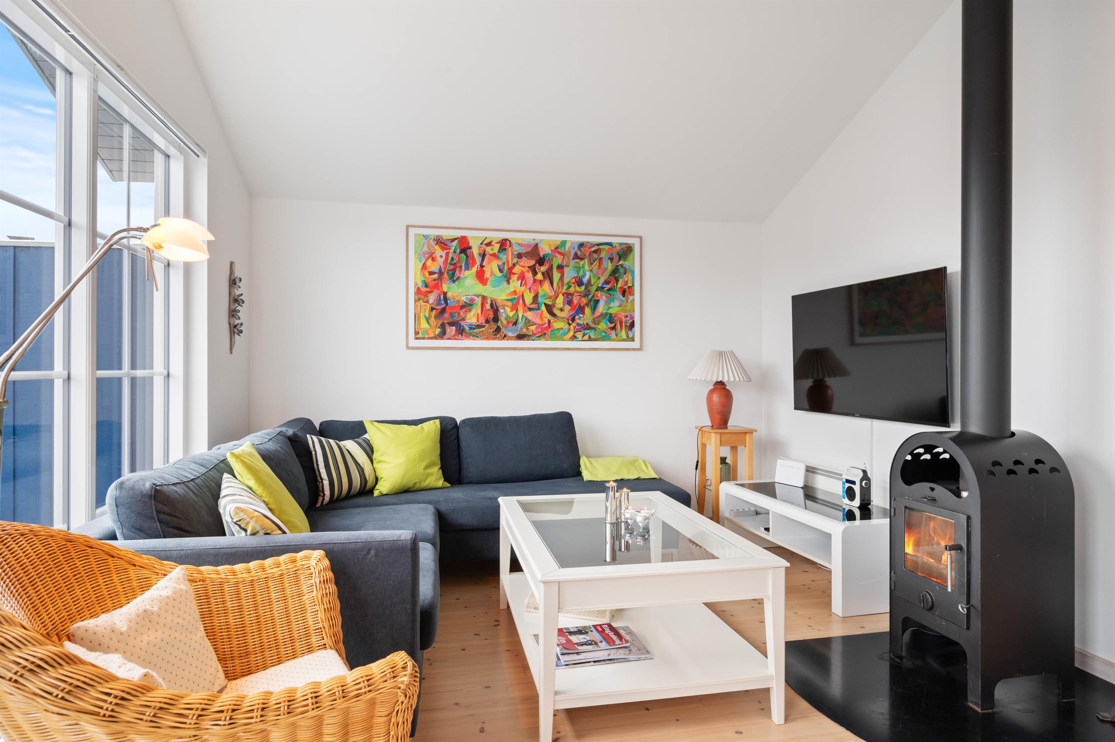 The living area forms the heart of the holiday home and provides a comfortable space for many relaxing hours. Whether you're watching a film, enjoying a lovely meal, or having a games night, you can experience the authentic Danish holiday atmosphere while enjoying the crackling of the wood-burning stove.
